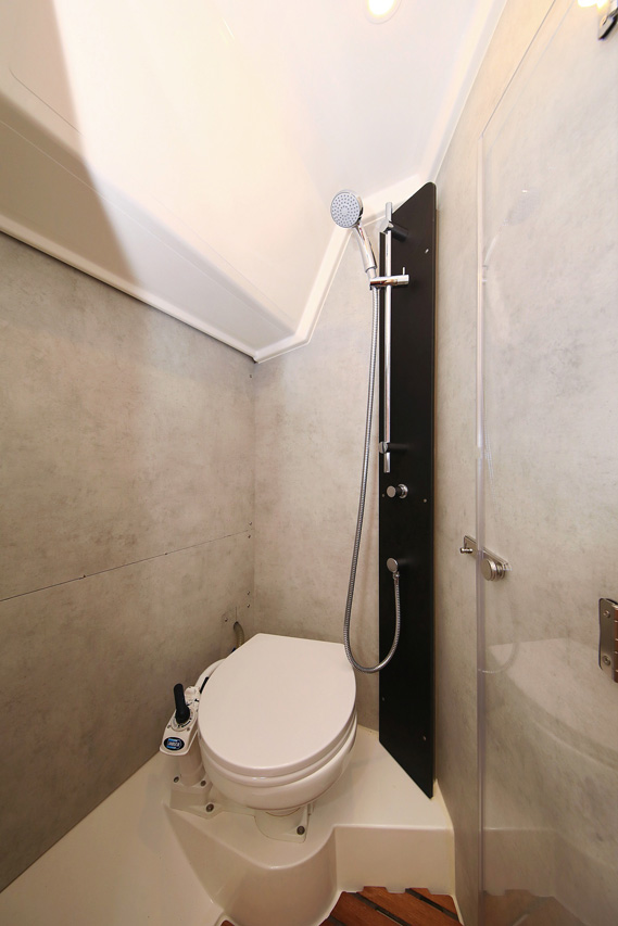 Inside Borduhr, DVD-Player, FUSION Sound System, Heizung, Inverter 12V/220V, Kühlschrank, Ladegerät, Luftpumpe für Beiboot, Pantryausstattung, Radio mit Bluetooth, Salontisch absenkbar, Warmwasser