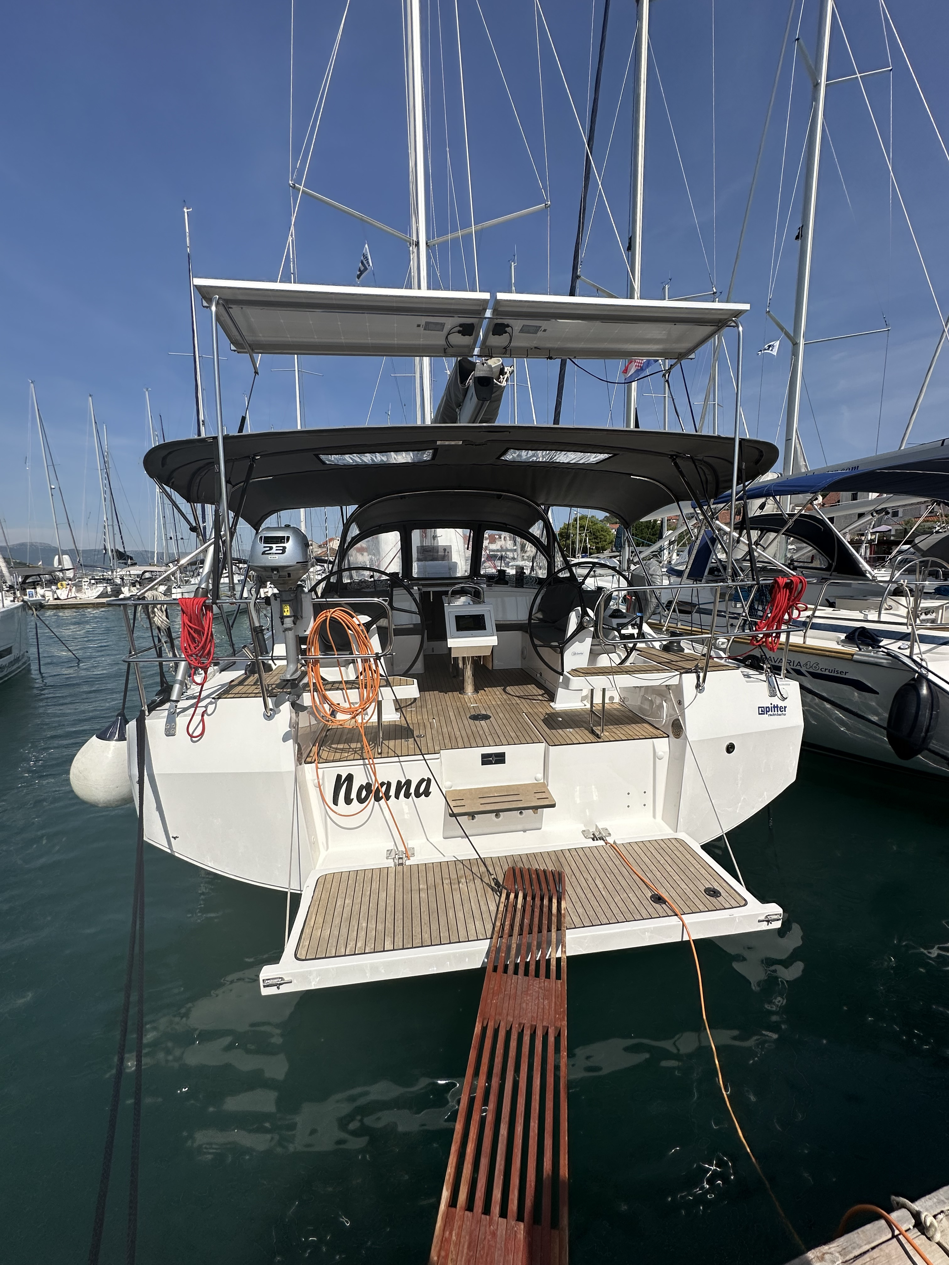 Alles in allem kann man Pitter empfehlen, auch wenn es sicherlich bessere gibt. Die Leute sind freundlich, hilfsbereit und immer erreichbar. Am Boot, Bj.23!!, waren viele Kleinigkeiten defekt, die zwar keine Sicherheitsrisiko darstellten, aber sehr nervig waren: Moskito- Rollos an den Luken defekt, Dichtungen der seitlichen Luken im Salon abgelöst (lustig bei Regenschauer und überkommender See), Türgriffe an den Toiletten fallen ab (man ist dann eingeschlossen), Dichtung des Schoots am Niedergang abgelöst, Steckverbindung f. Landstrom Abdeckung fehlt die Abdeckung. Ein absolutes no go ist die (steuerungstechnische) Koppelung der Ankerwisch mit der Navigation. Heißt, Navigation/ Plotter etc. ausgeschaltet = Ankerwinsch ebenfalls ausgeschaltet.