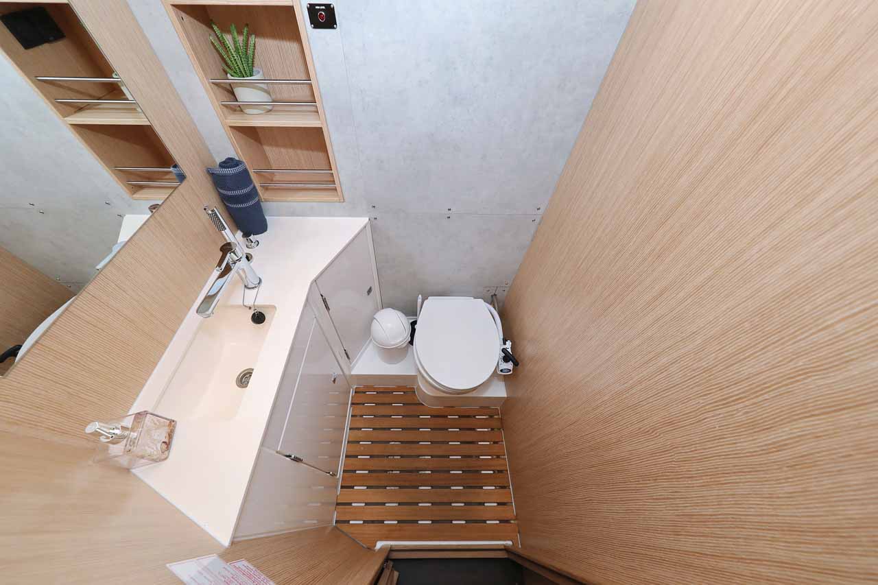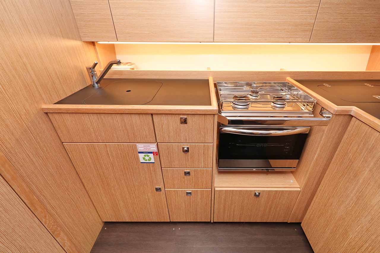 | Inside | Borduhr, Heizung, Inverter 12V/220V, Kühlschrank, Ladegerät, Luftpumpe für Beiboot, Pantryausstattung, Radio mit CD, USB, Bluetooth, Warmwasser |
