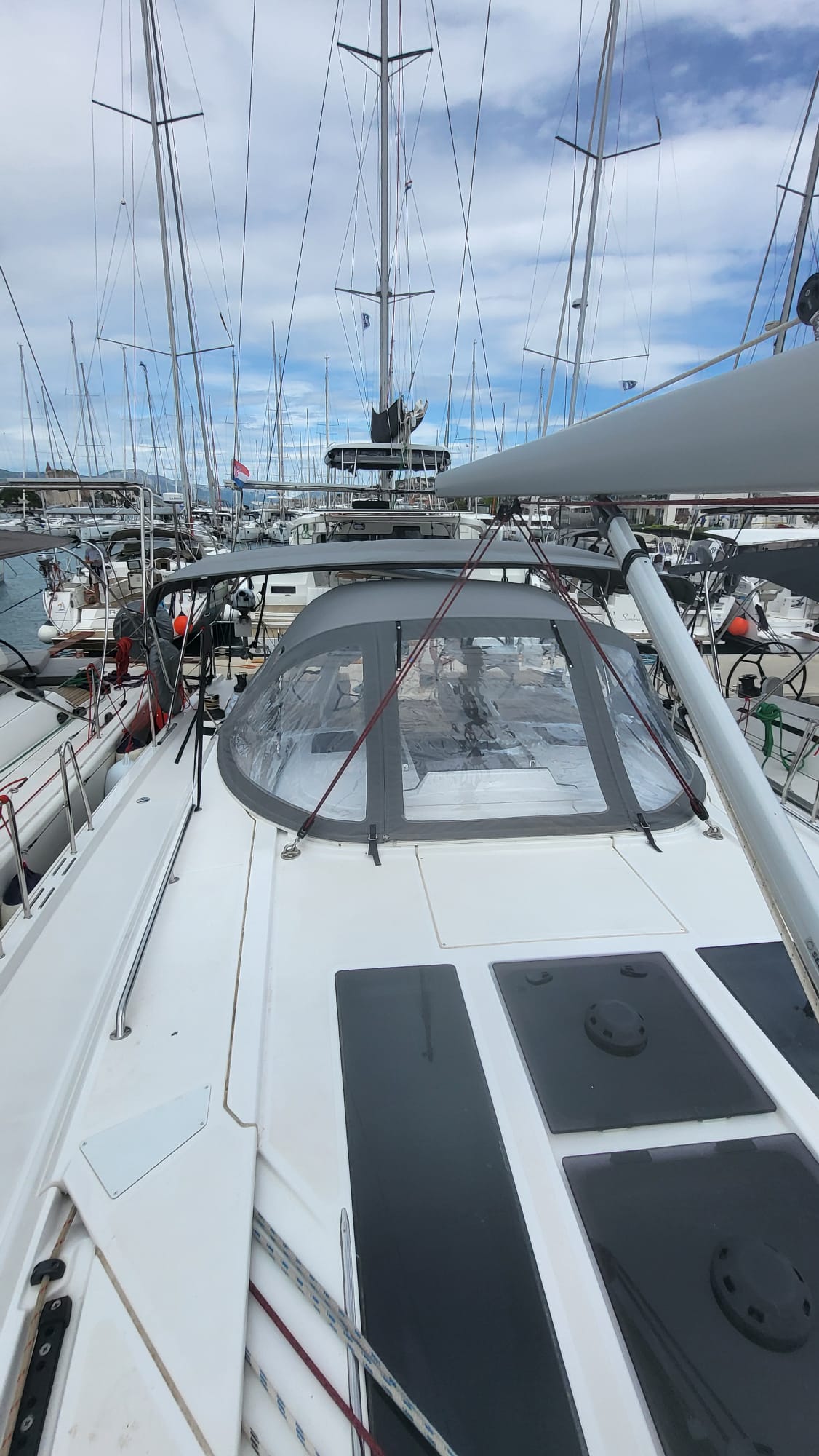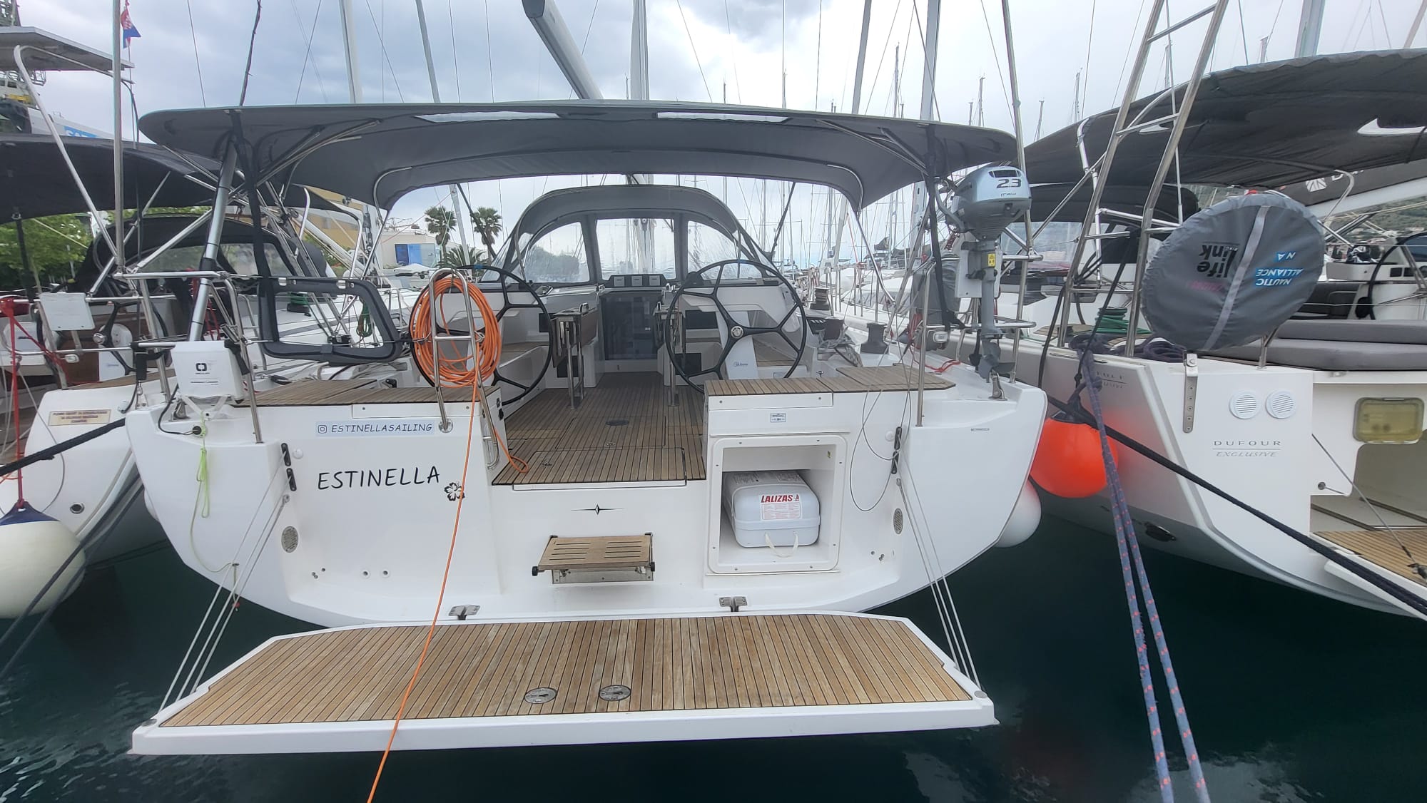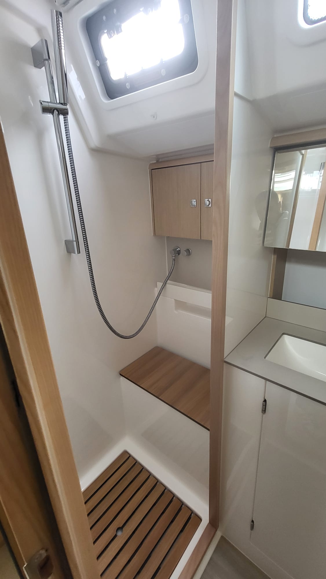 | Outside | 220 V-Landanschluss, Anker mit Kette, Ankerwinsch, Biminitop, Bootshaken, Cockpitdusche, Cockpitlautsprecher, Cockpitpolster, Cockpittisch, Dieselkanister , elektr. Ankerwinsch, Fender, Festmacherleinen, Gangway, Kugelfender, Kunststoff-Eimer (Pütz), Solaranlage, Sprayhood, Teak im Cockpit, Wantenschneider, Wasserkanister , Wasserschlauch, Windex |