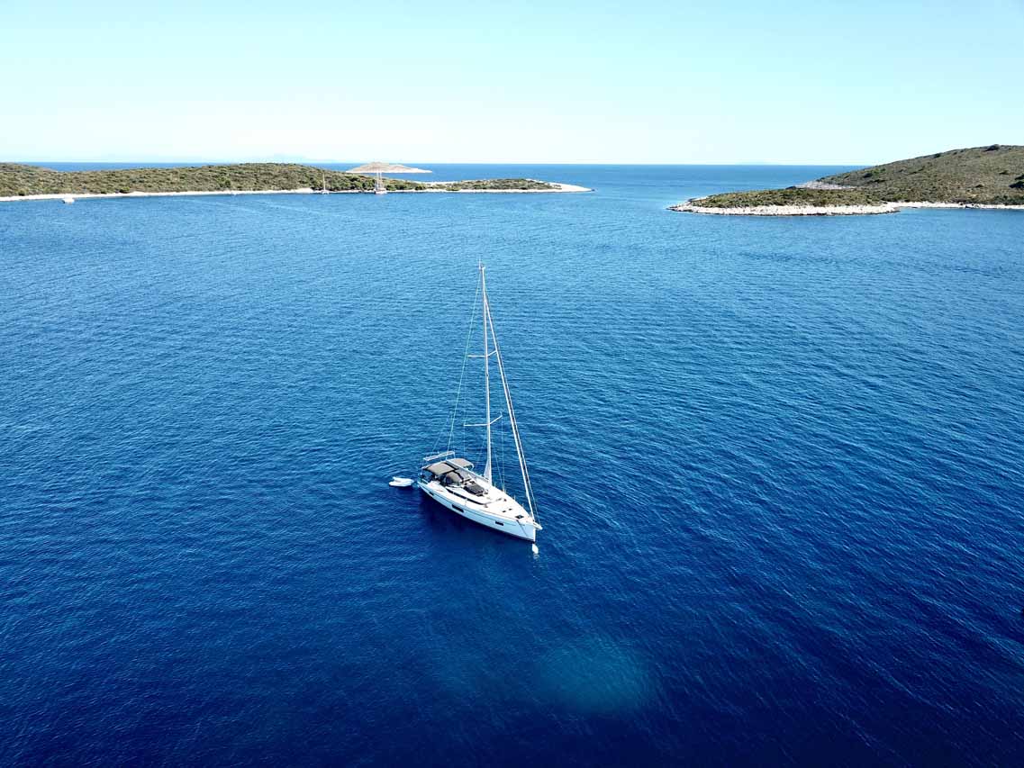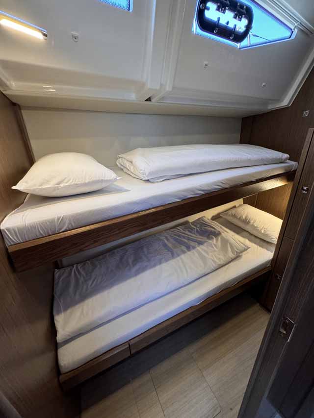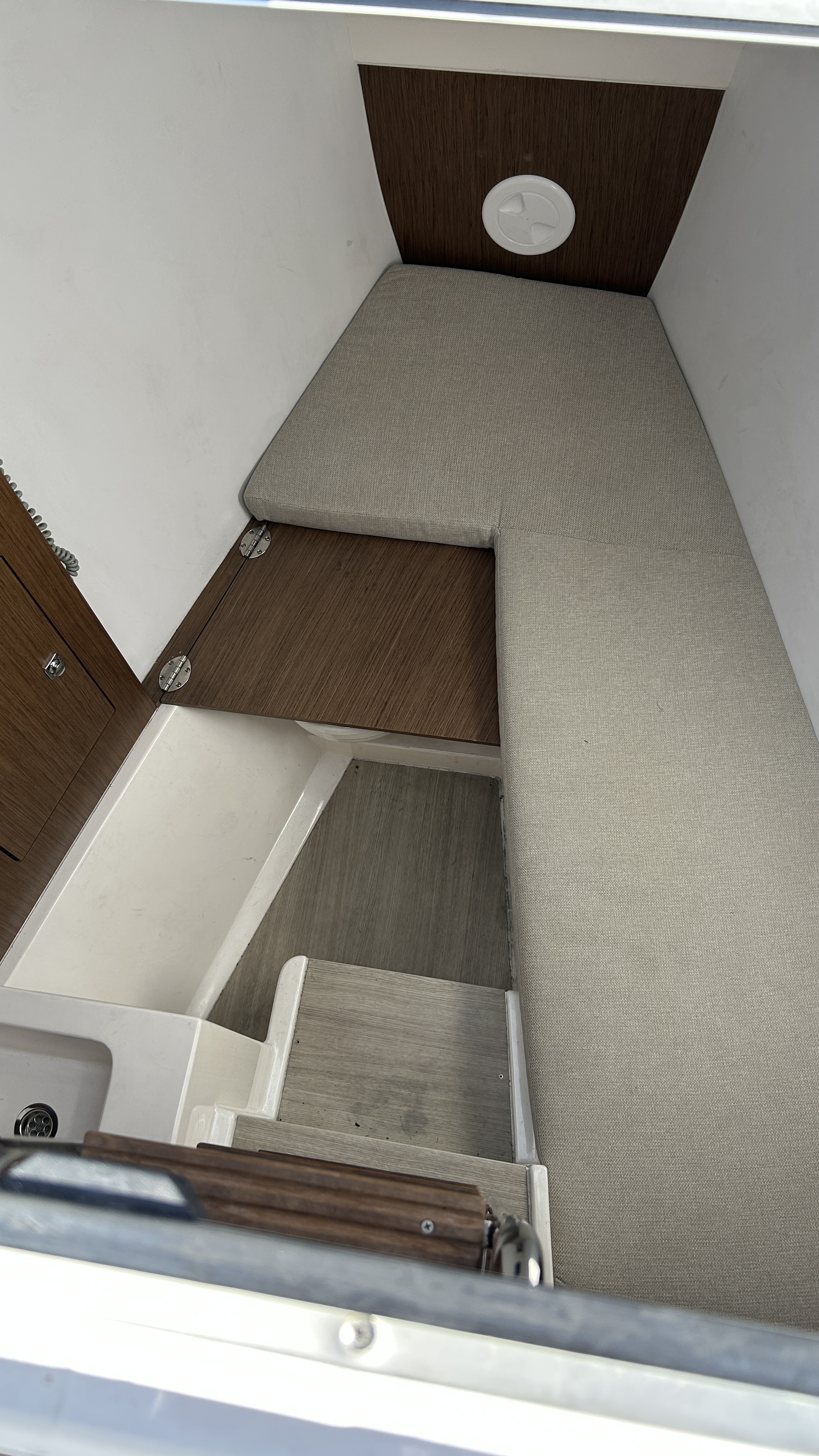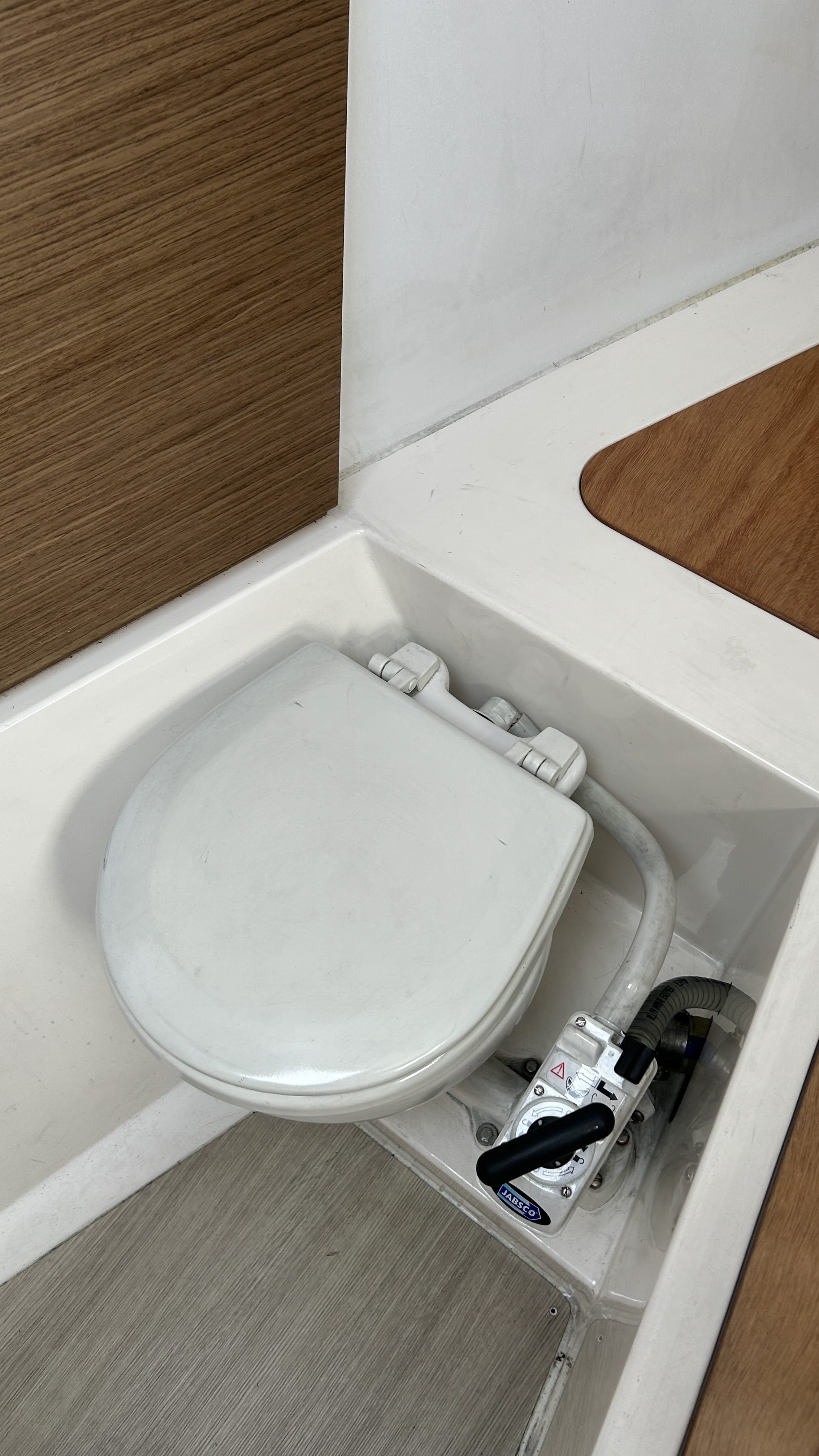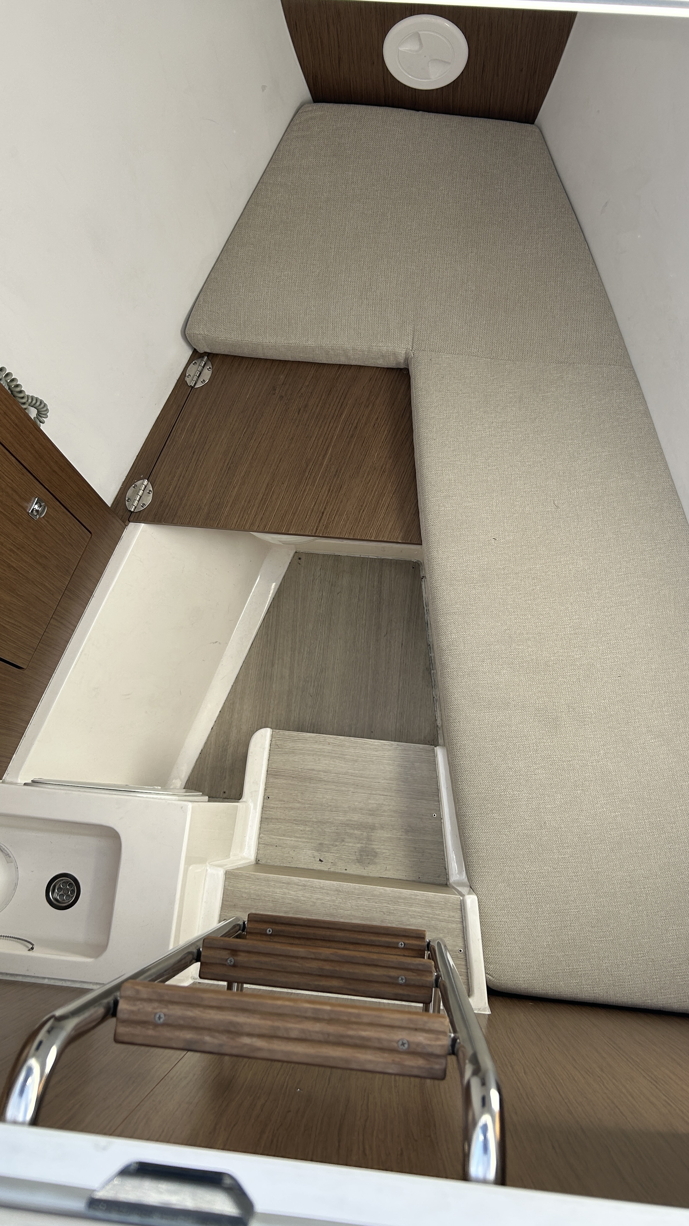 | Inside | 2. Kühlschrank, Borduhr, FUSION Sound System, Generator, Geschirrspüler, Heizung, Inverter 12V/220V, Kaffeemaschine, Klimaanlage (ohne Landstrombedarf), Kühlschrank, Ladegerät, Luftpumpe für Beiboot, Pantryausstattung, Radio mit USB, Bluetooth und AUX-In, Salontisch absenkbar, USB Steckdosen in Salon und Kabinen, Warmwasser, WC (elektr.) |