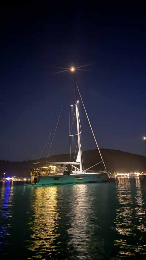 | Safety | AIS Empfänger, Automatikwesten, Autopilot, Blitzboje, Bootsmannstuhl, Bordapotheke, Bordwerkzeug, Bugstrahlruder, Feuerlöscher, Lifebelts, Motor-Ersatzteile, Nebelhorn, Notsignale, Radarreflektor, Reparaturset für Beiboot, Rettungsinsel, Suchscheinwerfer, Taschenlampe, UKW-Funk mit AIS, Zweitanker |