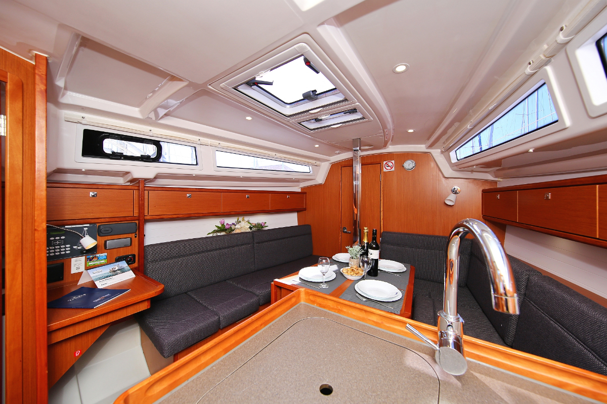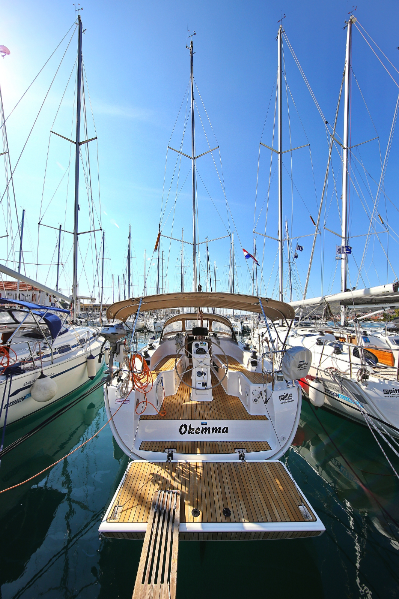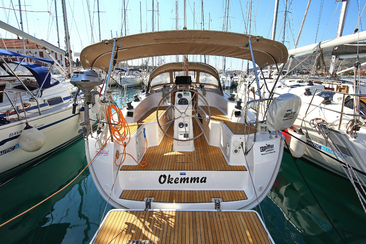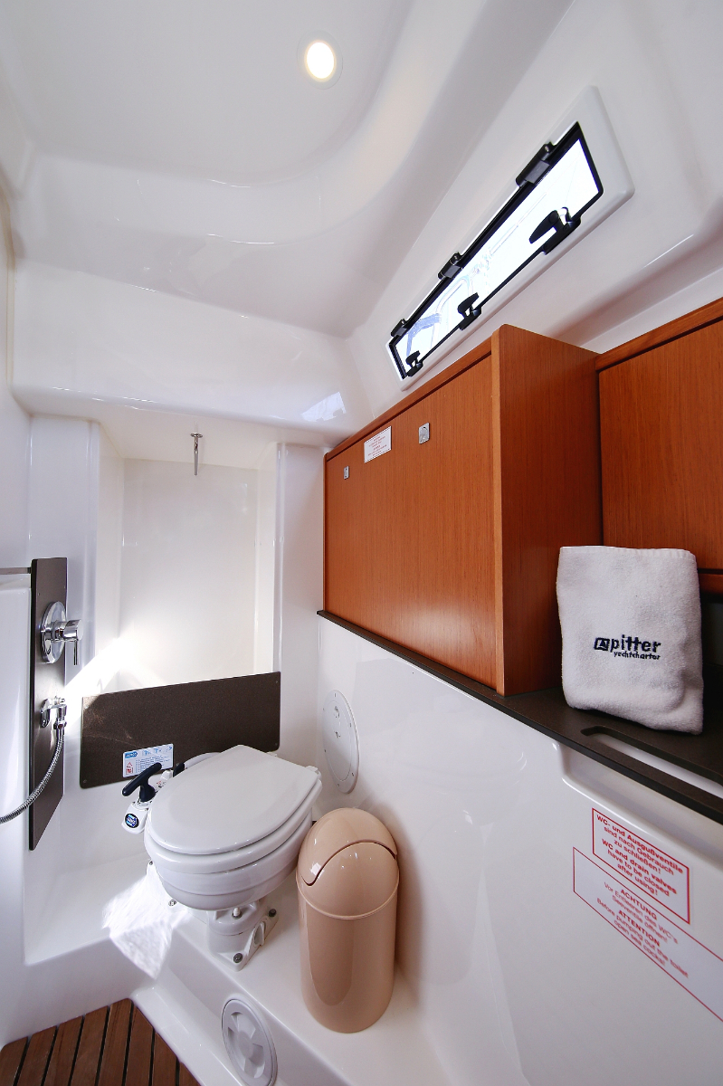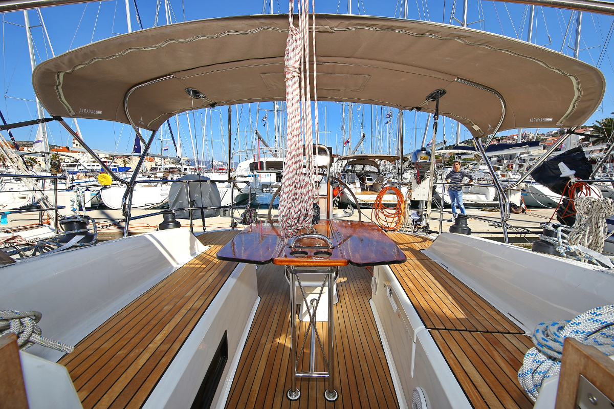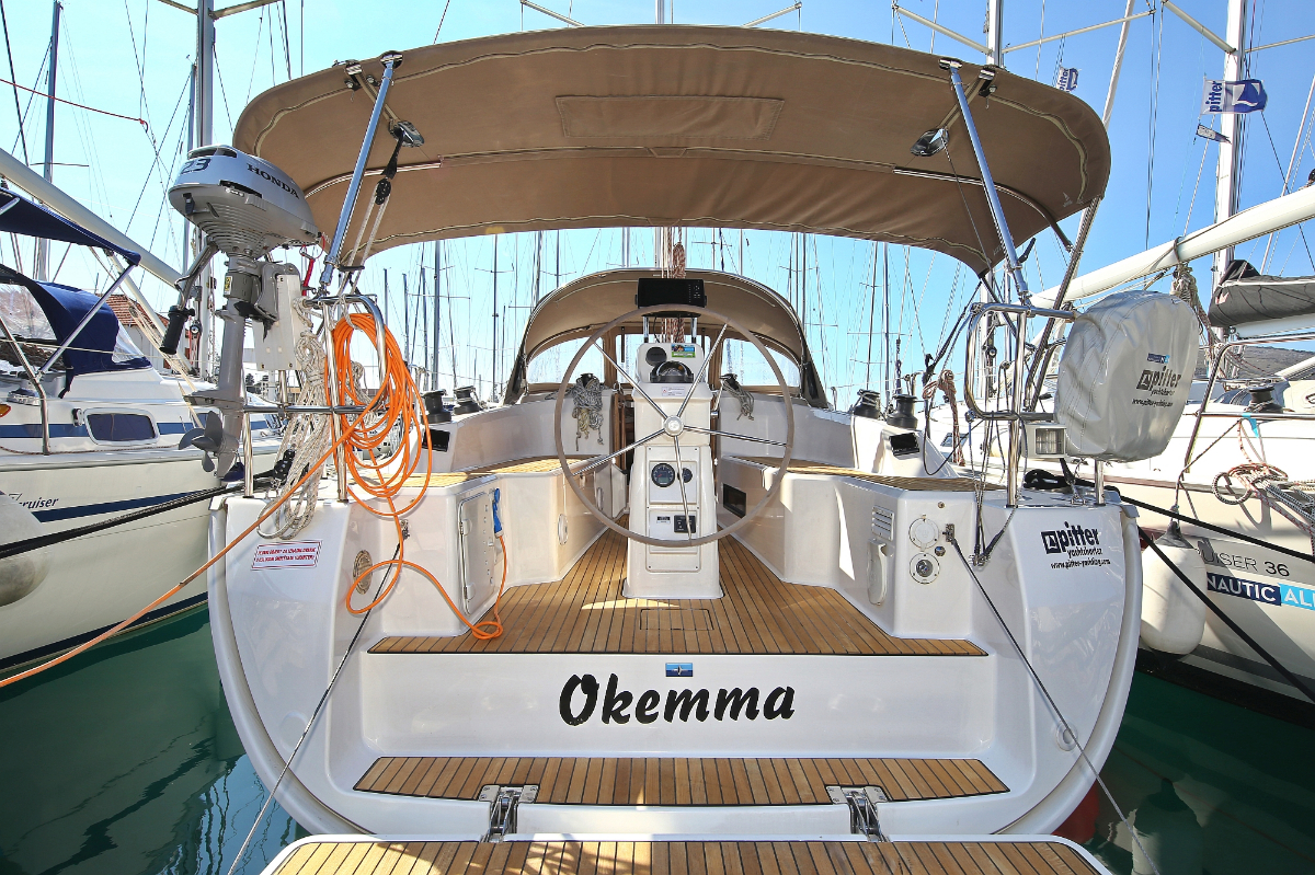 | Outside | 220 V-Landanschluss, Anker mit Kette, Ankerwinsch, Badeplattform, Biminitop, Bootshaken, Cockpitdusche, Cockpitlautsprecher, Cockpitpolster, Cockpittisch, Dieselkanister , elektr. Ankerwinsch, Fender, Festmacherleinen, Gangway, Kugelfender, Kunststoff-Eimer (Pütz), Sprayhood, Teak im Cockpit, Wantenschneider, Wasserkanister , Wasserschlauch, Windex |