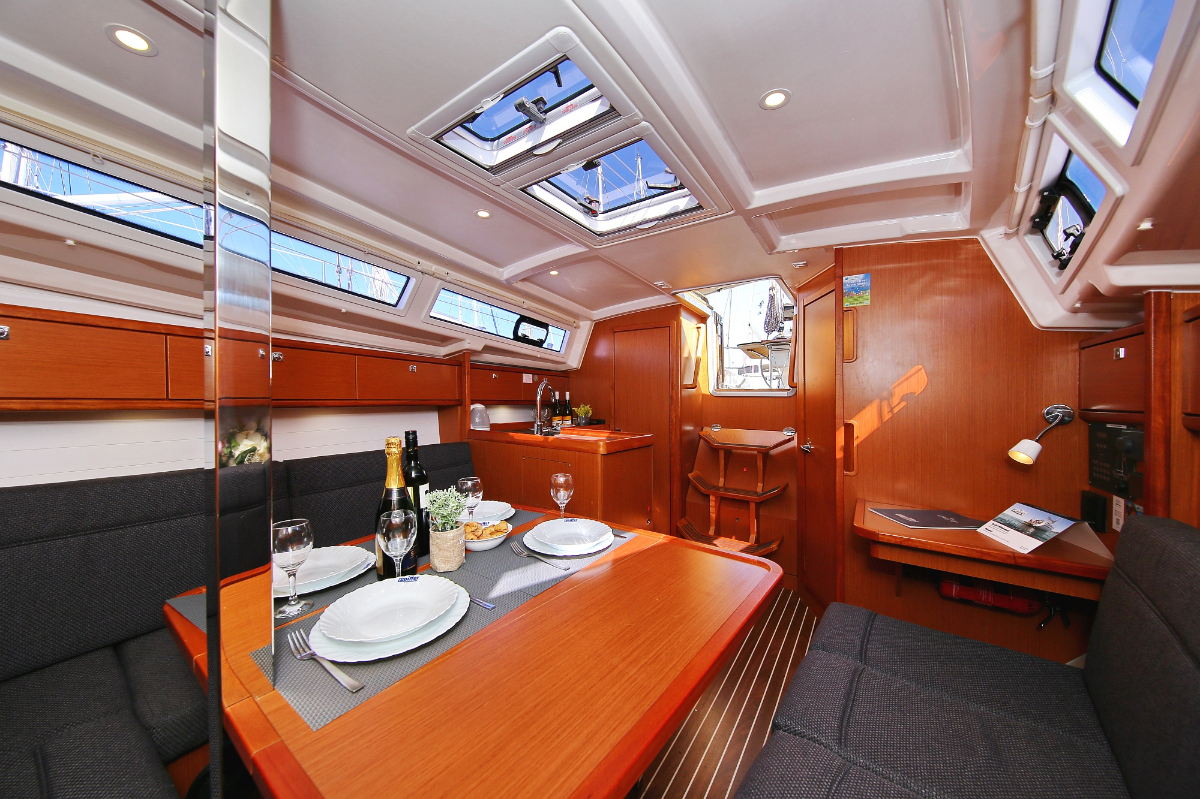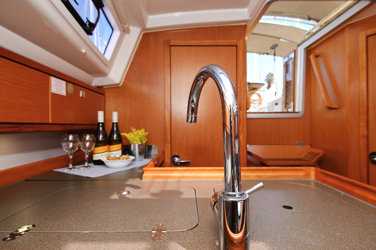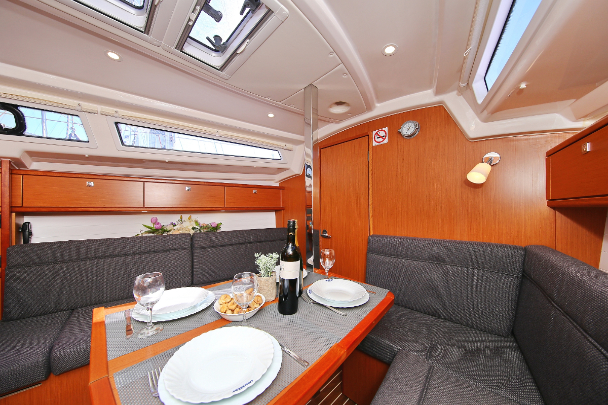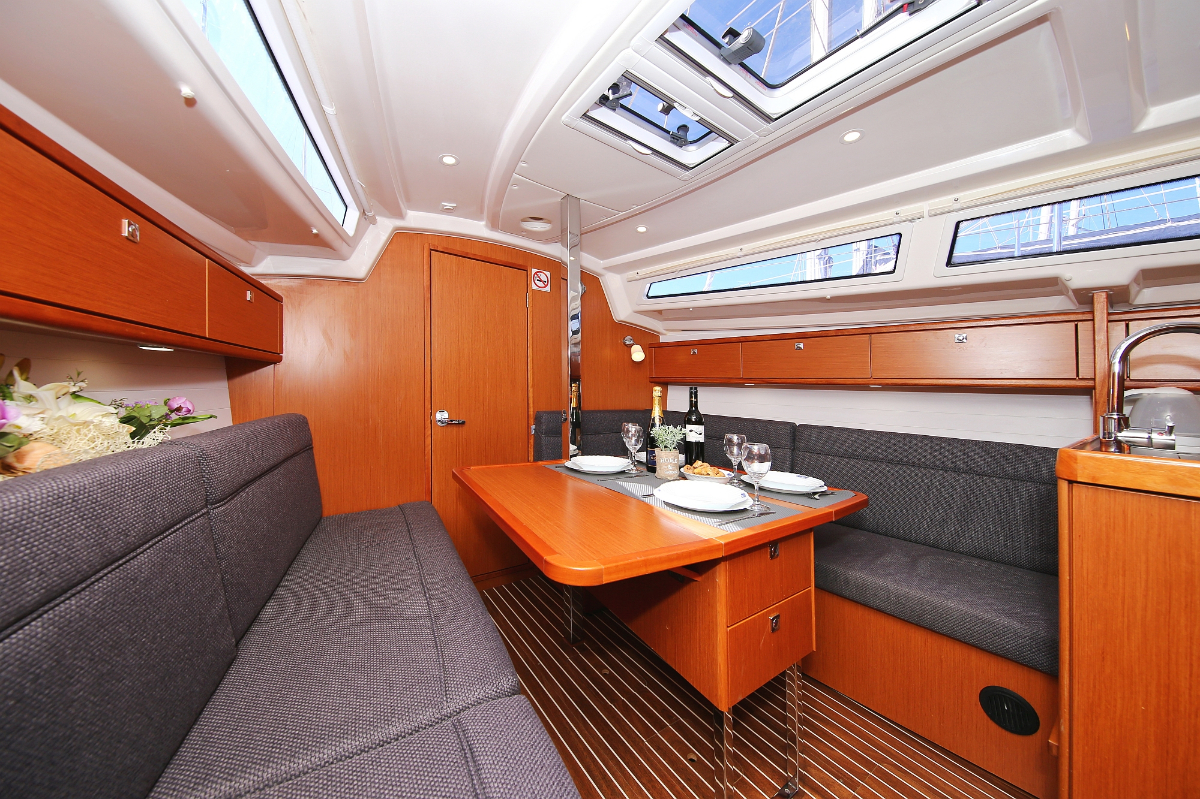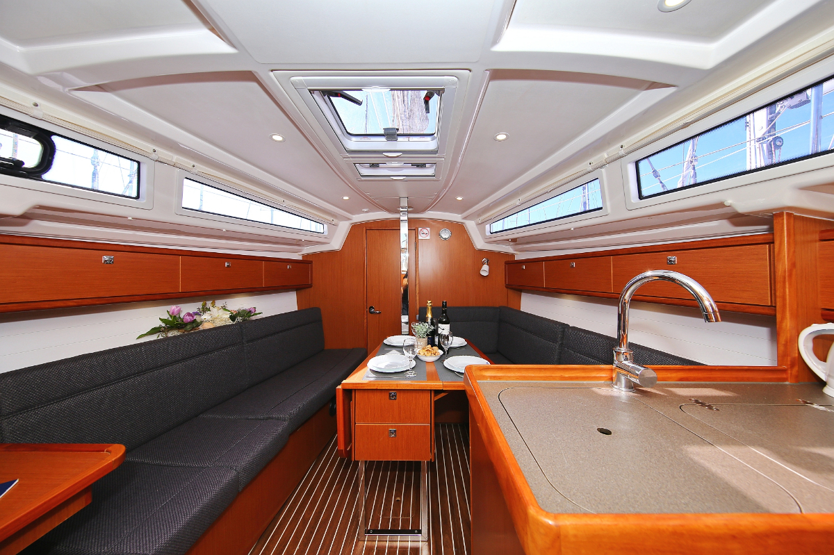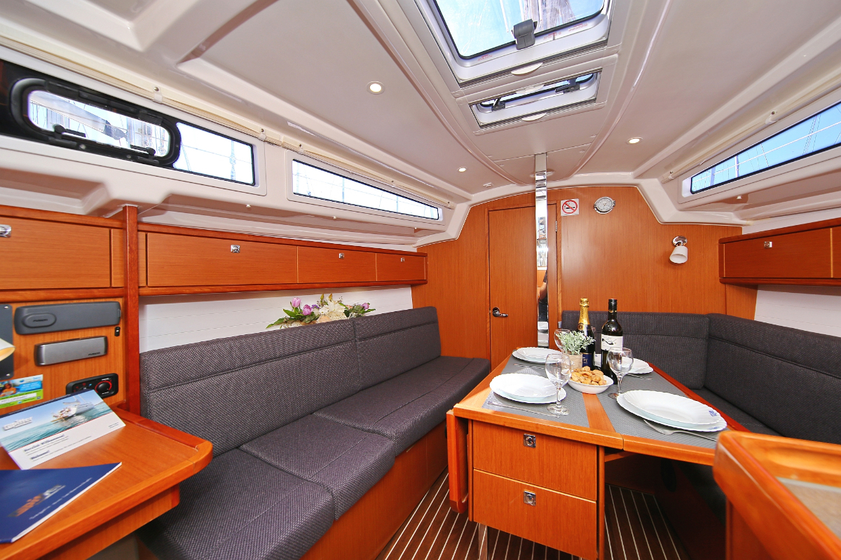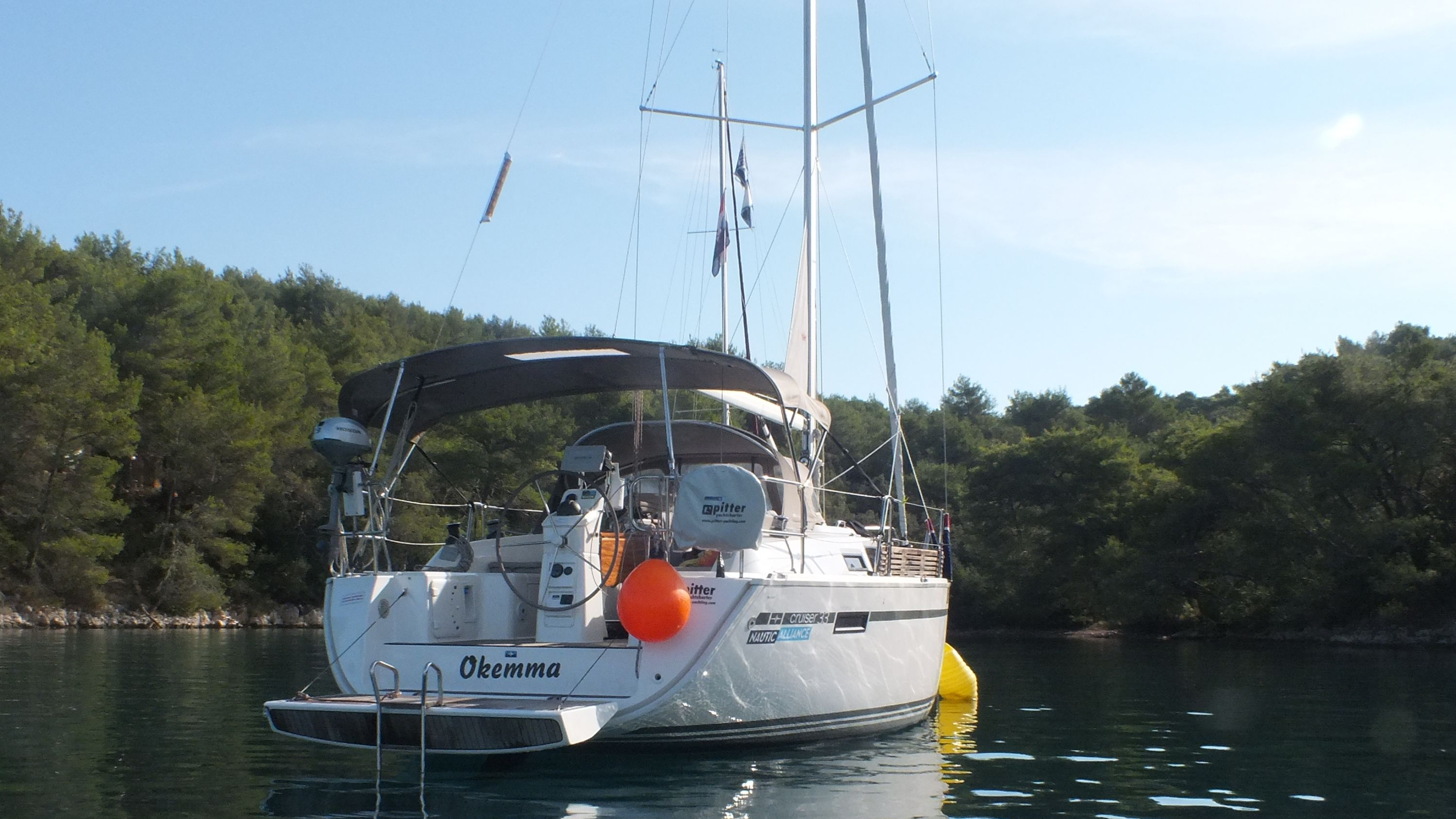 | Outside | 220 V-Landanschluss, Anker mit Kette, Ankerwinsch, Badeplattform, Biminitop, Bootshaken, Cockpitdusche, Cockpitlautsprecher, Cockpitpolster, Cockpittisch, Dieselkanister , elektr. Ankerwinsch, Fender, Festmacherleinen, Gangway, Kugelfender, Kunststoff-Eimer (Pütz), Sprayhood, Teak im Cockpit, Wantenschneider, Wasserkanister , Wasserschlauch, Windex |