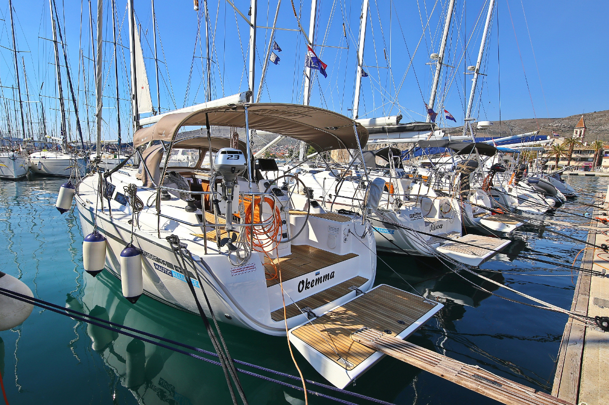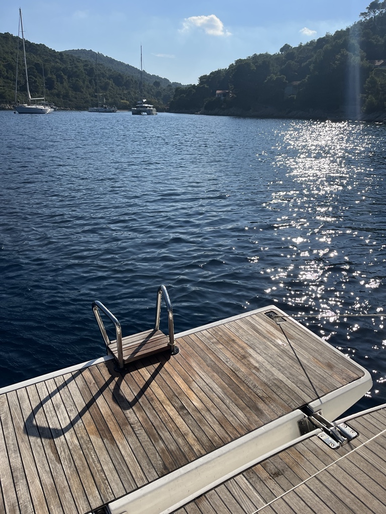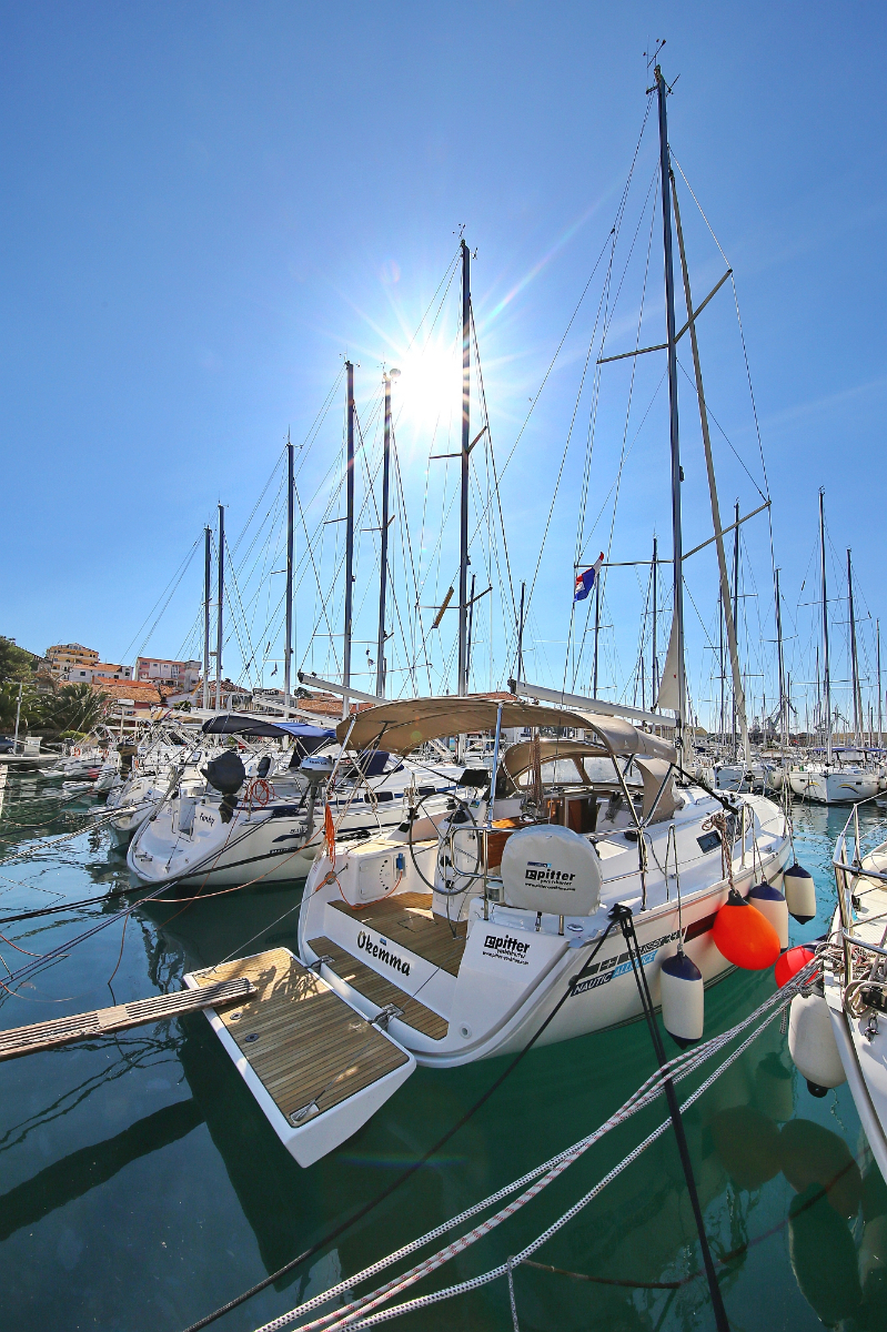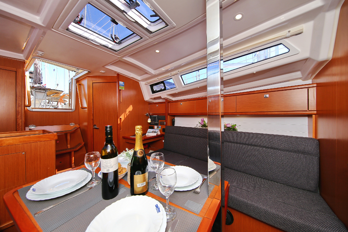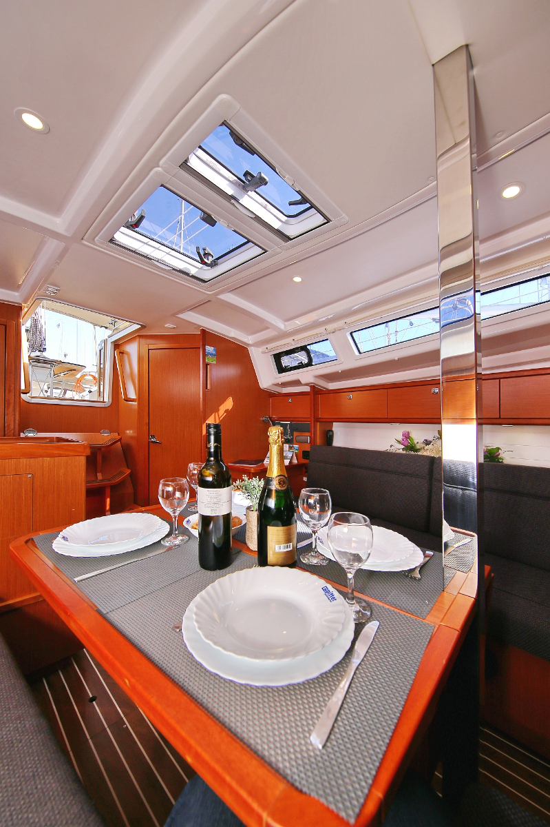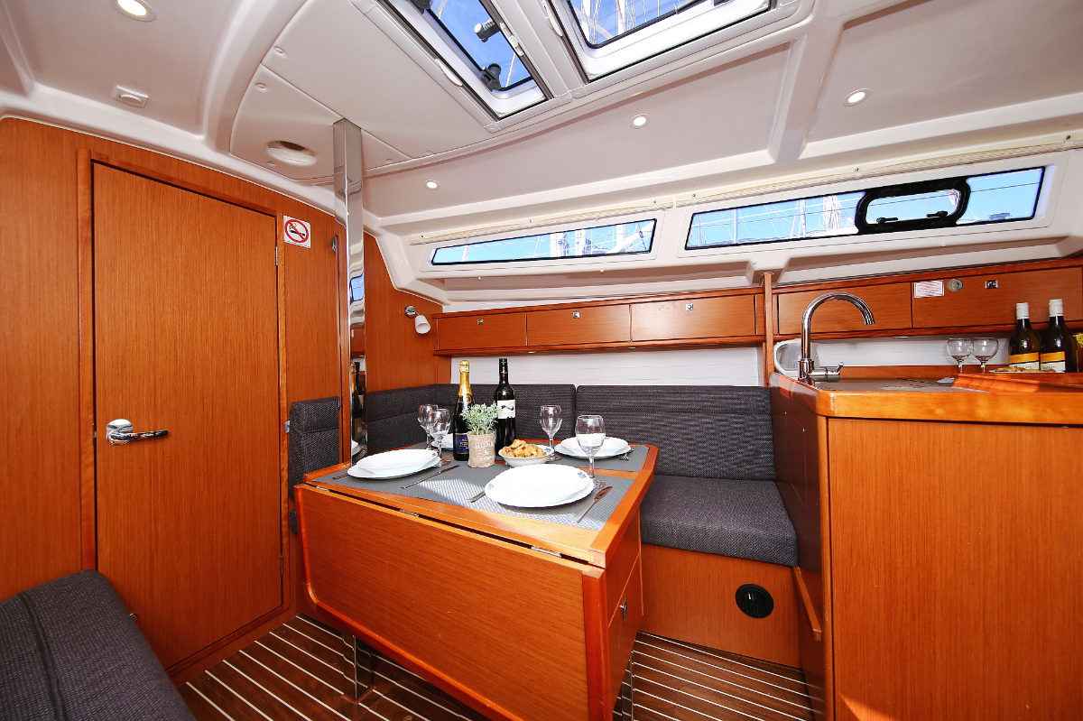 | Outside | 220 V-Landanschluss, Anker mit Kette, Ankerwinsch, Badeplattform, Biminitop, Bootshaken, Cockpitdusche, Cockpitlautsprecher, Cockpitpolster, Cockpittisch, Dieselkanister , elektr. Ankerwinsch, Fender, Festmacherleinen, Gangway, Kugelfender, Kunststoff-Eimer (Pütz), Sprayhood, Teak im Cockpit, Wantenschneider, Wasserkanister , Wasserschlauch, Windex |