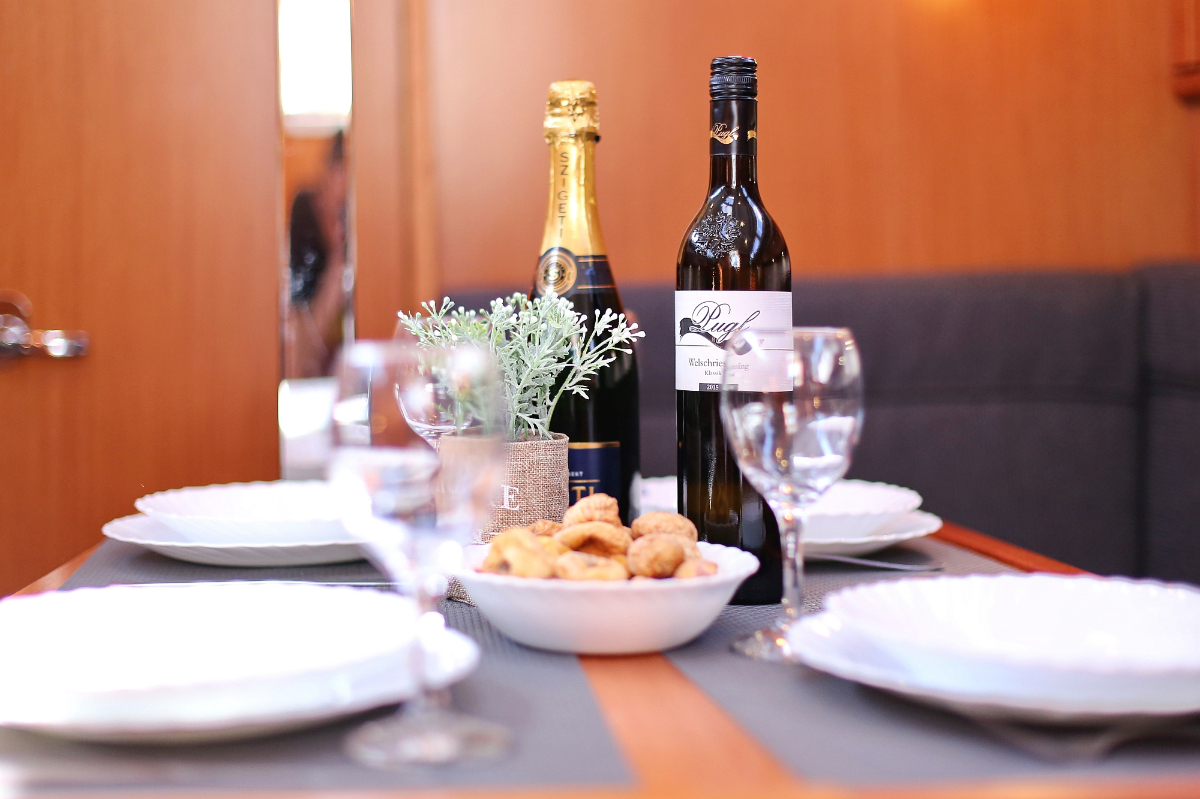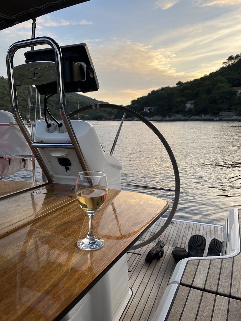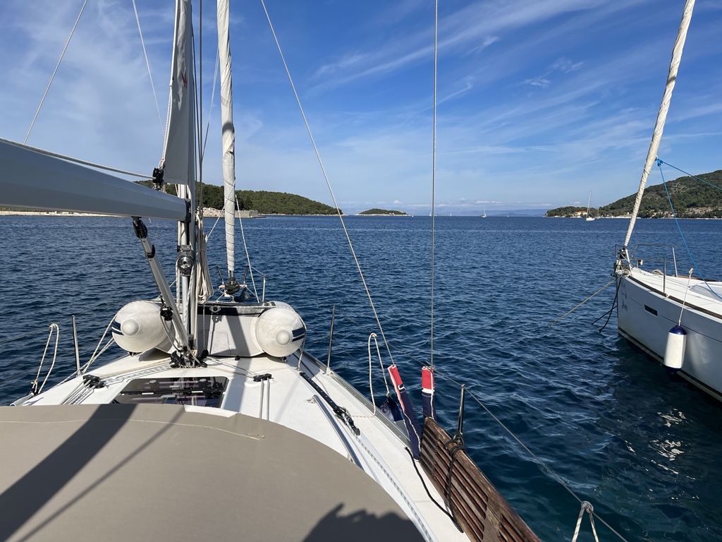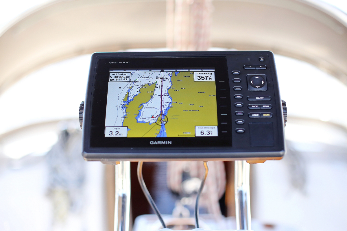 | Navigation | Fernglas, Fernglas mit Peilkompass, GPS mit Kartenplotter im Cockpit, Hafenhandbücher, Navigationsbesteck, Seekarten, Tridata (Log, Echolot, Windm.) |