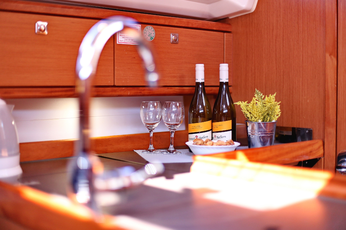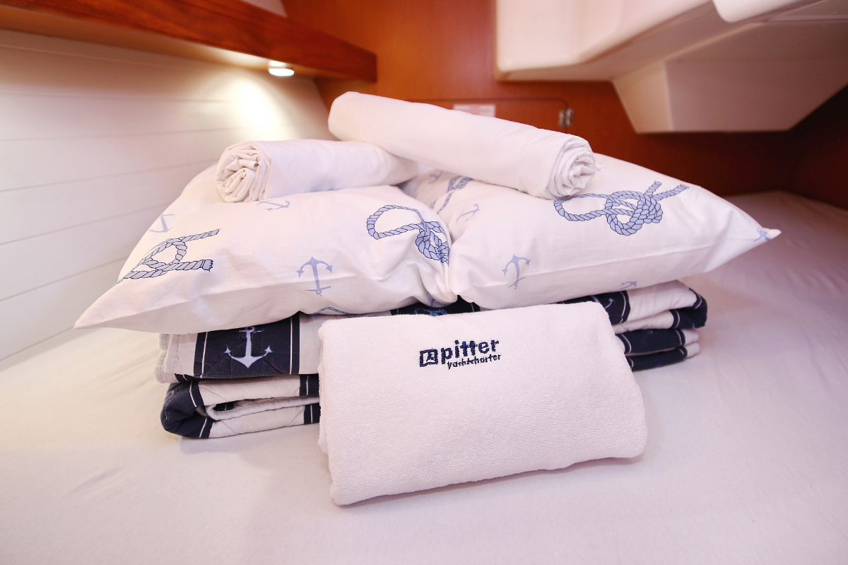| Safety | Automatikwesten, Autopilot, Blitzboje, Bootsmannstuhl, Bordapotheke, Bordwerkzeug, Feuerlöscher, Lifebelts, Motor-Ersatzteile, Nebelhorn, Notsignale, Radarreflektor, Reparaturset für Beiboot, Rettungsinsel, Suchscheinwerfer, Taschenlampe, UKW-Funk, Zweitanker |