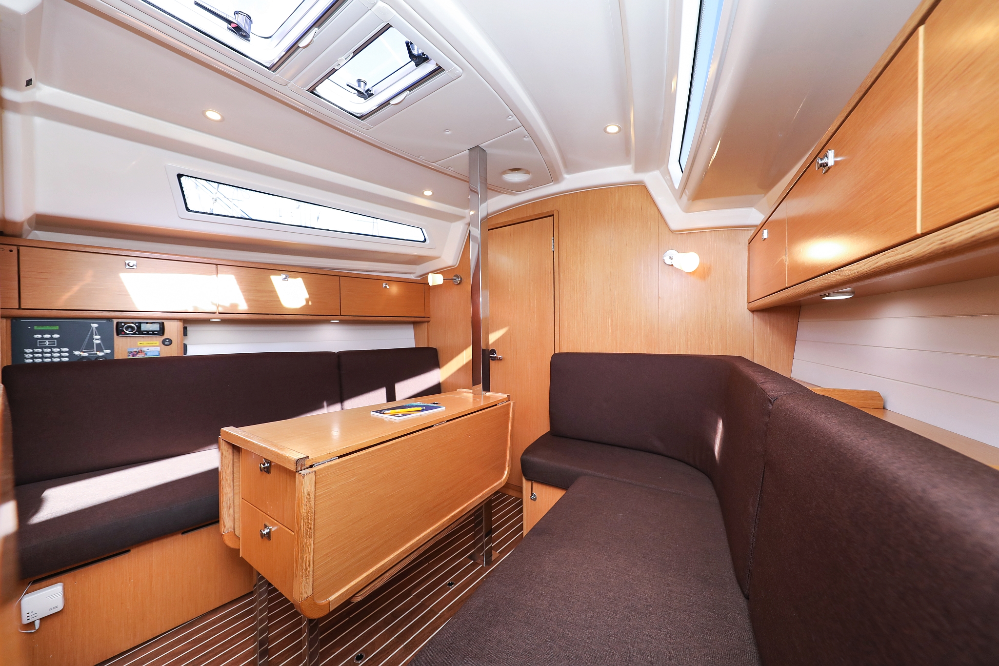 | Safety | Autopilot, Blitzboje, Bordapotheke, Bordwerkzeug, Bugstrahlruder, elektr. Bilgepumpe, Feststoffschwimmwesten, Feuerlöscher, Handbilgepumpe, Lifebelts, Nebelhorn, Notpinne, Notsignale, Radarreflektor, Rettungsinsel, Taschenlampe, UKW-Funk mit AIS, Zweitanker |