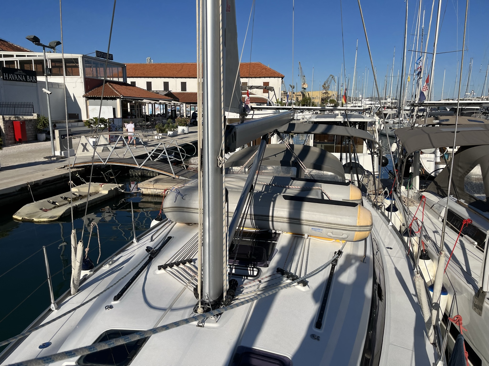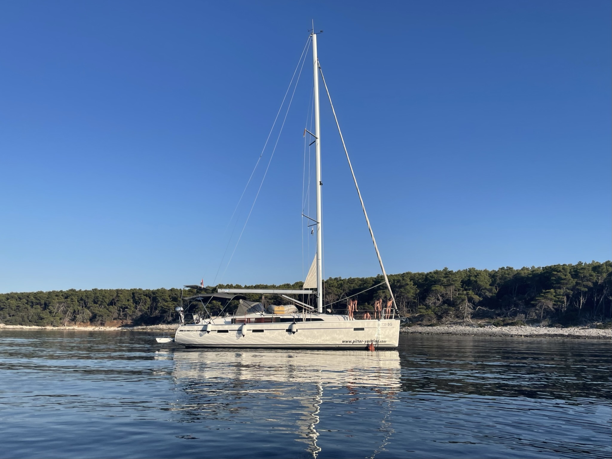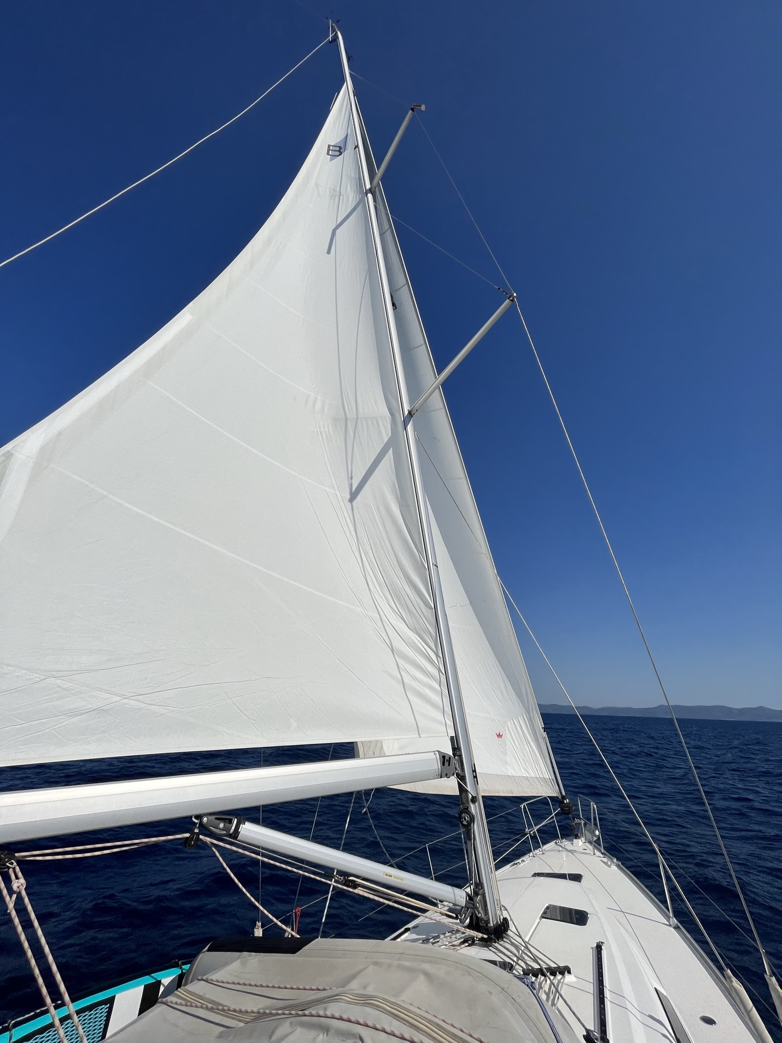 Technisch gesehen segelte das Boot gut und der Motor funktionierte auch gut. Allerdings leckte der Motor Öl, die Ankerkette rutschte die ganze Zeit von der Winde (die Winde war verschlissen), das Funkgerät funktionierte kaum, das Ankerlicht leuchtete nicht auf, und der Plotter konnte die Karten nicht lesen, offenbar nachdem er etw. Wasser bekommen hat. Sonst war die Ausrüstung in gutem Zustand.