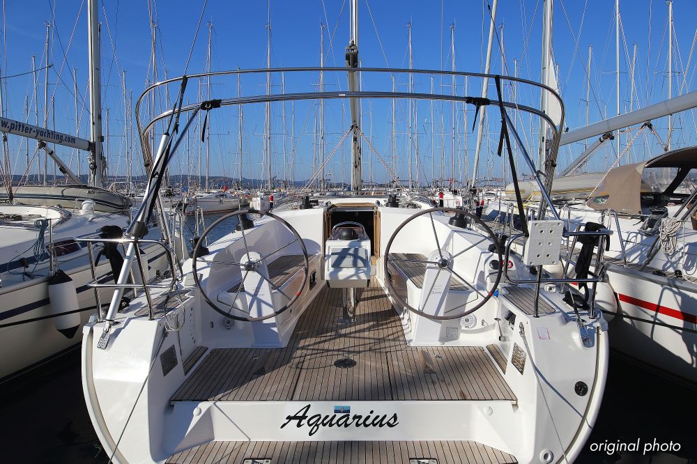 | Outside | 220 V-Landanschluss, Anker mit Kette, Badeplattform, Biminitop, Bootshaken, Cockpitdusche, Cockpitlautsprecher, Cockpitpolster, Cockpittisch, Dieselkanister , elektr. Ankerwinsch, Fender, Festmacherleinen, Gangway, Kugelfender, Kunststoff-Eimer (Pütz), Solaranlage, Sprayhood, Teak im Cockpit, Wantenschneider, Wasserkanister , Wasserschlauch, Windex |