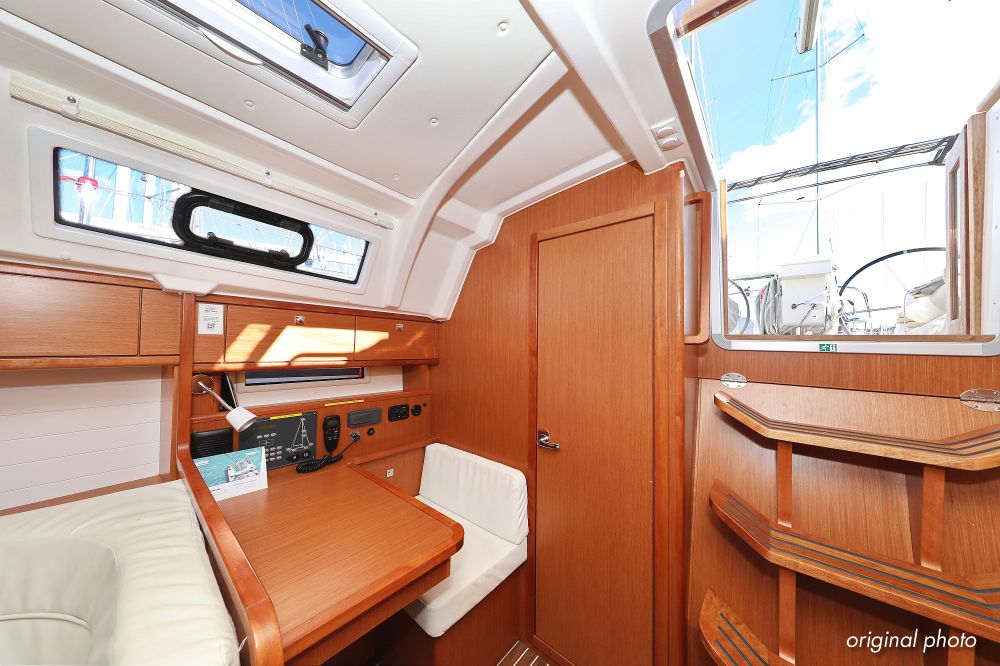 | Navigation | Barometer, Fernglas mit Peilkompass, GPS mit Kartenplotter im Cockpit, Handpeilkompass, Navigationsbesteck, Seekarten, Tridata (Log, Echolot, Windm.) |