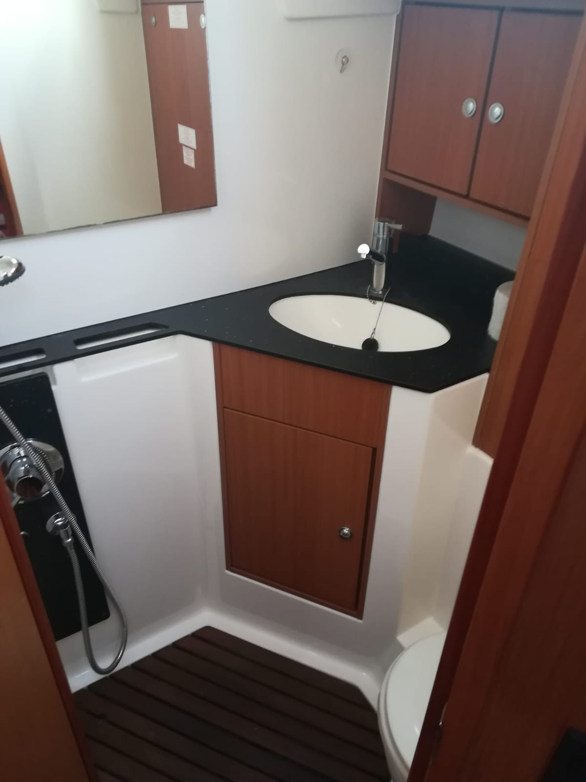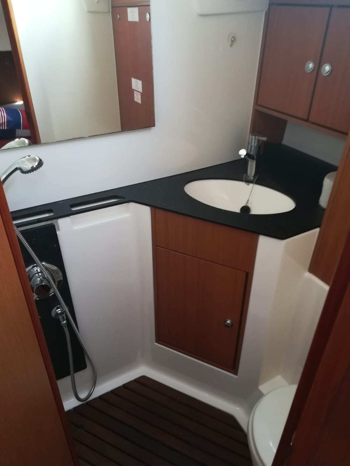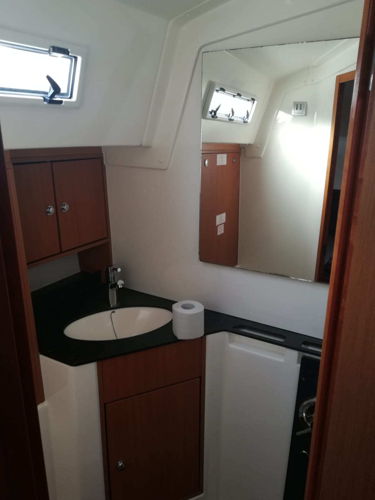 Boot ist für 6 Jahre schon recht abgerockt. Technische Probleme werden mit in der kürze der Standzeiten nur schnell gefixt und nicht nachhaltig. Viele Kleinteile in der nassen, nicht überprüften, achterlichen Bilge gefunden. Bei Regen / Gischt über Vordeck läuft Wasser in die vordere StB-Kabine.