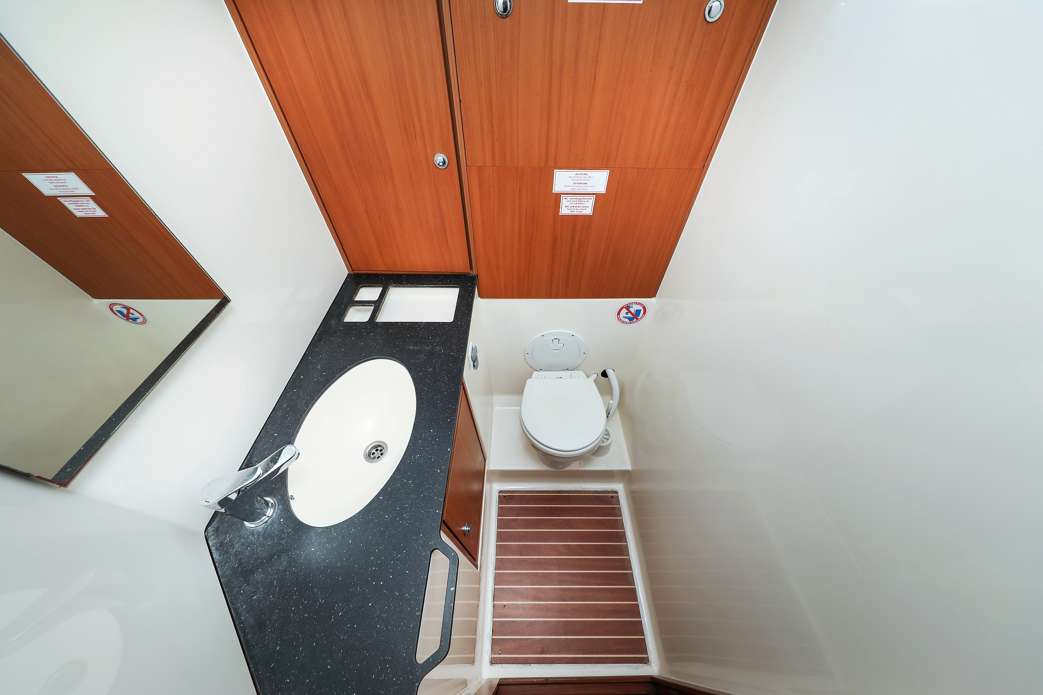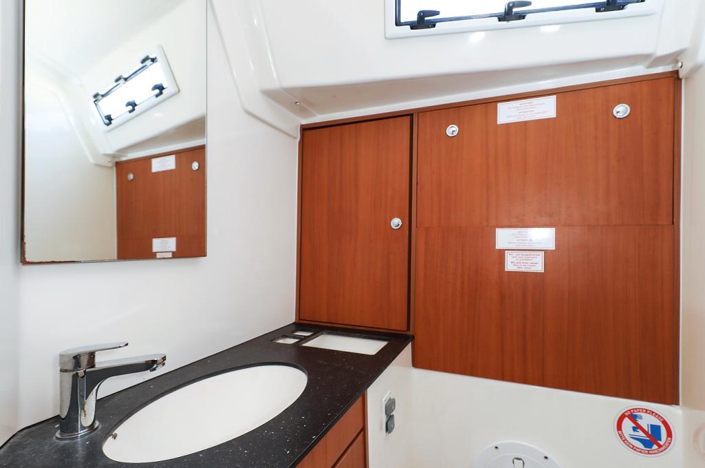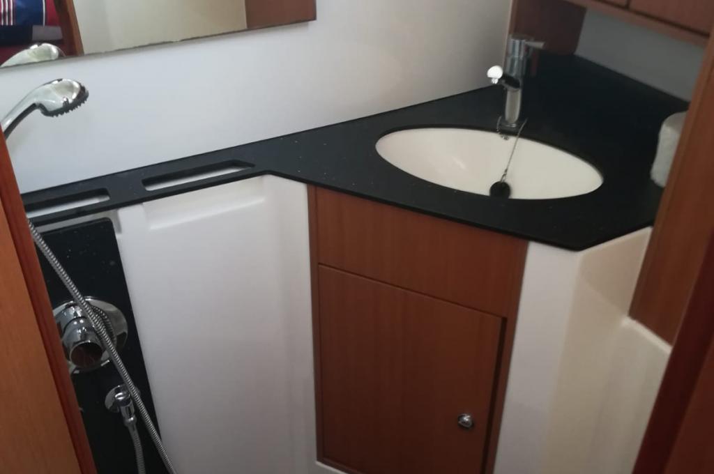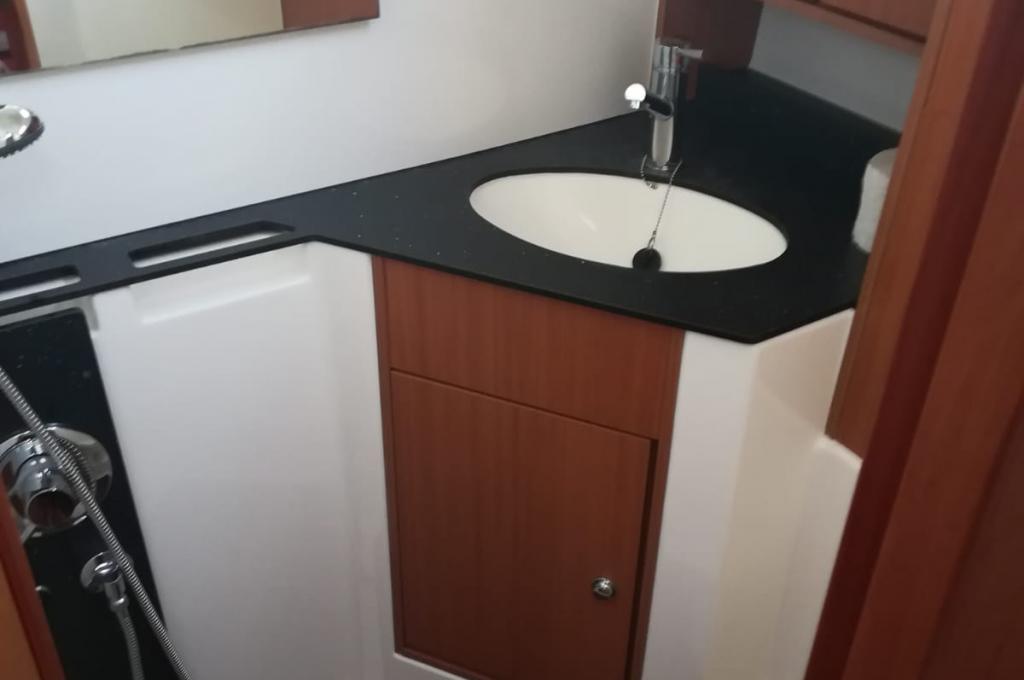Boot ist für 6 Jahre schon recht abgerockt. Technische Probleme werden mit in der kürze der Standzeiten nur schnell gefixt und nicht nachhaltig. Viele Kleinteile in der nassen, nicht überprüften, achterlichen Bilge gefunden. Bei Regen / Gischt über Vordeck läuft Wasser in die vordere StB-Kabine.