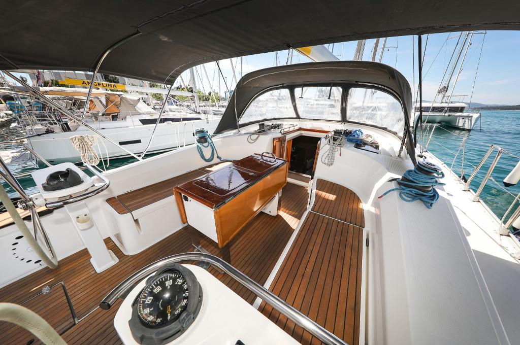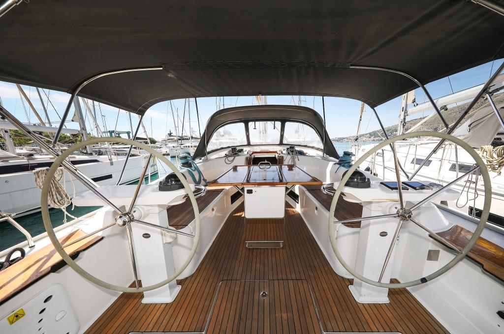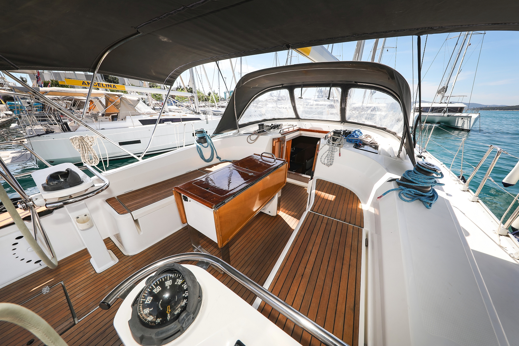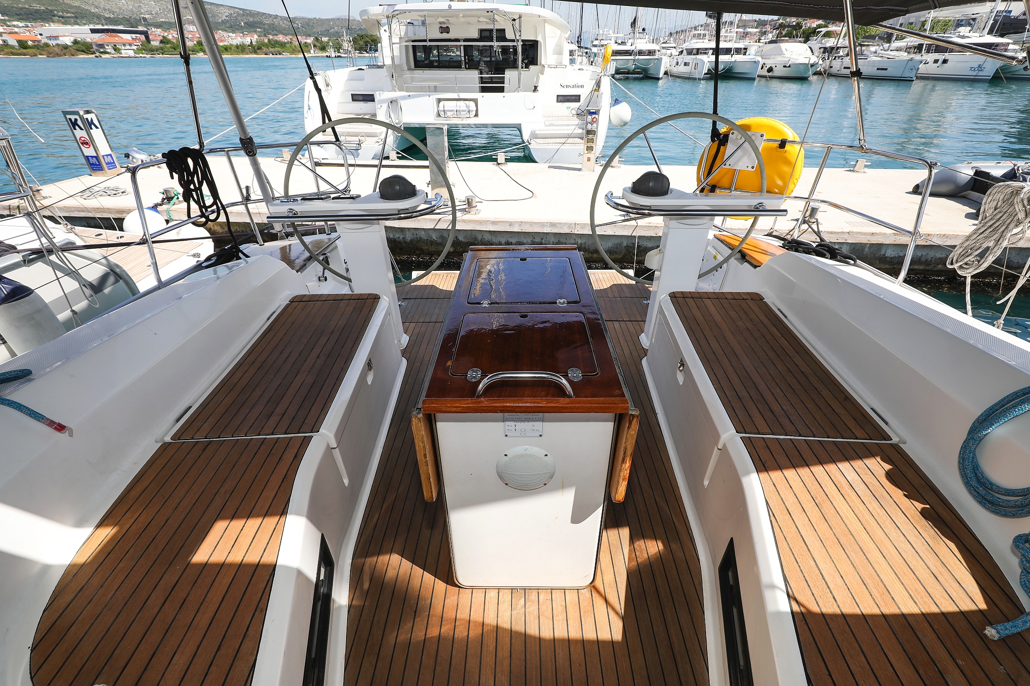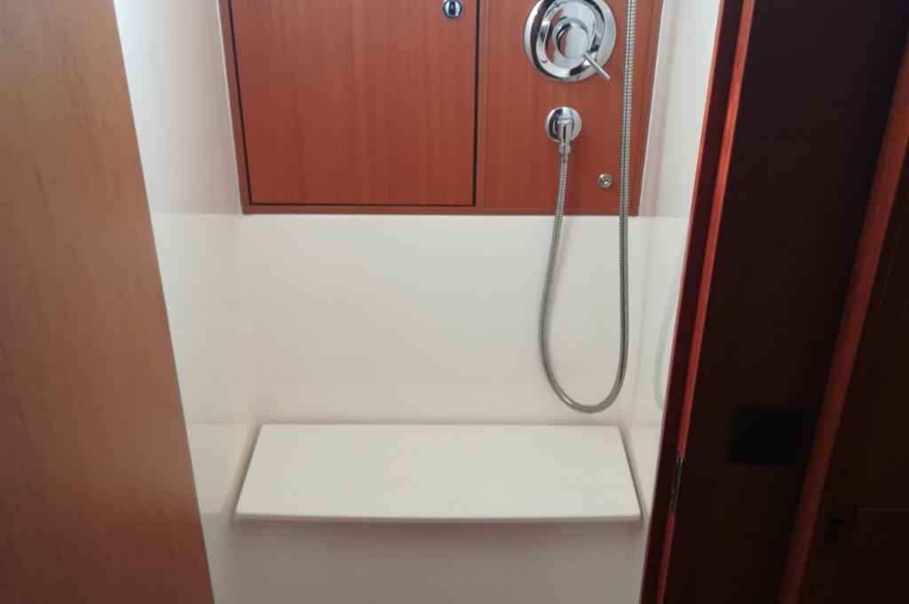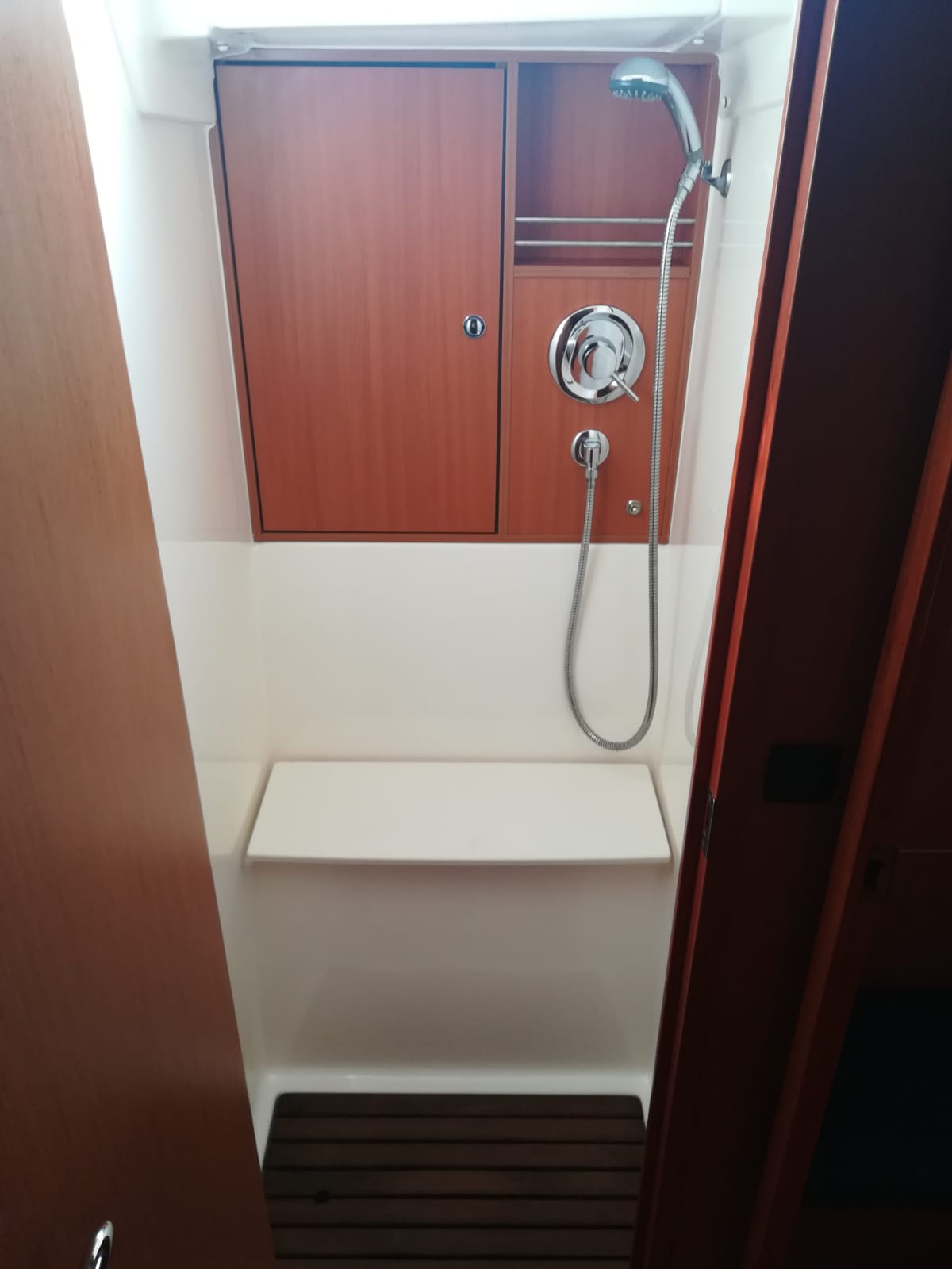 | Outside | 220 V-Landanschluss, Anker mit Kette, Badeplattform, Biminitop, Cockpitdusche, Cockpitlautsprecher, Cockpitpolster, Cockpittisch, elektr. Ankerwinsch, Fender, Gangway, Kugelfender, Solaranlage, Sprayhood, Teak im Cockpit, Winschen |