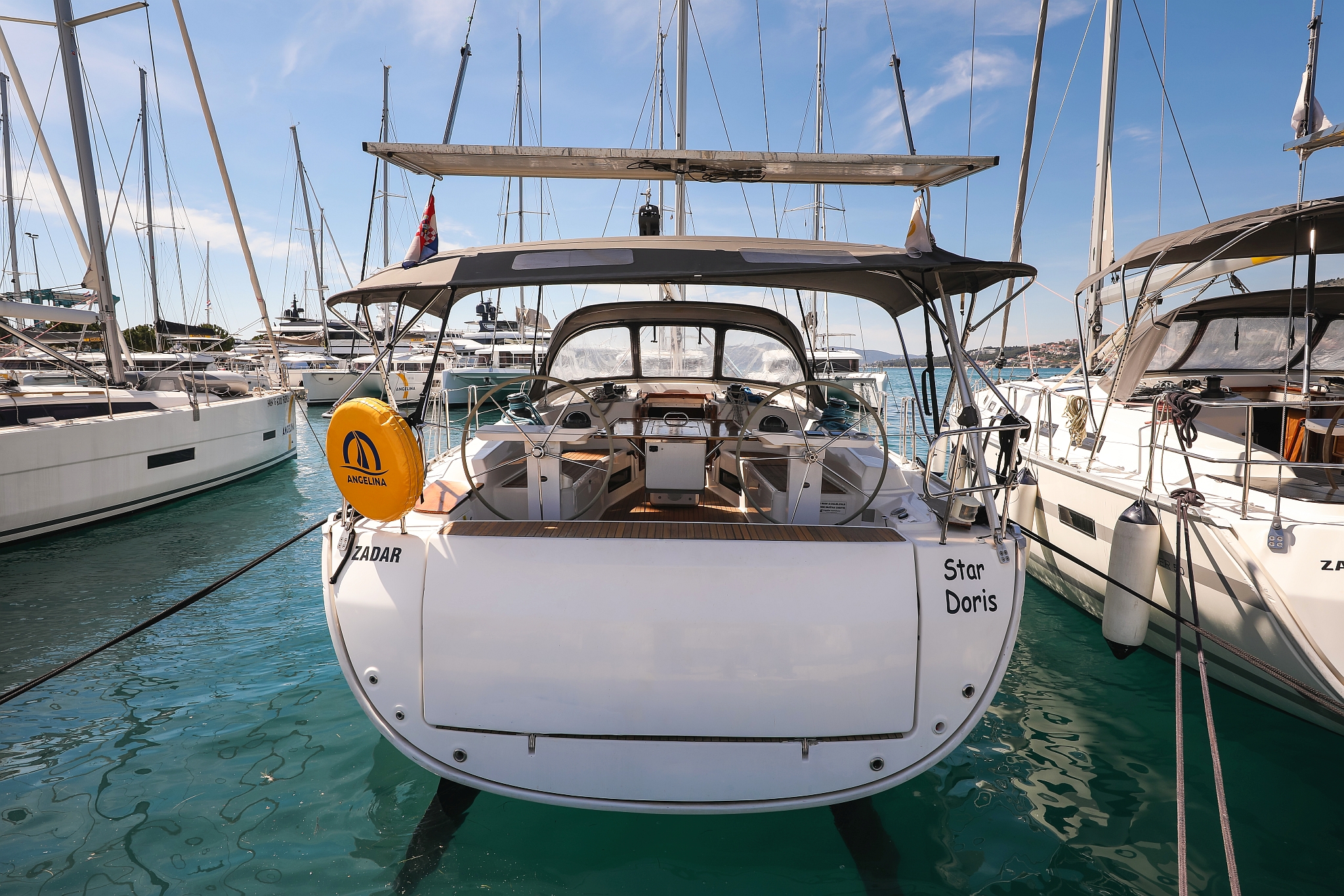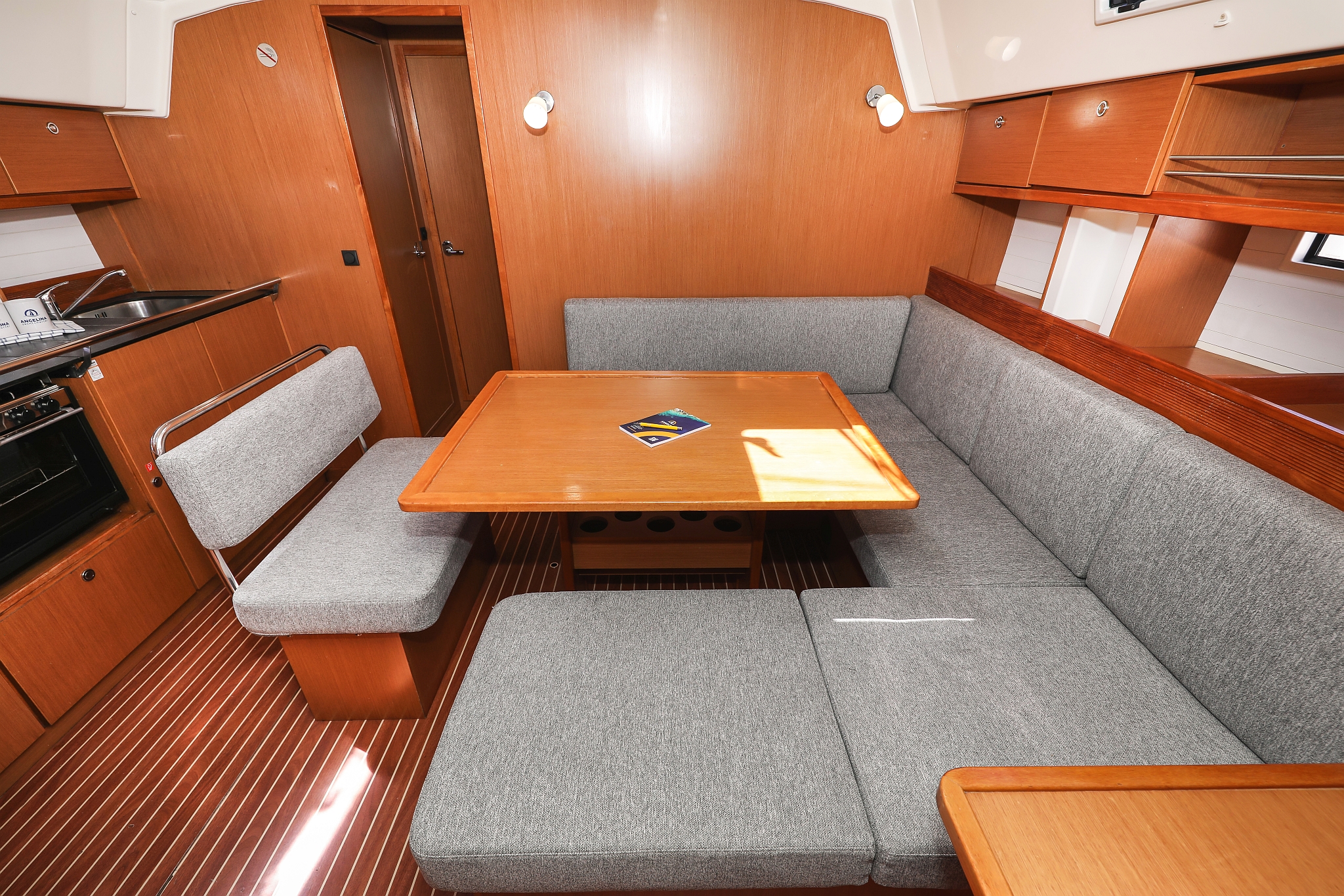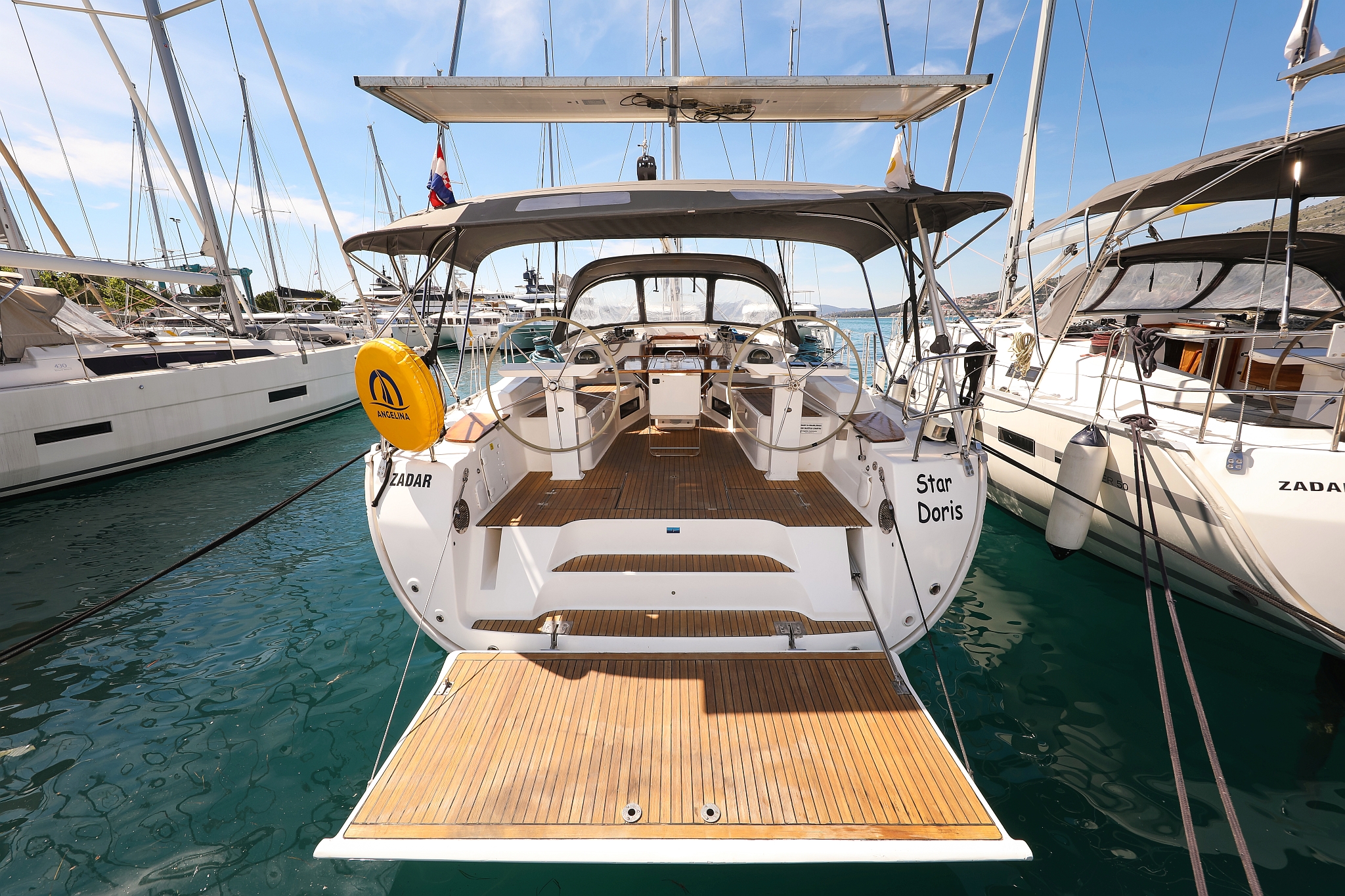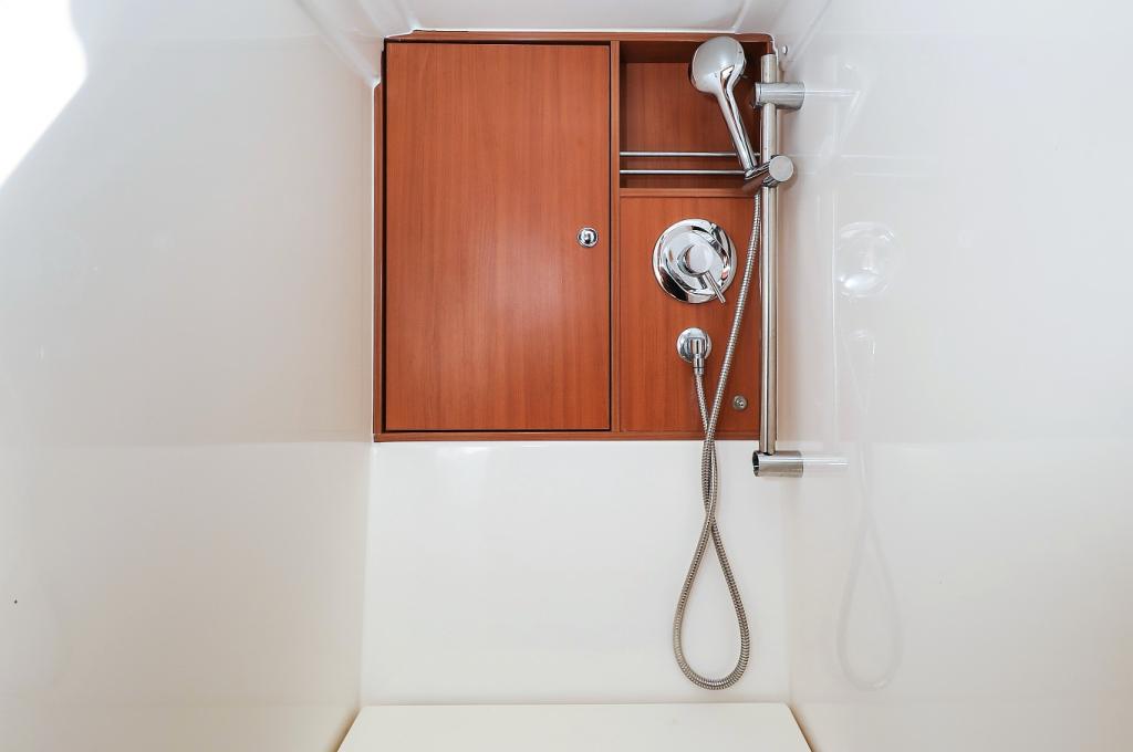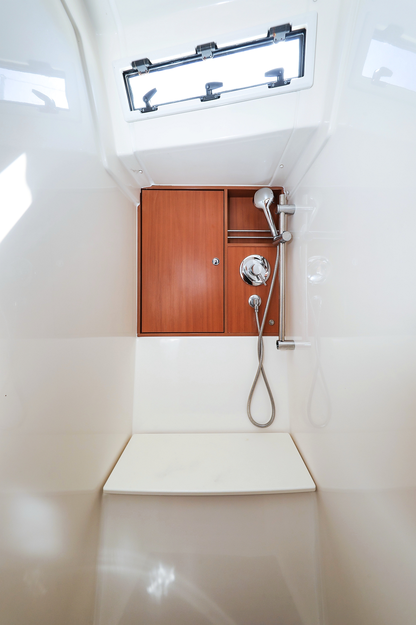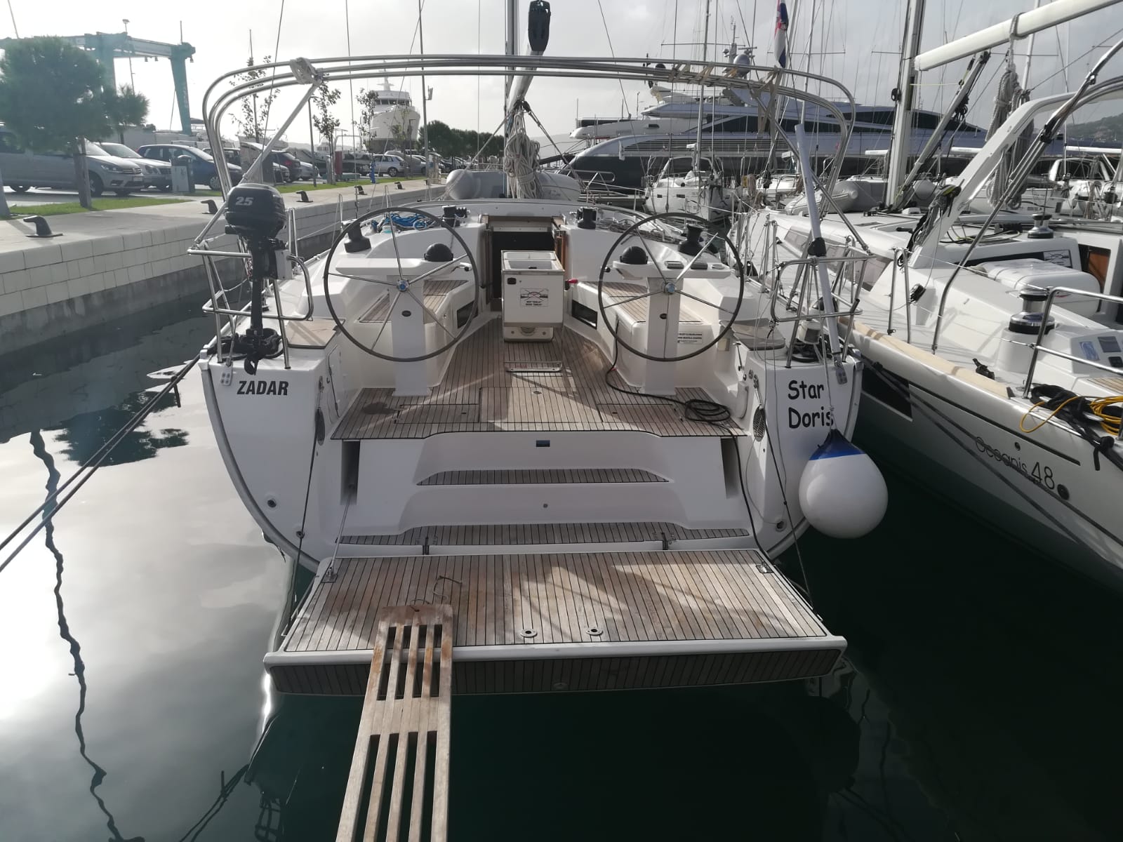 | Outside | 220 V-Landanschluss, Anker mit Kette, Badeplattform, Biminitop, Cockpitdusche, Cockpitlautsprecher, Cockpitpolster, Cockpittisch, elektr. Ankerwinsch, Fender, Gangway, Kugelfender, Solaranlage, Sprayhood, Teak im Cockpit, Winschen |