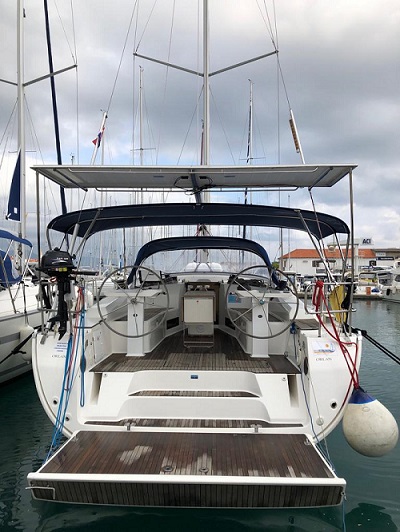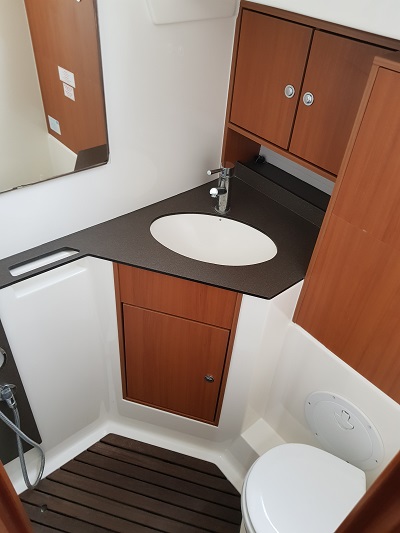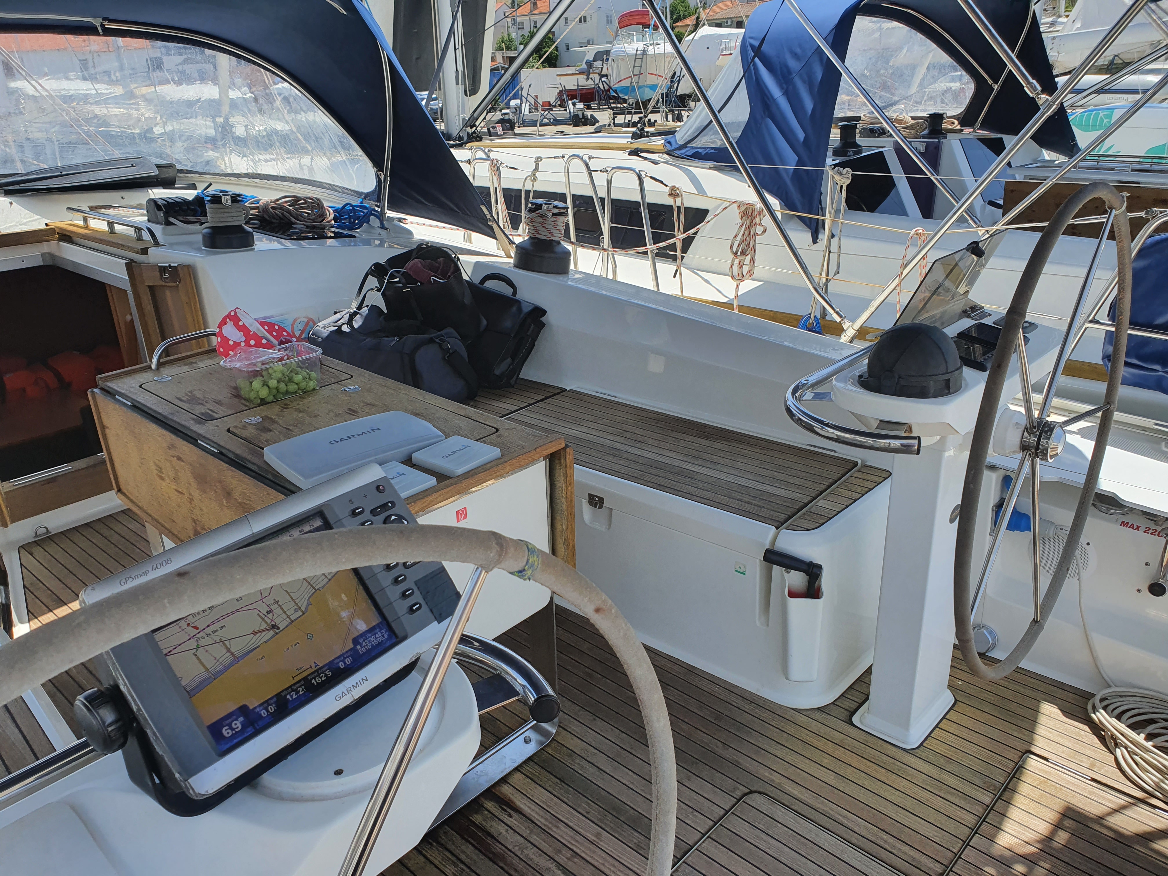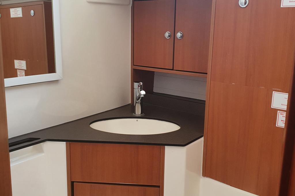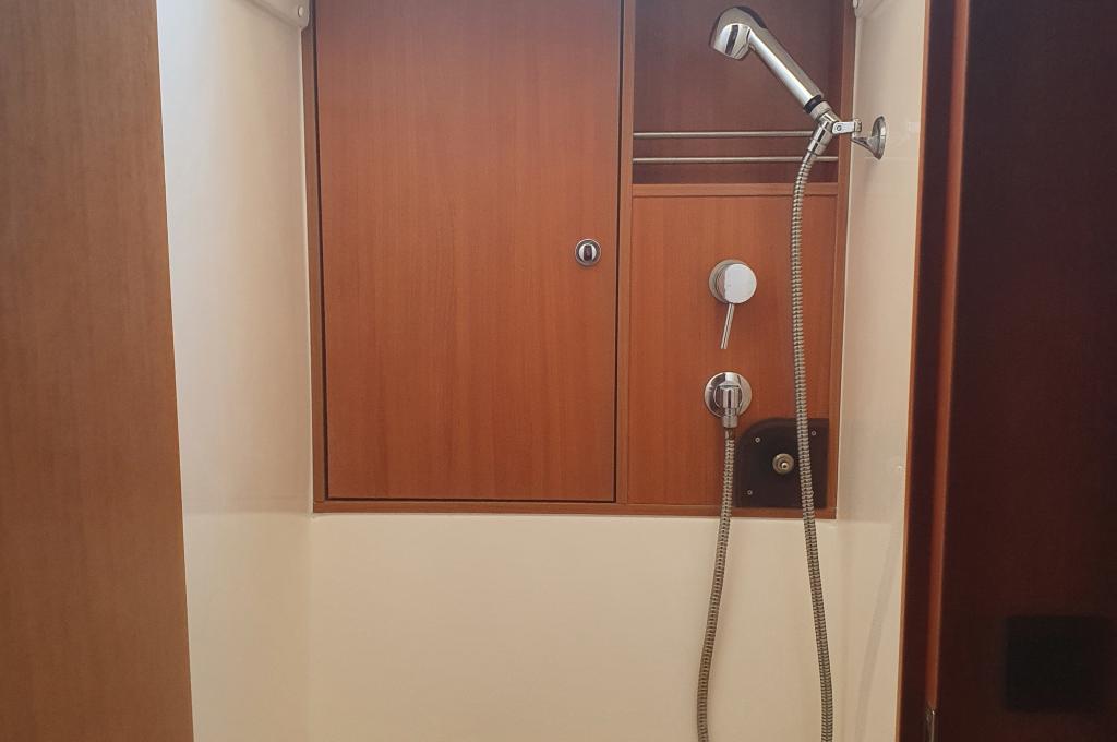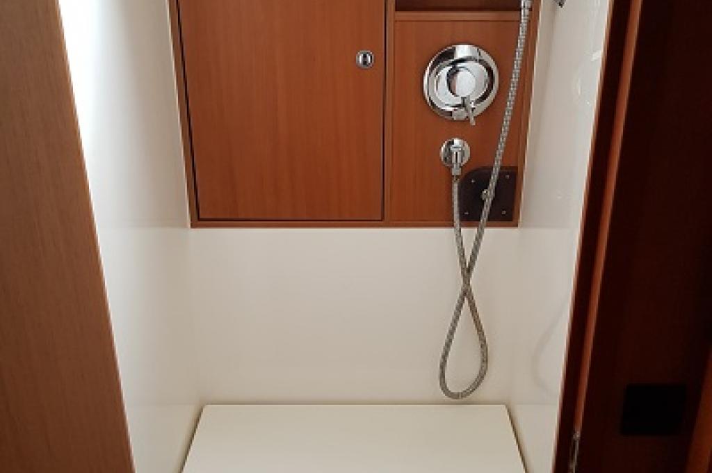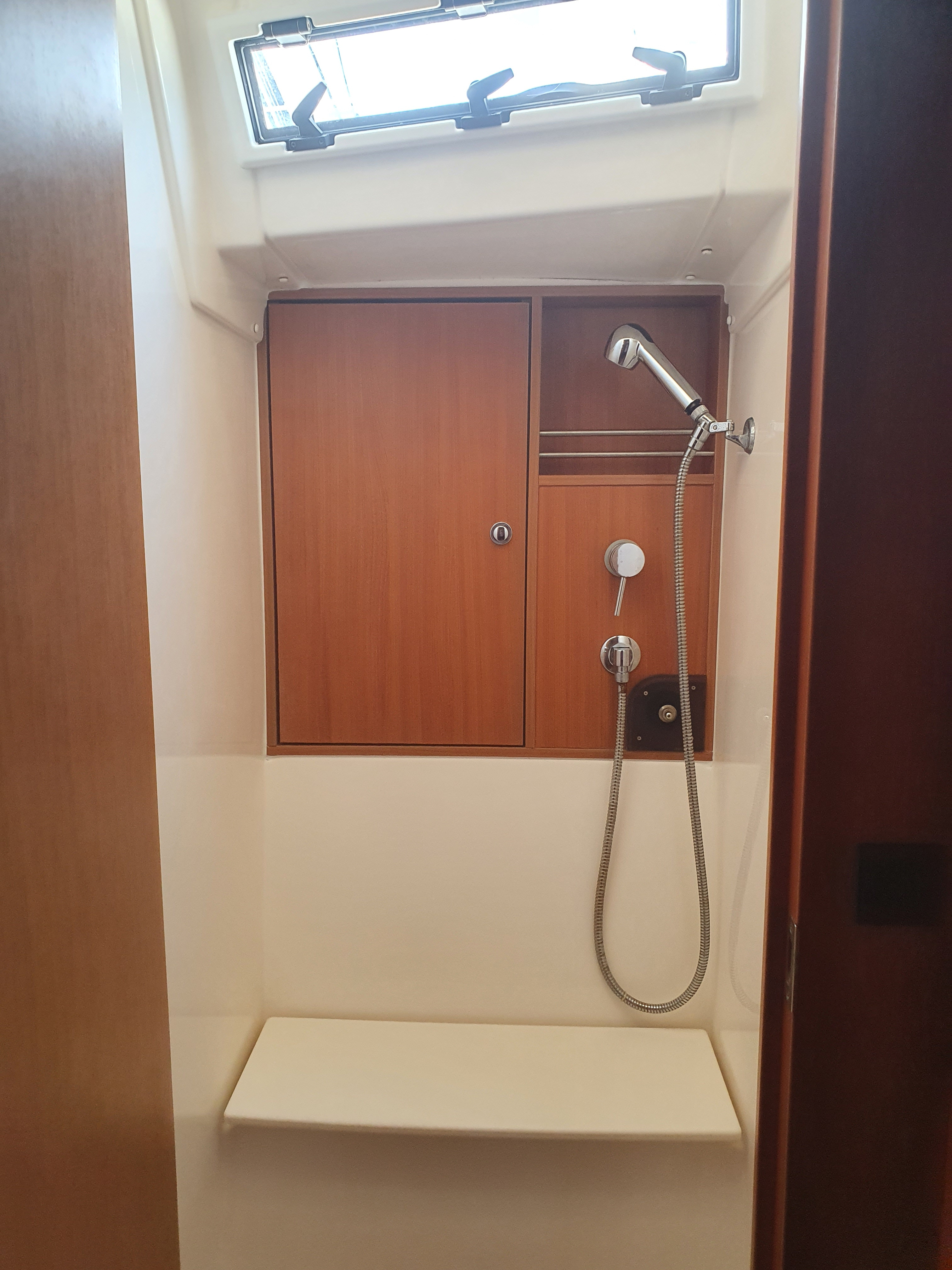 | Outside | 220 V-Landanschluss, Außendusche, Badeplattform, Biminitop, Cockpittisch, elektr. Ankerwinsch, Gangway, Solaranlage, Sprayhood, Teak im Cockpit |