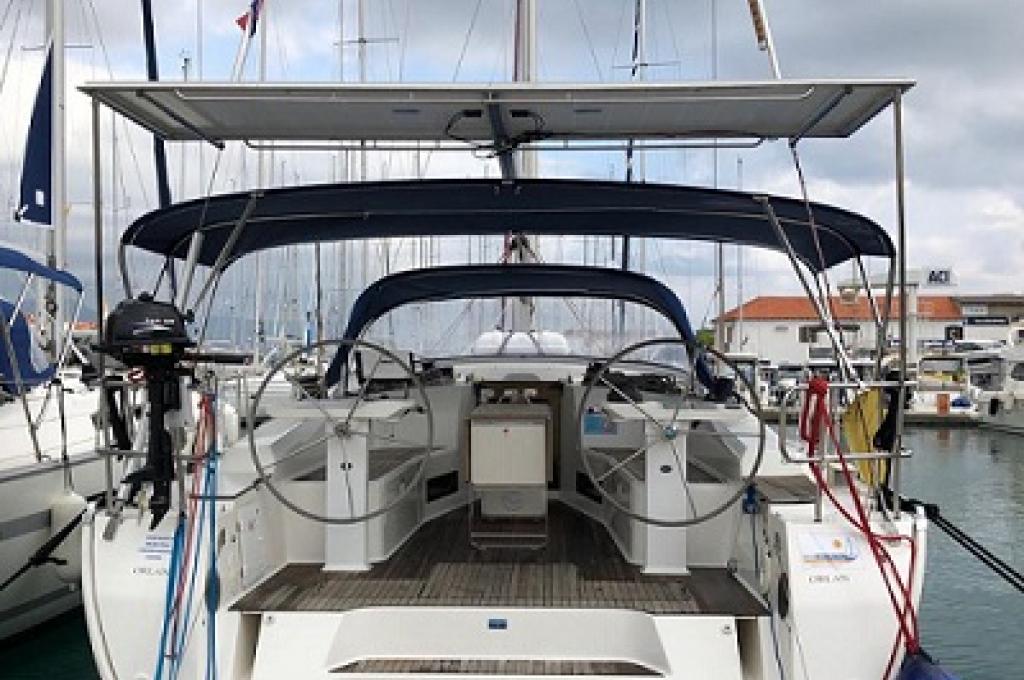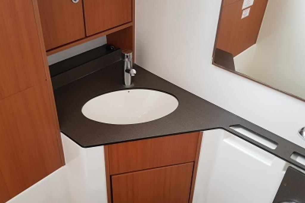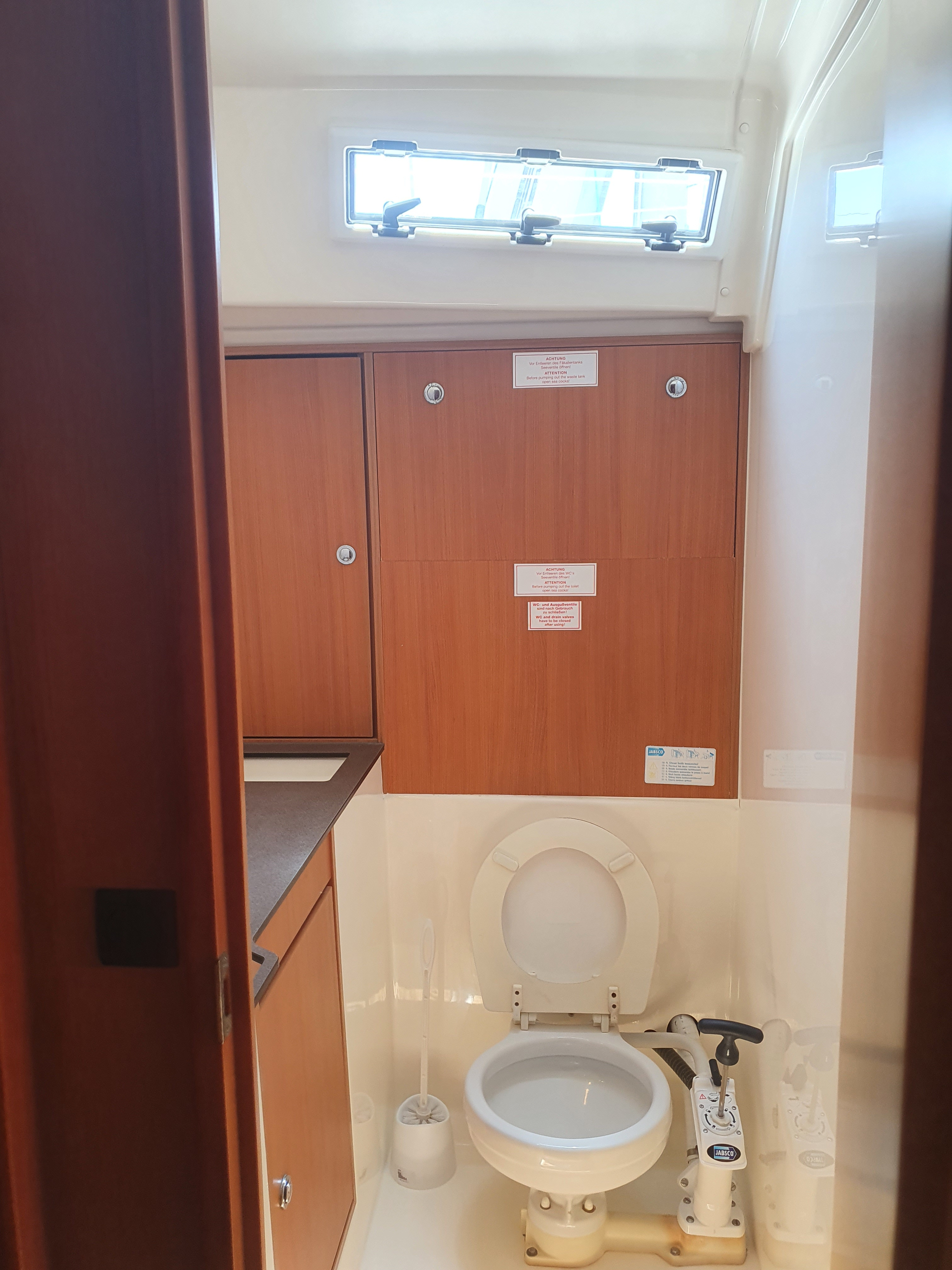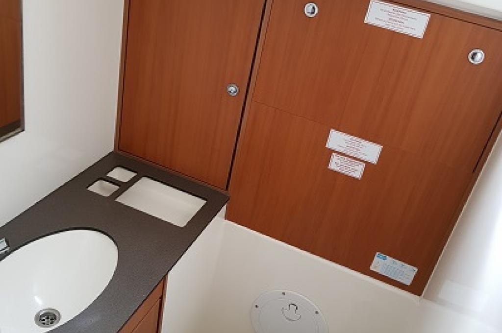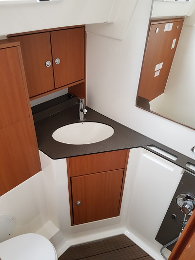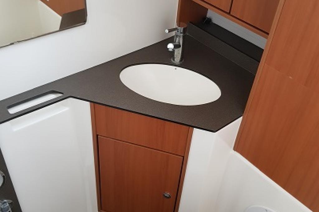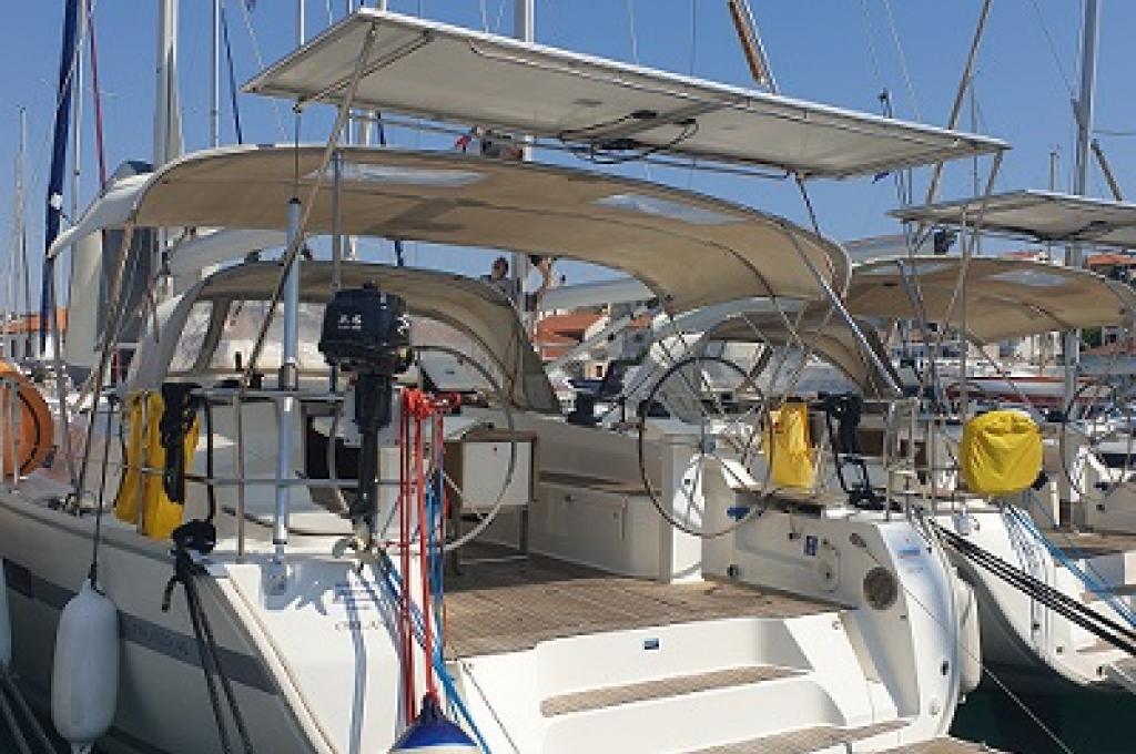 | Outside | 220 V-Landanschluss, Außendusche, Badeplattform, Biminitop, Cockpittisch, elektr. Ankerwinsch, Gangway, Solaranlage, Sprayhood, Teak im Cockpit |