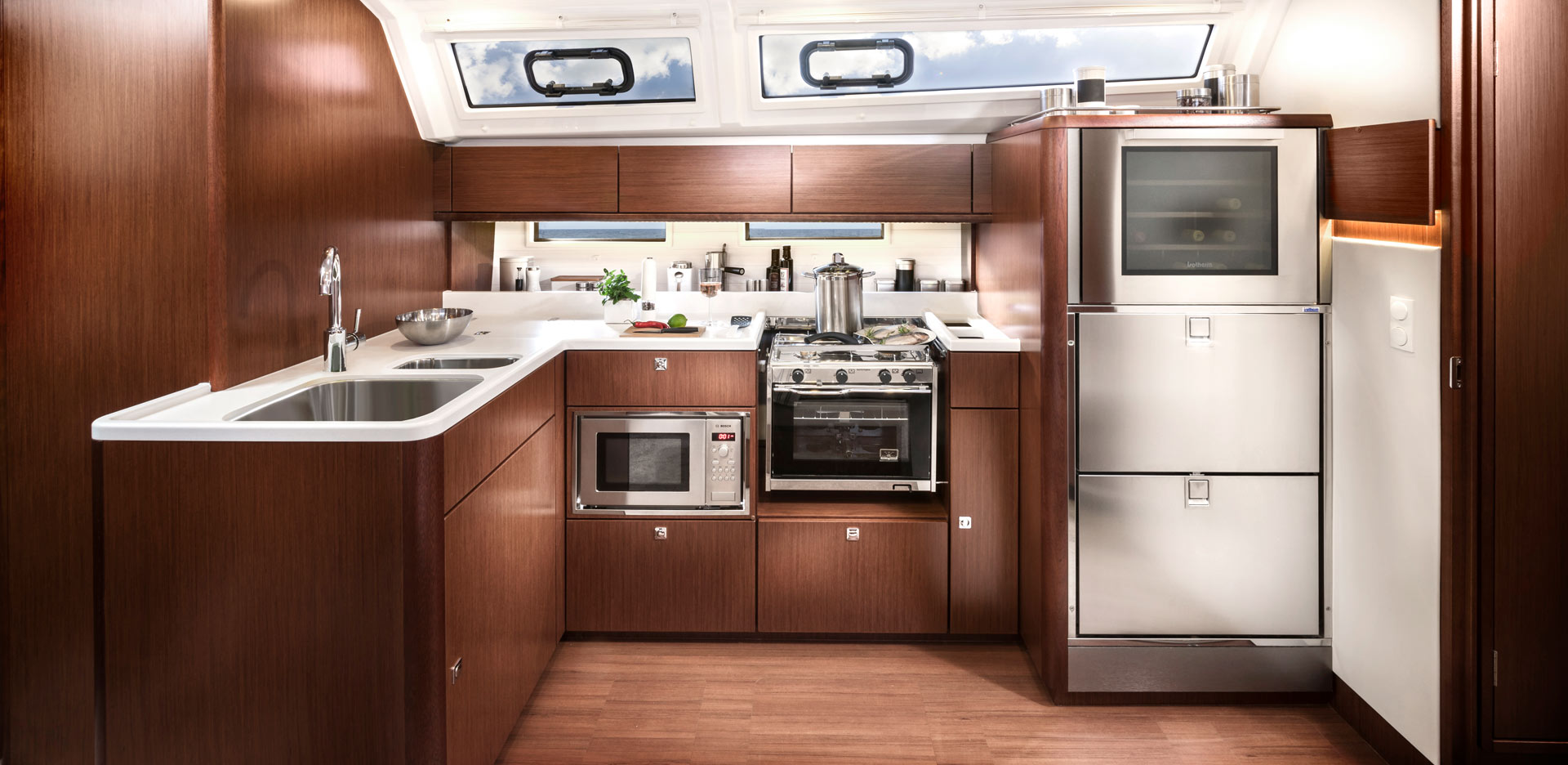 | Inside | Borduhr, Heizung, Inverter 12V/220V, Kühlschrank, Ladegerät, Luftpumpe für Beiboot, Pantryausstattung, Radio, USB Steckdosen in Salon und Kabinen, Warmwasser |