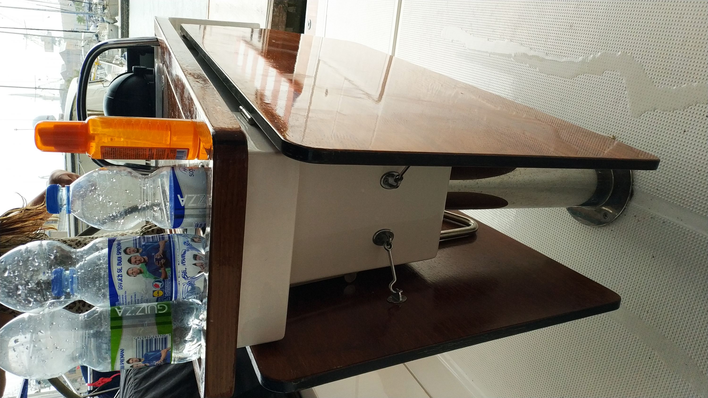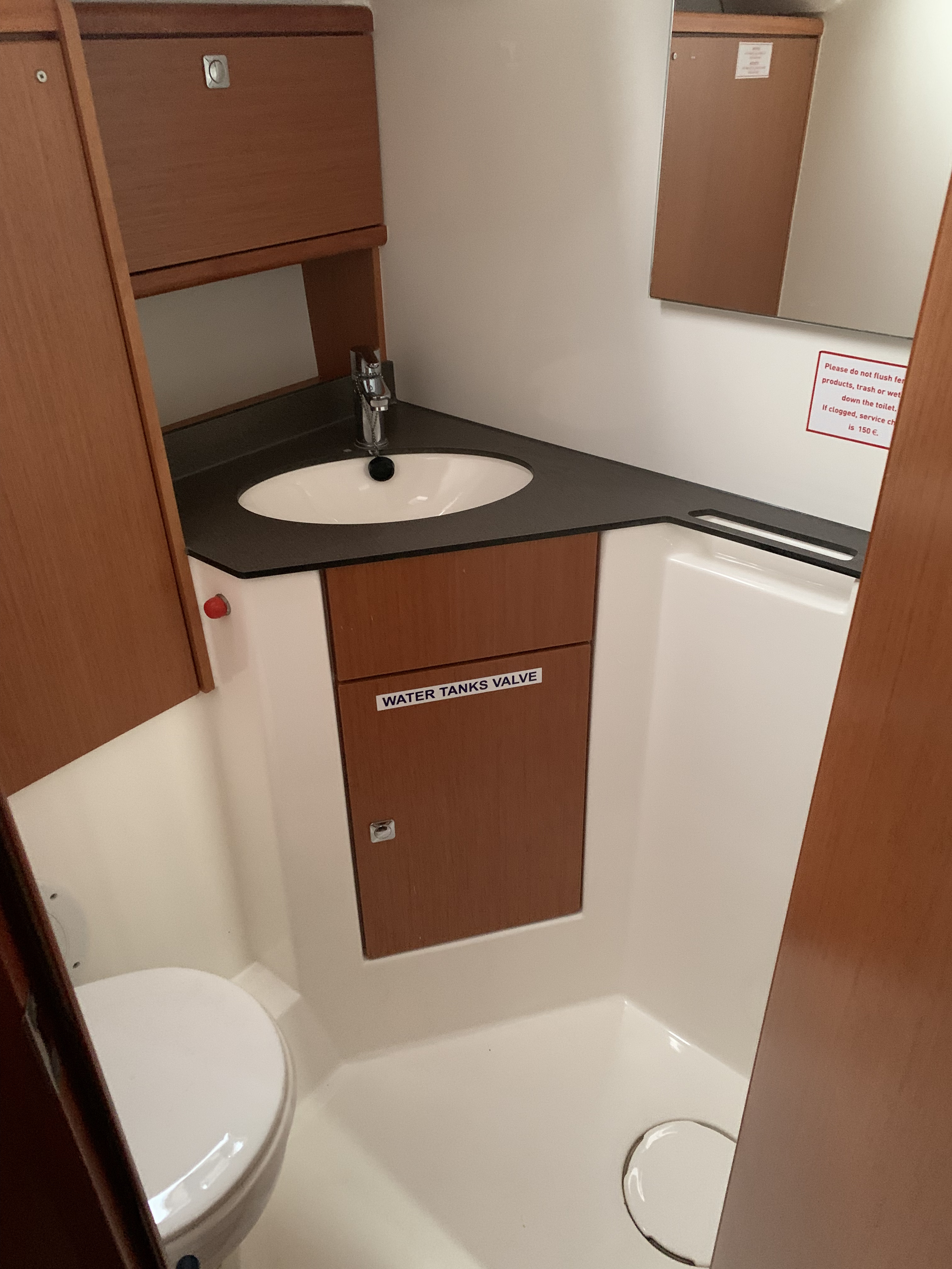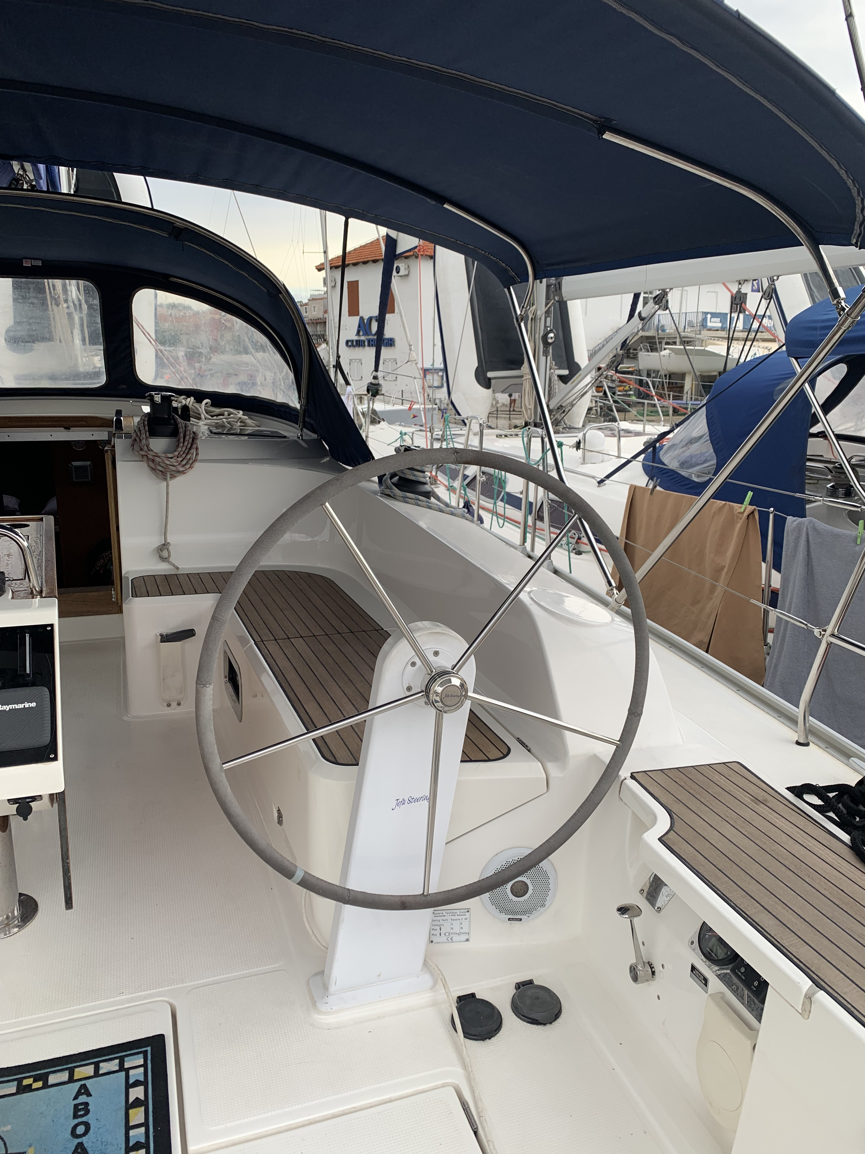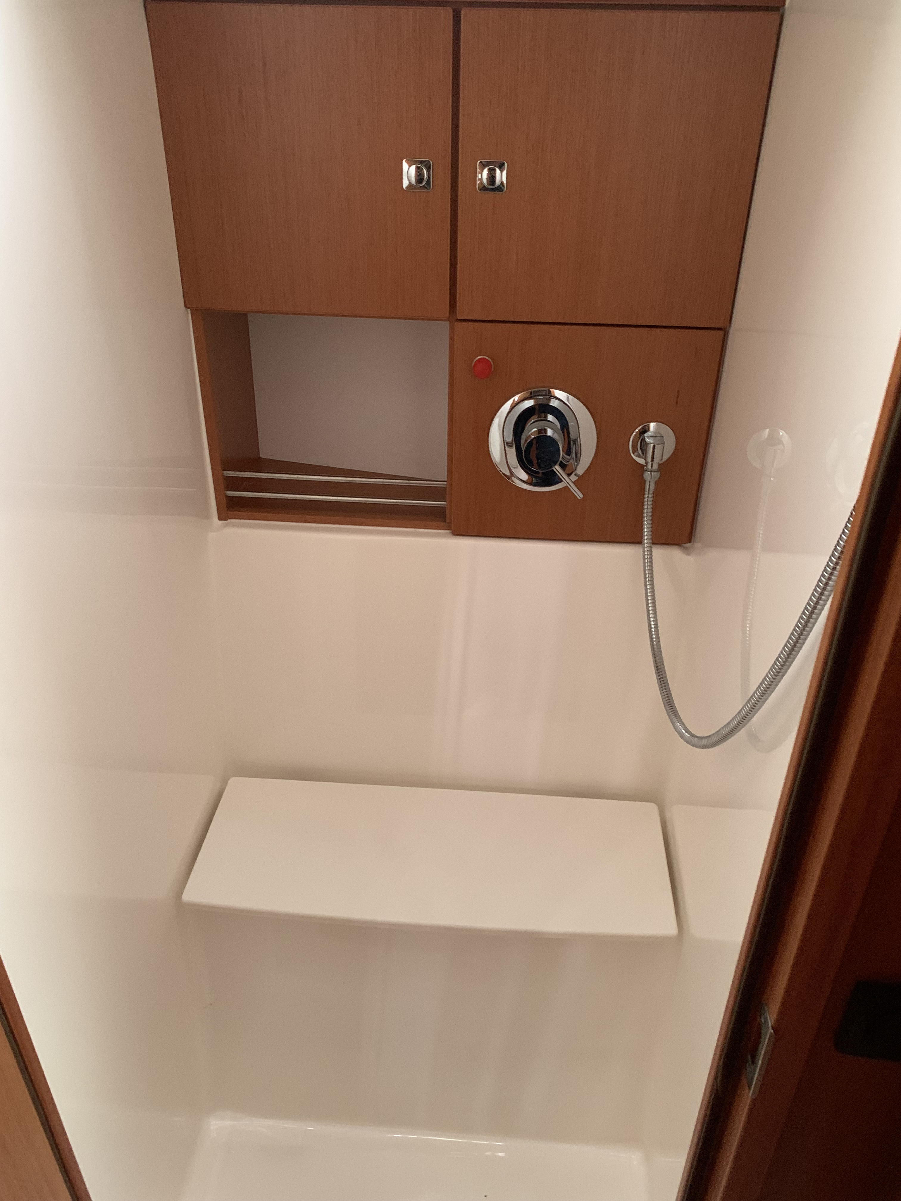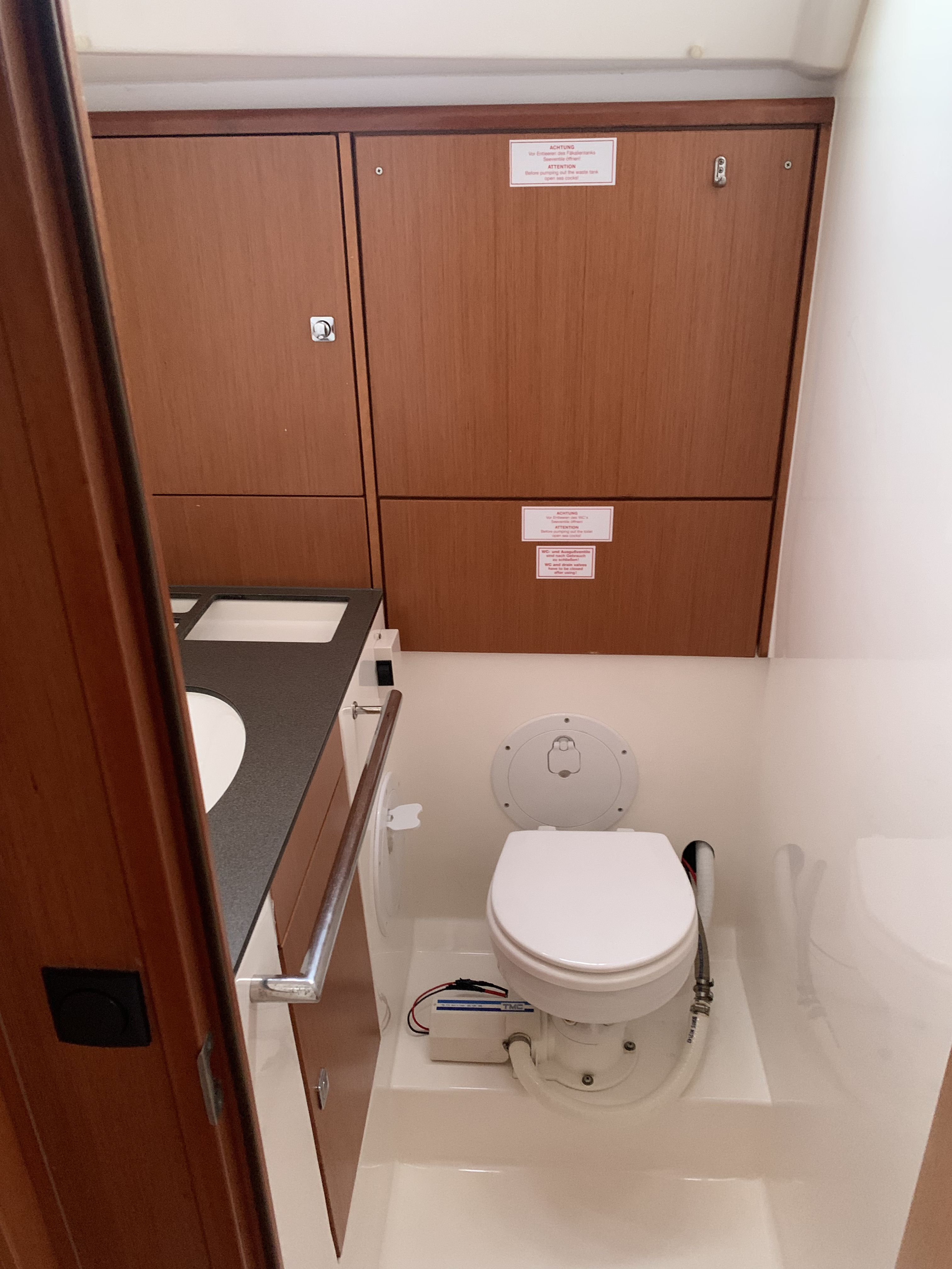 | Safety | Automatikwesten, Autopilot, Bordapotheke, Bordwerkzeug, Bugstrahlruder, elektr. Bilgepumpe, Feuerlöscher, Handbilgepumpe, Lifebelts, Nebelhorn, Notsignale, Rettungsinsel, Taschenlampe, UKW-Funk, Zweitanker |