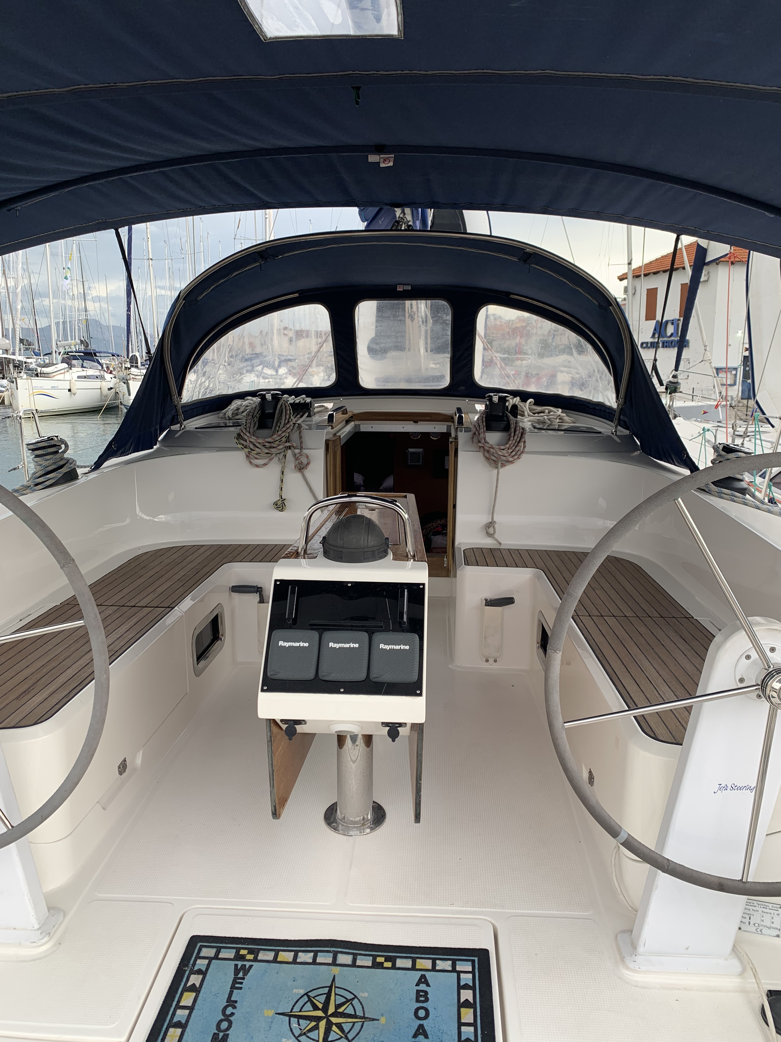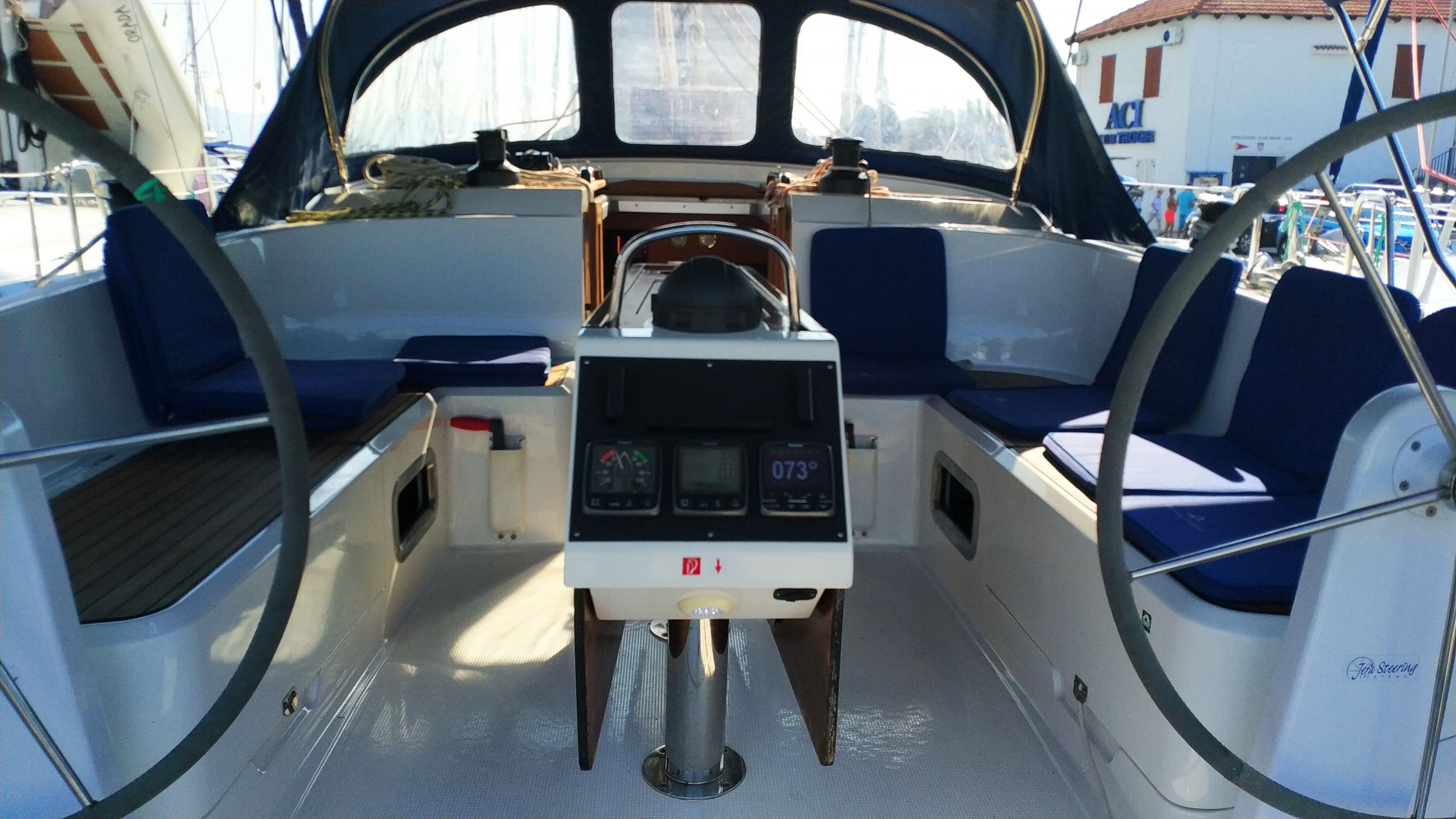 | Outside | 12 V-Anschluss, 220 V-Landanschluss, Biminitop, Bootshaken, Cockpitdusche, Cockpitlautsprecher, Cockpitpolster, Cockpittisch, Dieselkanister , elektr. Ankerwinsch, Fender, Festmacherleinen, Gangway, Kunststoff-Eimer (Pütz), Selbstholende Winschen, Solaranlage, Sprayhood, Wasserschlauch, Windex |