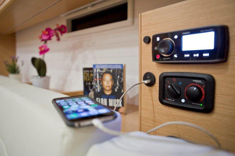 | Outside | 220 V-Landanschluss, Anker mit Kette, Badeleiter, Badeplattform, Biminitop, Bootshaken, Cockpitdusche, Cockpitlautsprecher, Cockpitleuchte, Cockpitpolster, Cockpittisch, Dieselkanister , elektr. Ankerwinsch, Fender, Sprayhood, Teak im Cockpit |