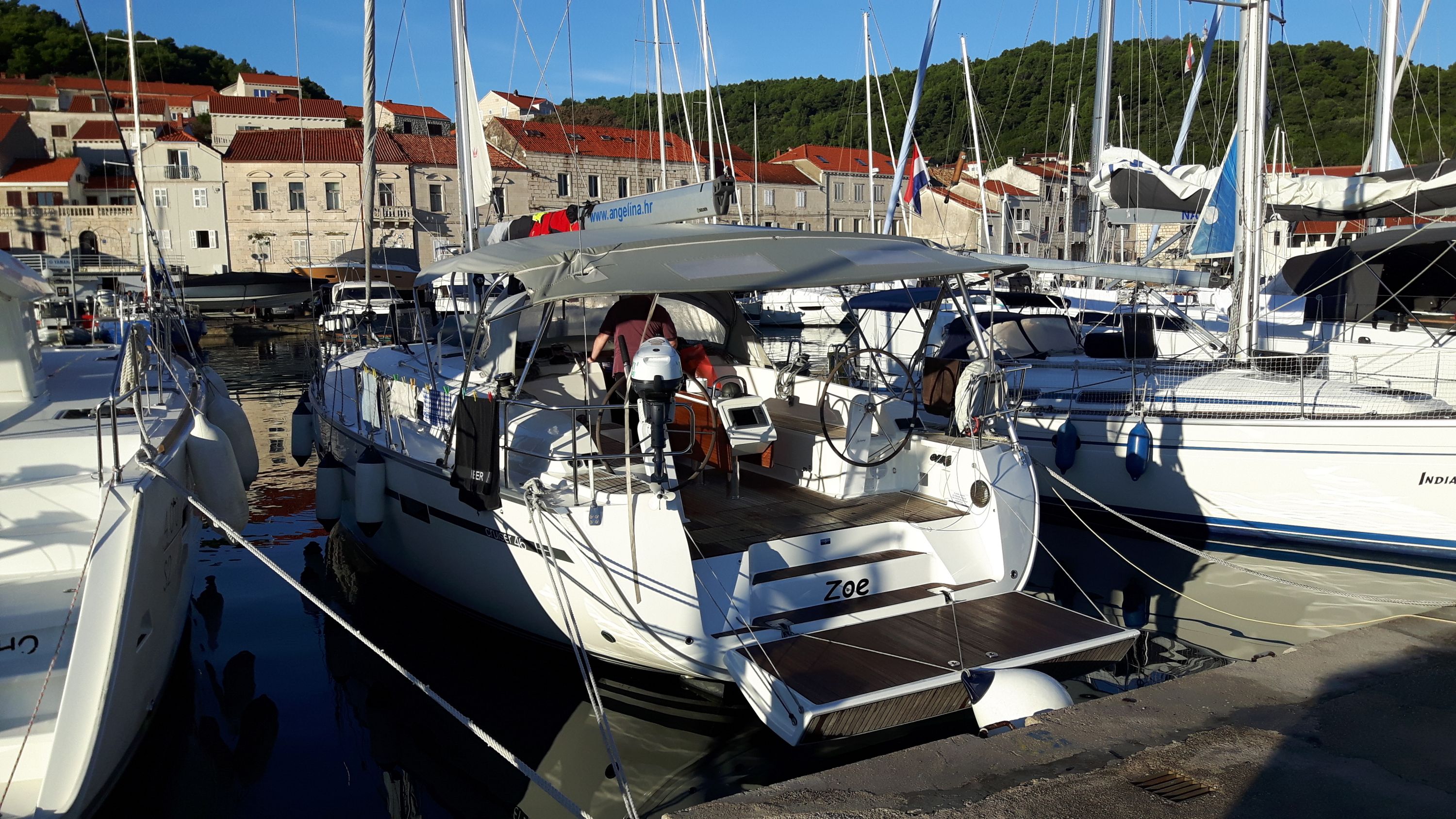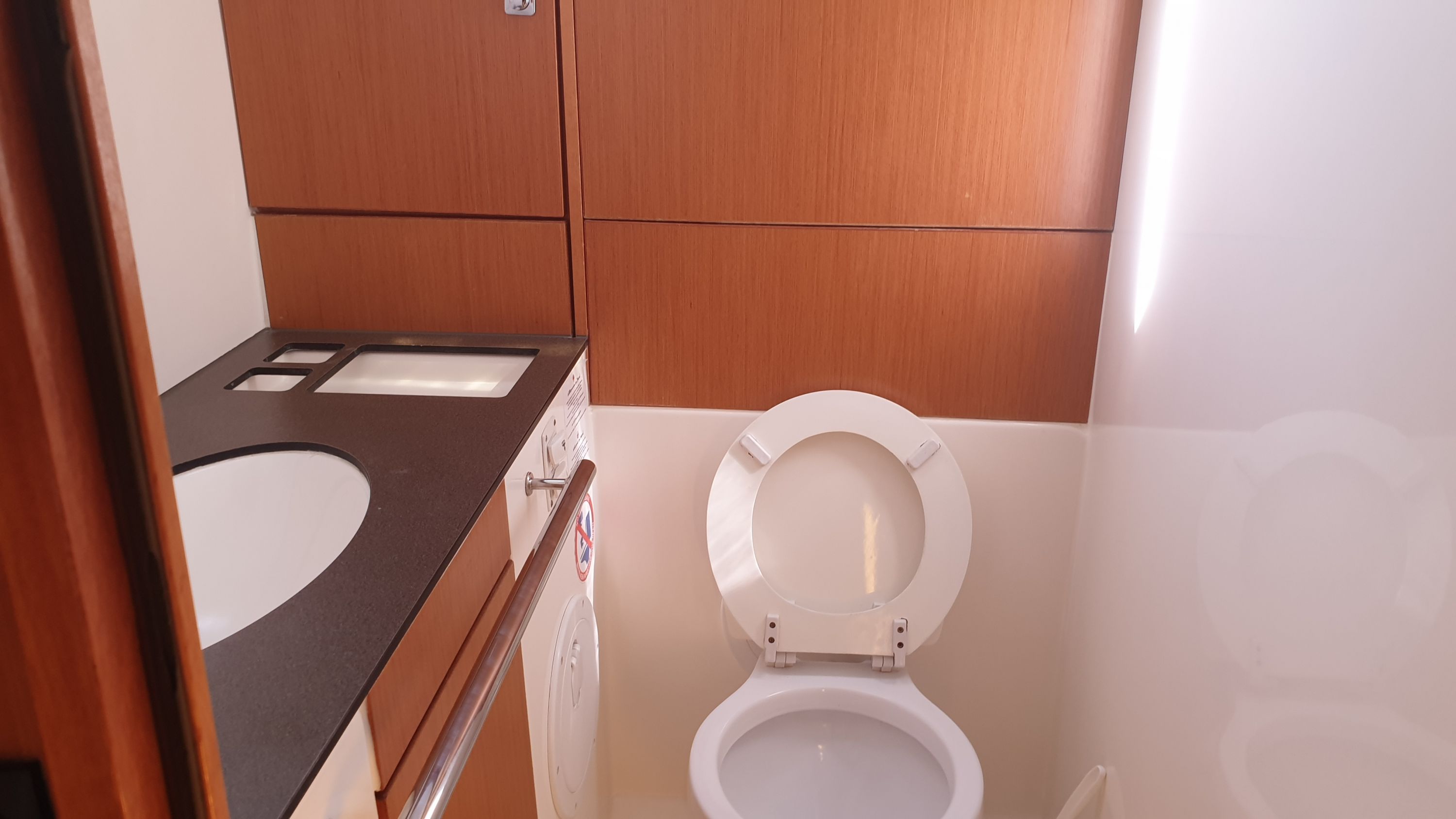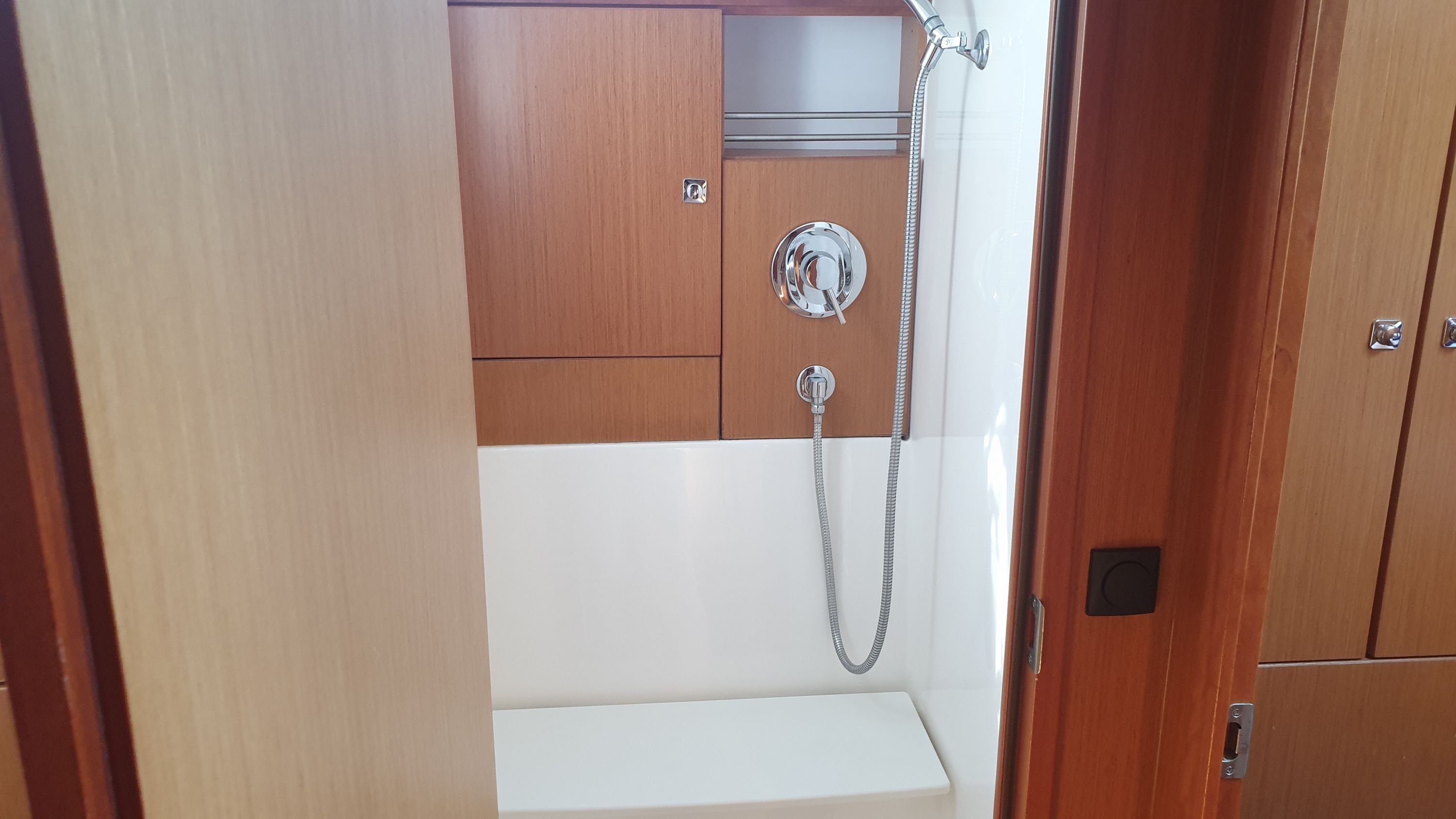 | Outside | 220 V-Landanschluss, Anker mit Kette, Badeplattform, Biminitop, Cockpitdusche, Cockpitlautsprecher, Cockpitpolster, Cockpittisch, elektr. Ankerwinsch, Fender, Gangway, Kugelfender, Sprayhood, Teak im Cockpit, Winschen |