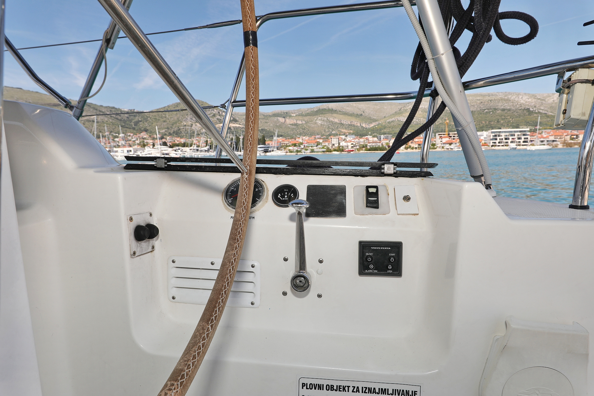 | Navigation | Fernglas, GPS mit Kartenplotter im Cockpit, Hafenhandbücher, Kompass, Seekarten, Tridata (Log, Echolot, Windm.), Windmesser |