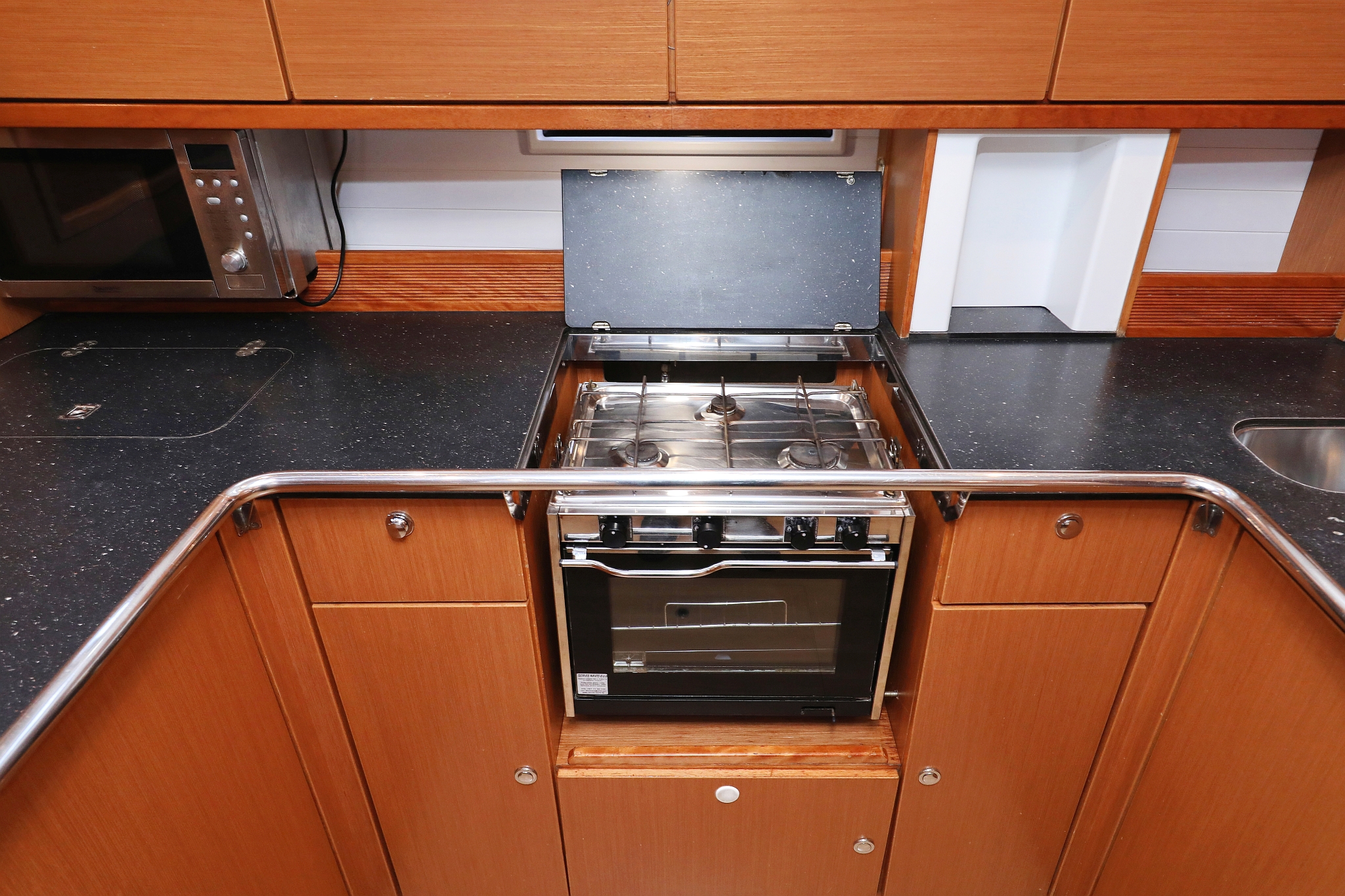 | Safety | Autopilot, Bordapotheke, Bugstrahlruder, elektr. Bilgepumpe, Feststoffschwimmwesten, Handbilgepumpe, Lifebelts, Notsignale, Radarreflektor, Rettungsinsel, Taschenlampe, UKW-Funk, Zweitanker |