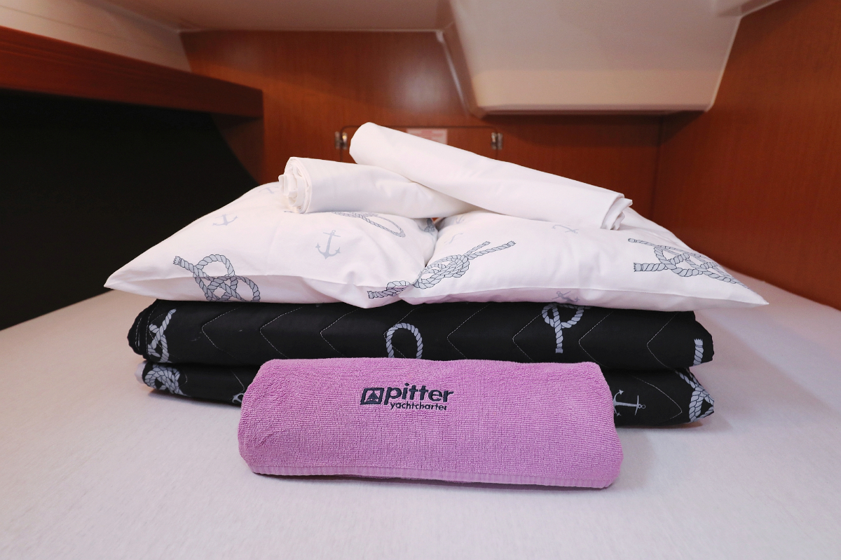 AIS Empfänger, Autopilot, Blitzboje, Bootsmannstuhl, Bordapotheke, Bordwerkzeug, Bugstrahlruder, Feststoffschwimmwesten, Feuerlöscher, Lifebelts, Motor-Ersatzteile, Nebelhorn, Notsignale, Radarreflektor, Reparaturset für Beiboot, Rettungsinsel, Suchscheinwerfer, Taschenlampe, UKW-Funk, Zweitanker |