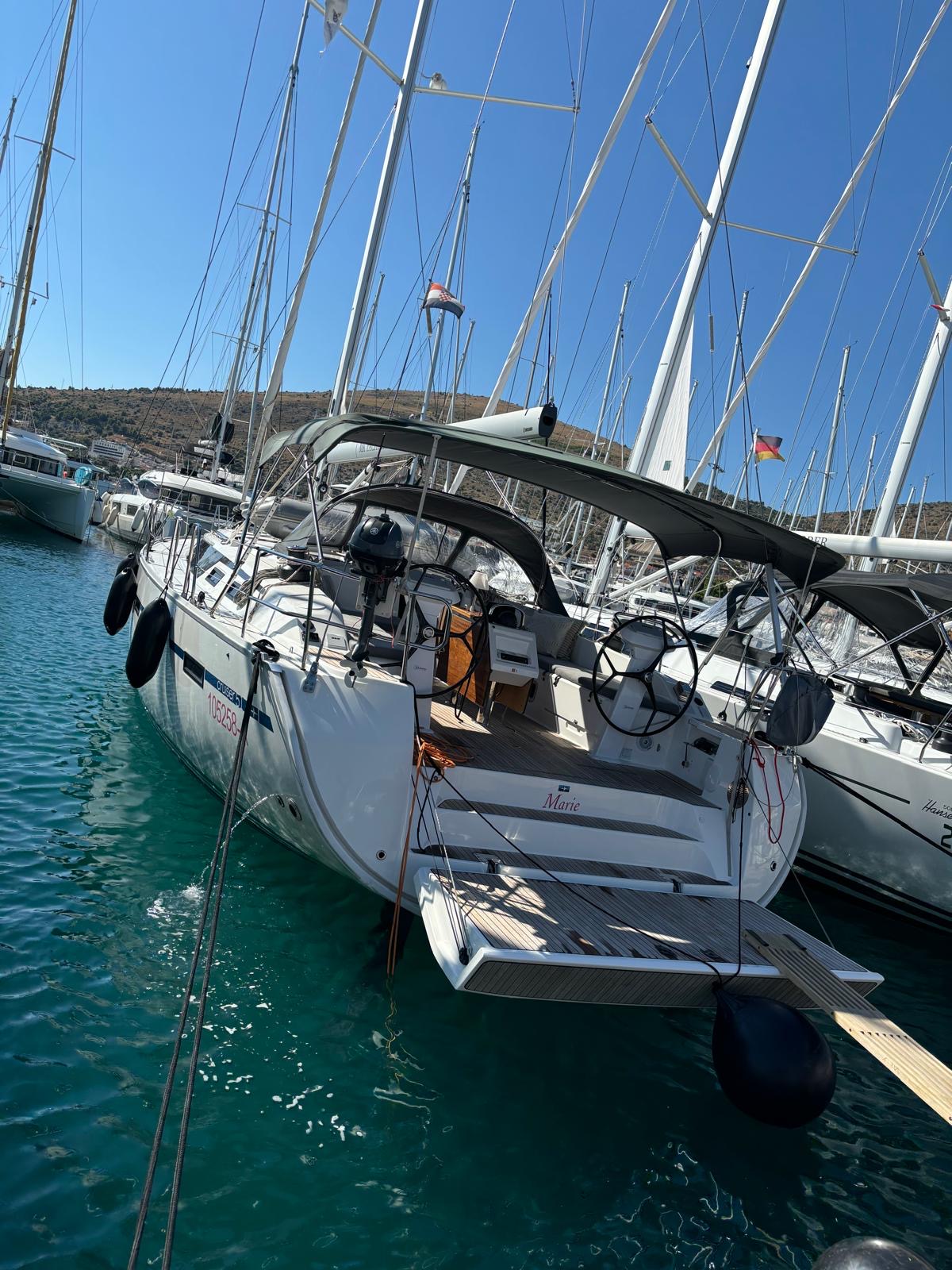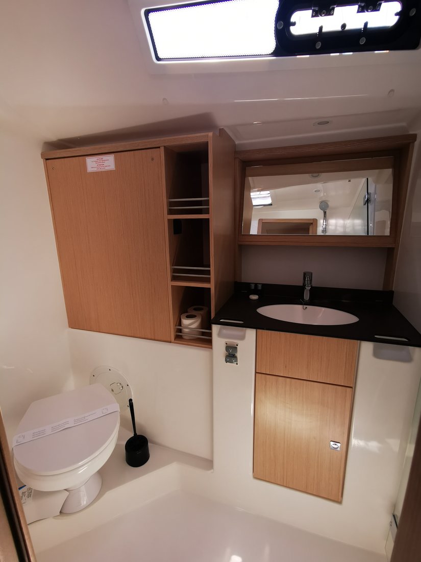 | Outside | 220 V-Landanschluss, Anker mit Kette, Biminitop, Cockpitdusche, Cockpitlautsprecher, Cockpitpolster, Cockpittisch, elektr. Ankerwinsch, Fender, Festmacherleinen, Gangway, Sprayhood, Windex |