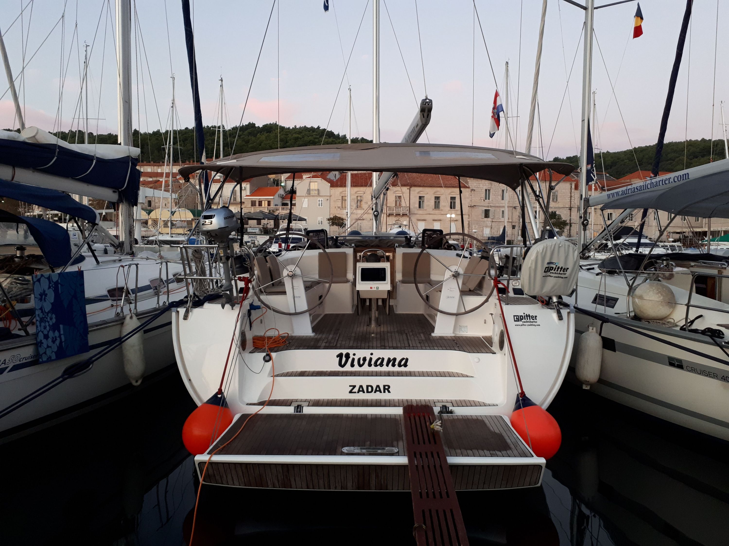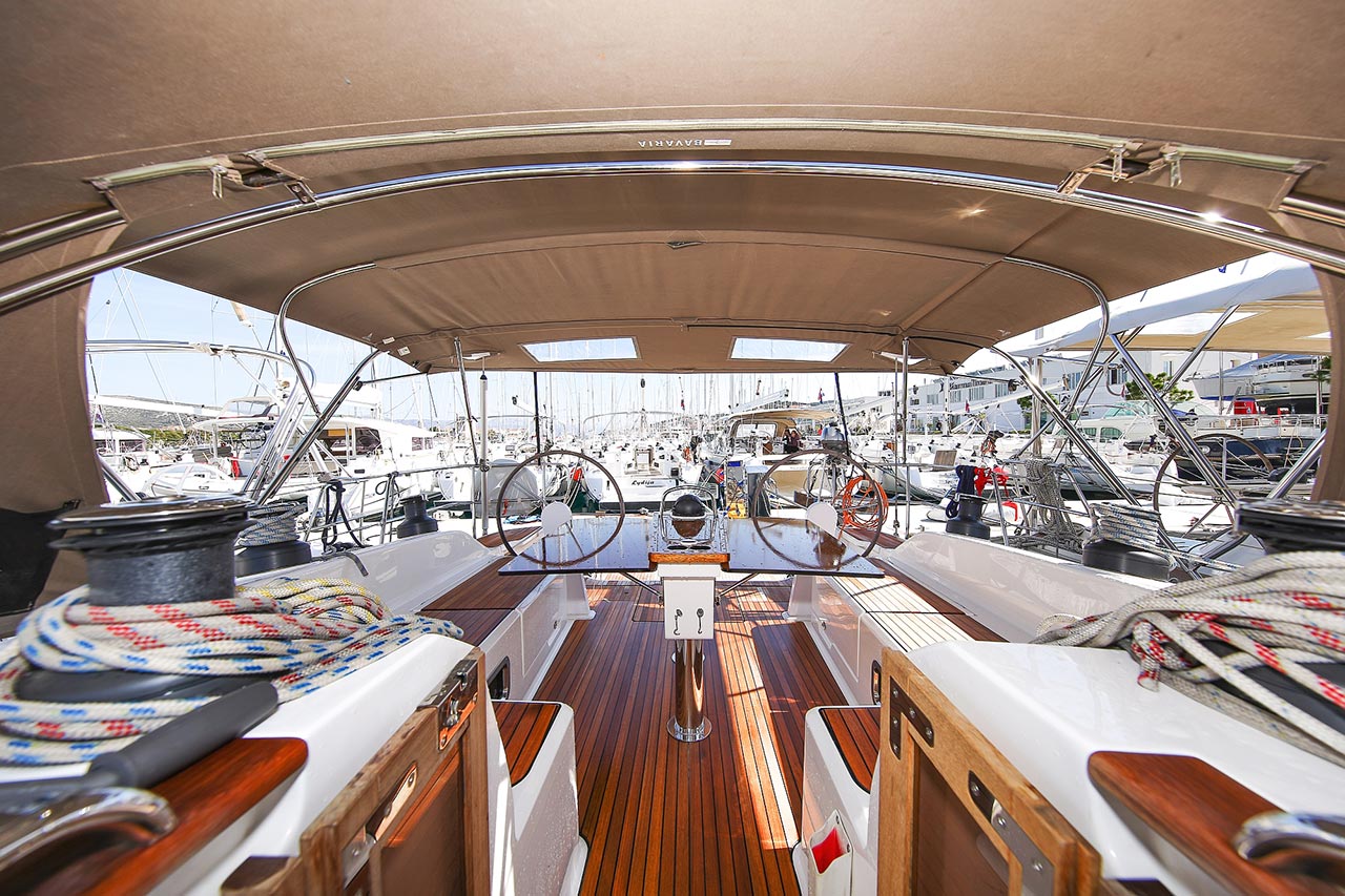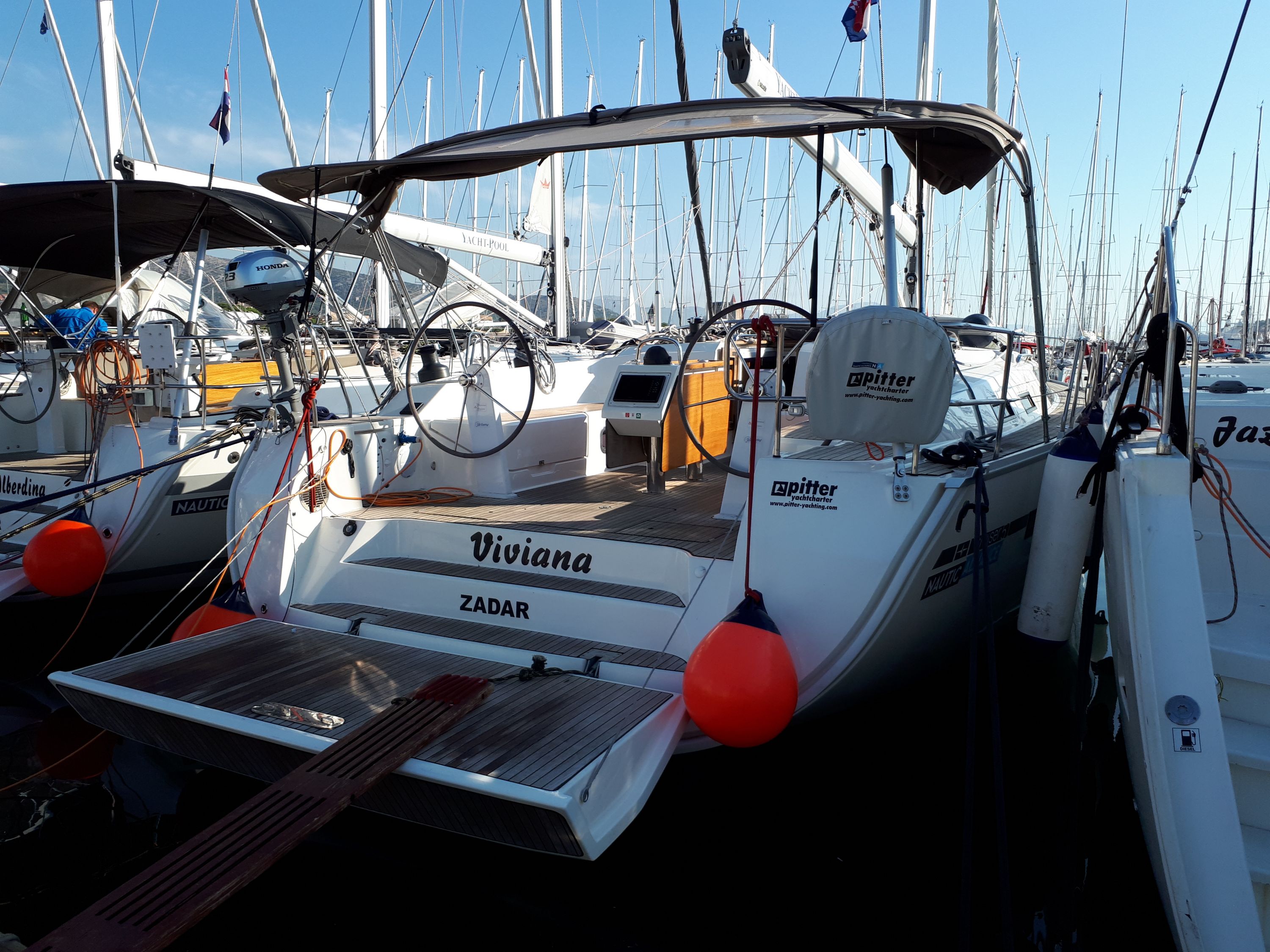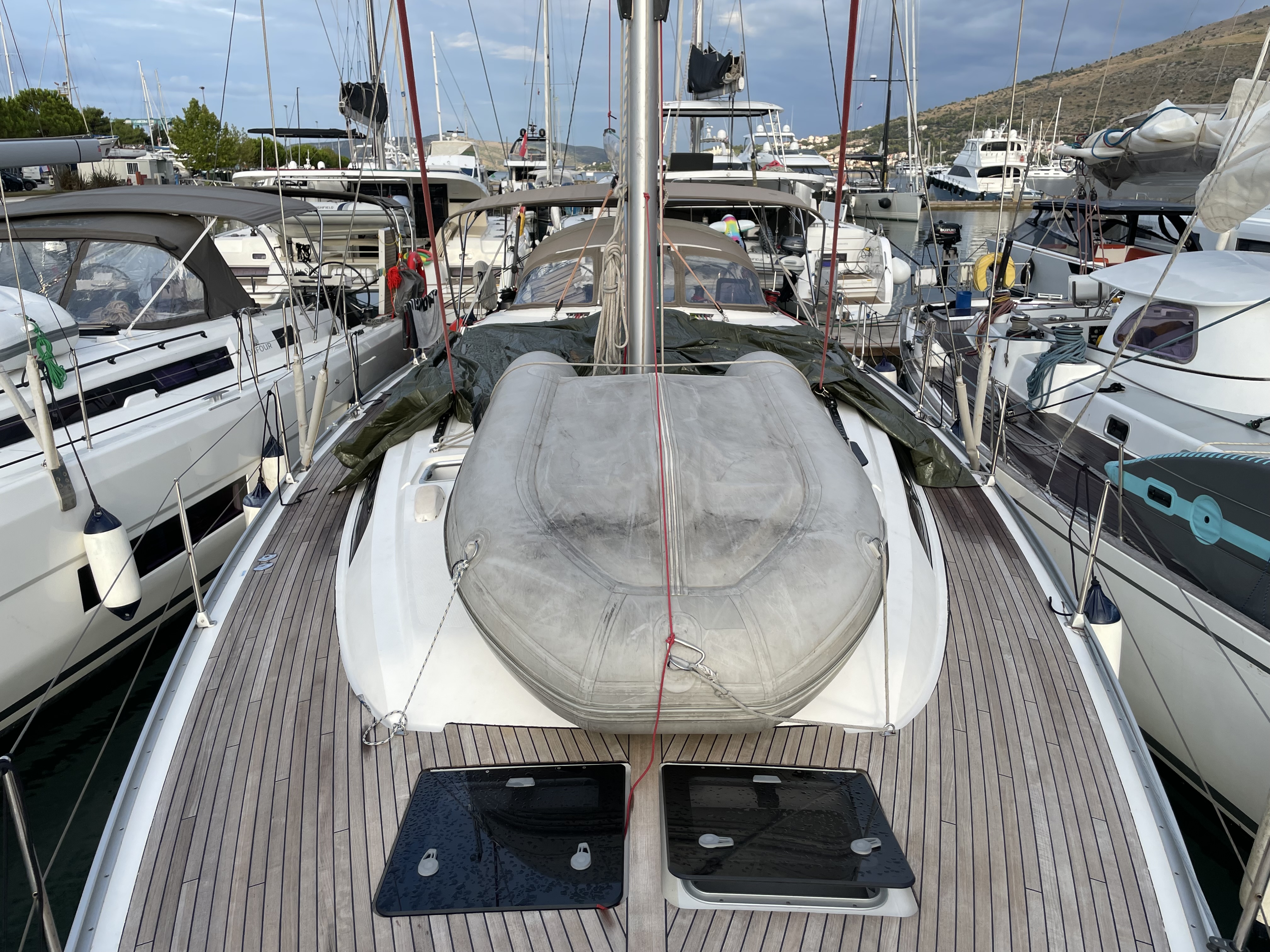 | Outside | 220 V-Landanschluss, Anker mit Kette, Badeplattform, Biminitop, Bootshaken, Cockpitdusche, Cockpitlautsprecher, Cockpitpolster, Cockpittisch, Dieselkanister , elektr. Ankerwinsch, Fender, Festmacherleinen, Gangway, Kugelfender, Kunststoff-Eimer (Pütz), Sprayhood, Teak im Cockpit, Teakdeck, Wantenschneider, Wasserkanister , Wasserschlauch, Windex |