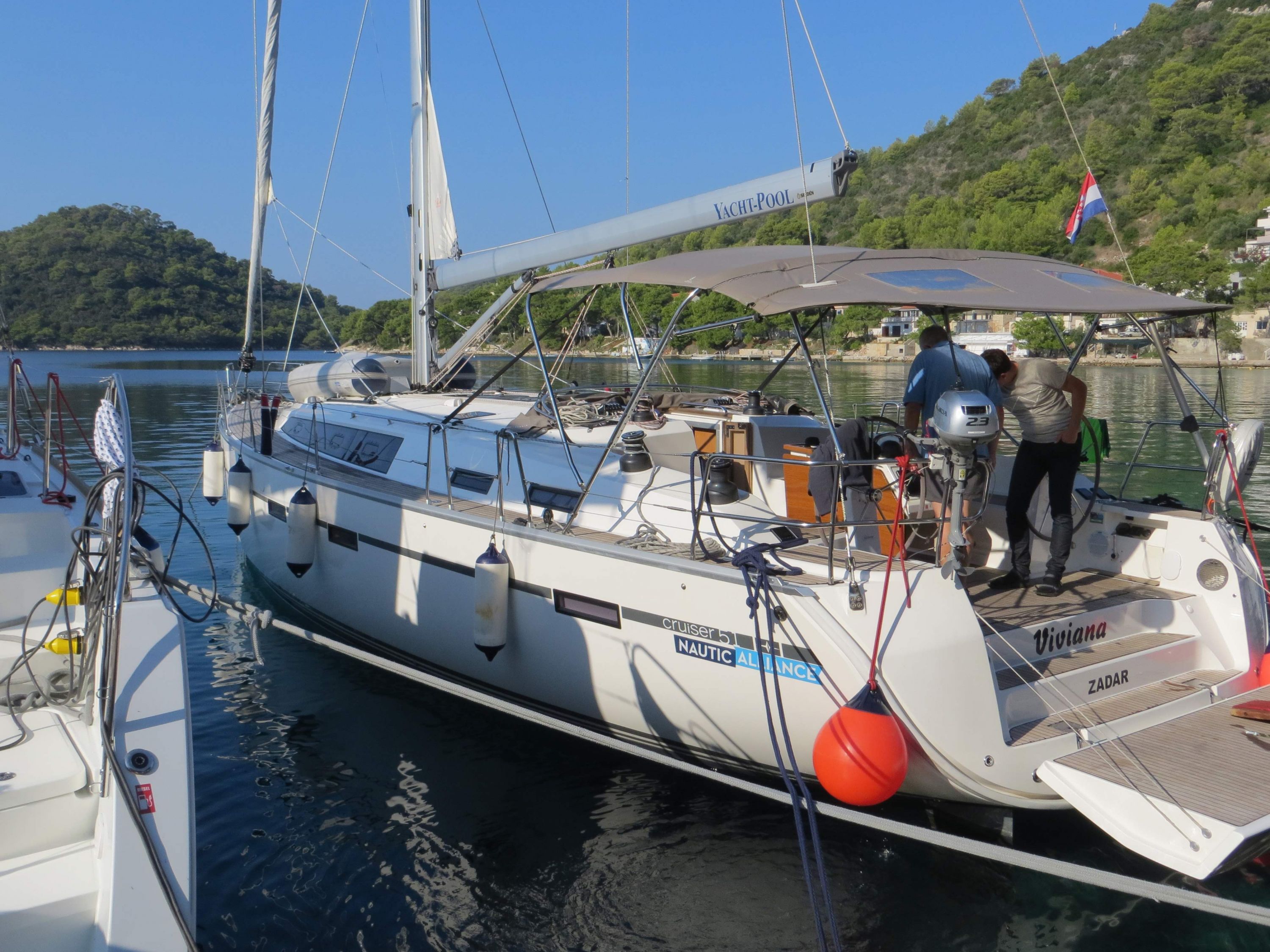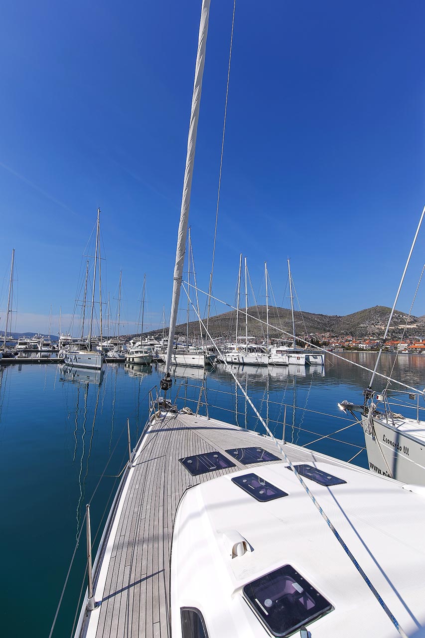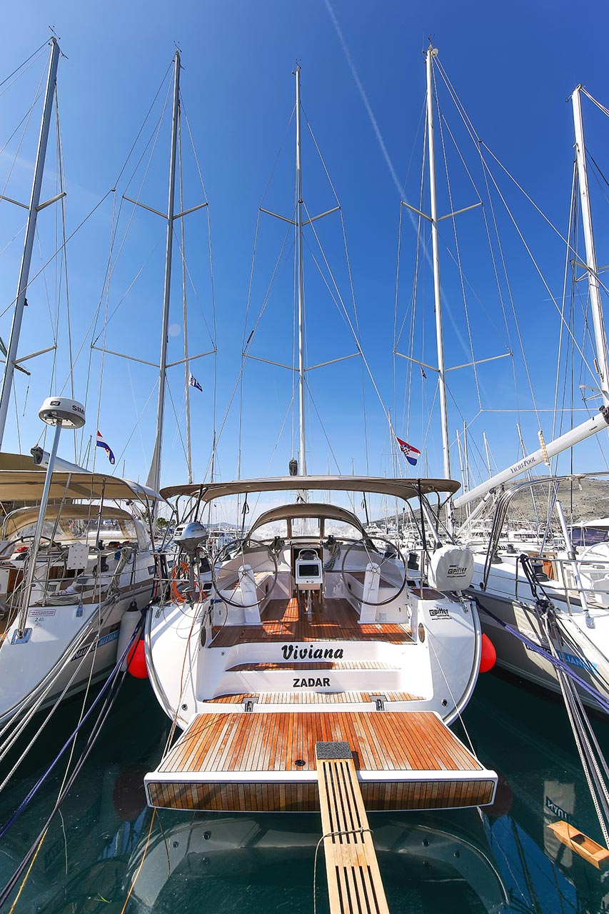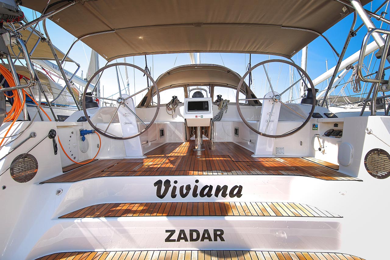 | Outside | 220 V-Landanschluss, Anker mit Kette, Badeplattform, Biminitop, Bootshaken, Cockpitdusche, Cockpitlautsprecher, Cockpitpolster, Cockpittisch, Dieselkanister , elektr. Ankerwinsch, Fender, Festmacherleinen, Gangway, Kugelfender, Kunststoff-Eimer (Pütz), Sprayhood, Teak im Cockpit, Teakdeck, Wantenschneider, Wasserkanister , Wasserschlauch, Windex |