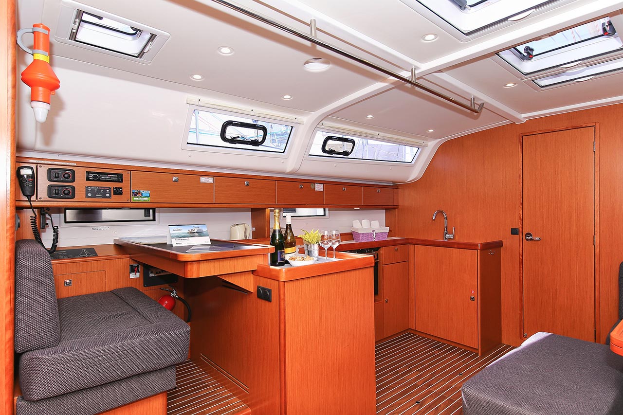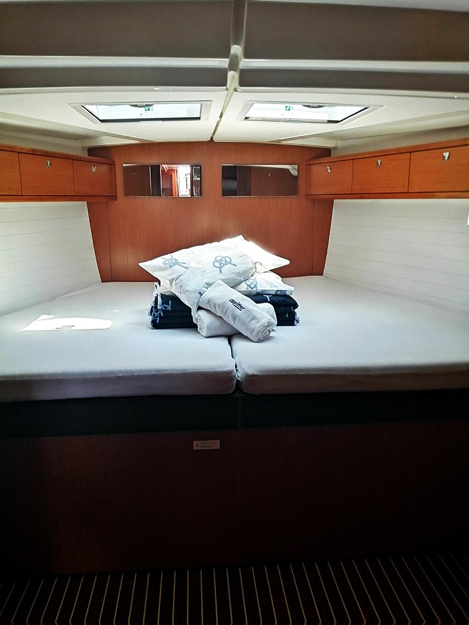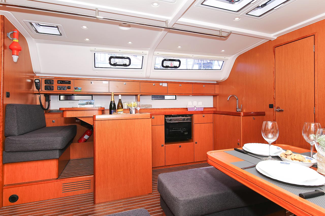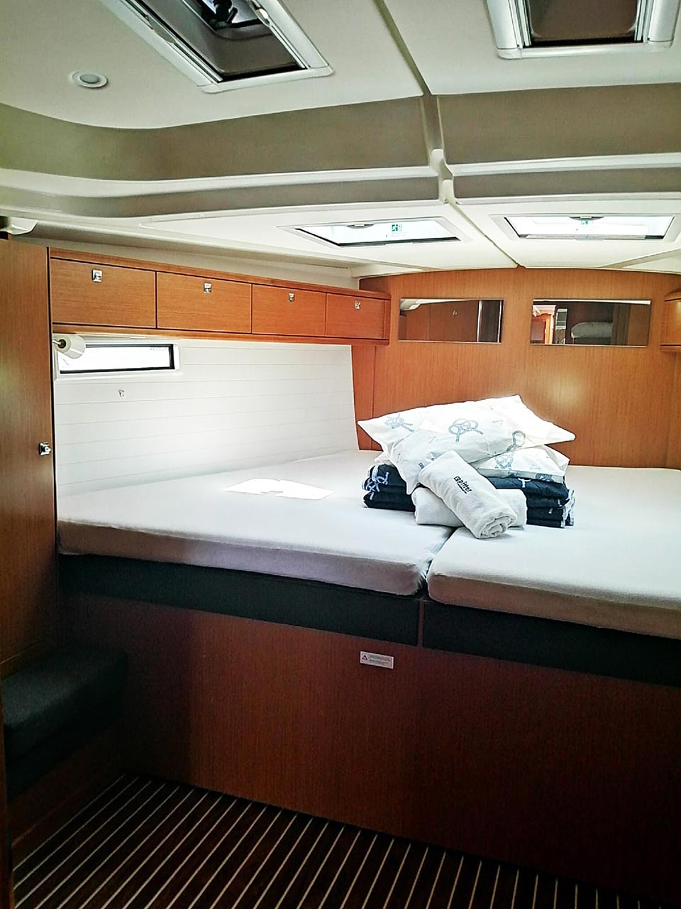 | Inside | 2. Kühlschrank, Borduhr, Dusche, Eisbox, Generator, Heizung, Inverter 12V/220V, Kühlschrank, Ladegerät, Luftpumpe für Beiboot, Pantryausstattung, Radio mit CD, AUX und USB, USB Steckdose, Warmwasser, WC (elektr.) |