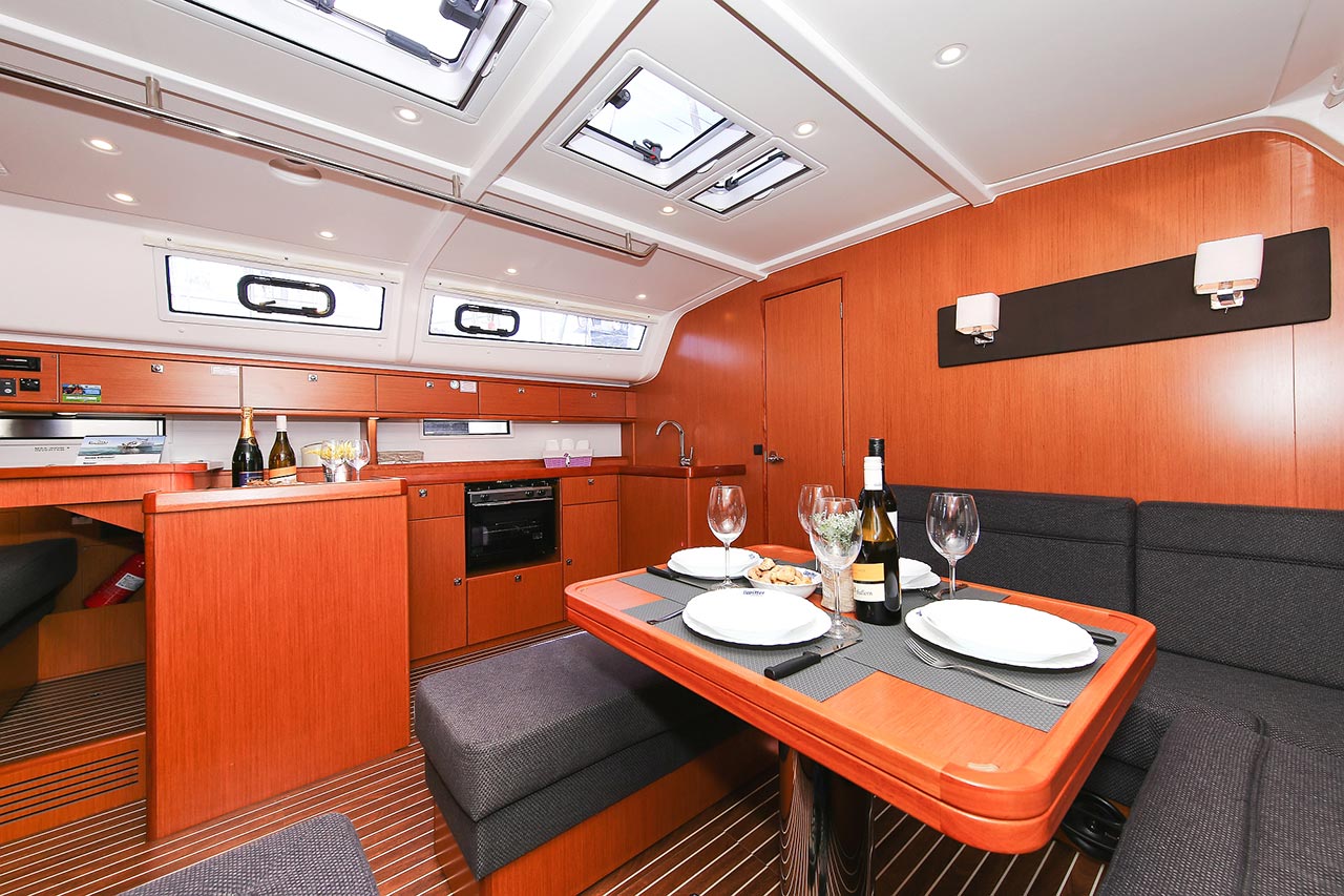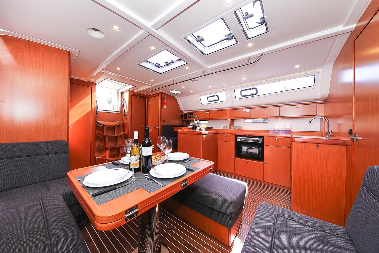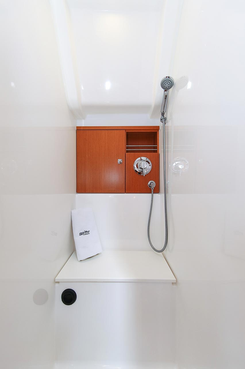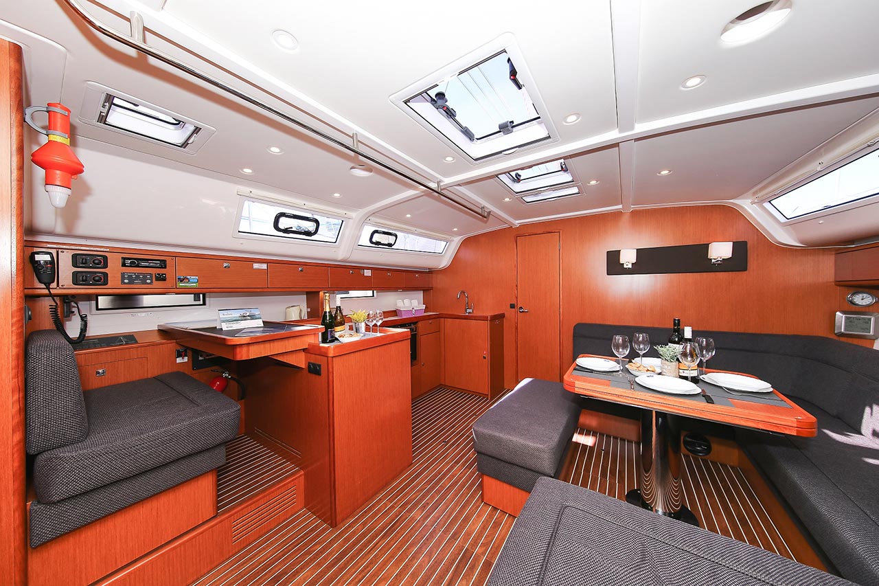 | Inside | 2. Kühlschrank, Borduhr, Dusche, Eisbox, Generator, Heizung, Inverter 12V/220V, Kühlschrank, Ladegerät, Luftpumpe für Beiboot, Pantryausstattung, Radio mit CD, AUX und USB, USB Steckdose, Warmwasser, WC (elektr.) |
