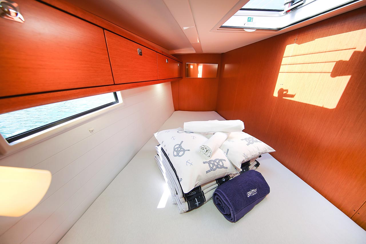 | Safety | Automatikwesten, Autopilot, Blitzboje, Bootsmannstuhl, Bordapotheke, Bordwerkzeug, Bugstrahlruder, Feuerlöscher, Lifebelts, Motor-Ersatzteile, Nebelhorn, Notsignale, Radarreflektor, Reparaturset für Beiboot, Rettungsinsel, Suchscheinwerfer, Taschenlampe, UKW-Funk, Zweitanker |
