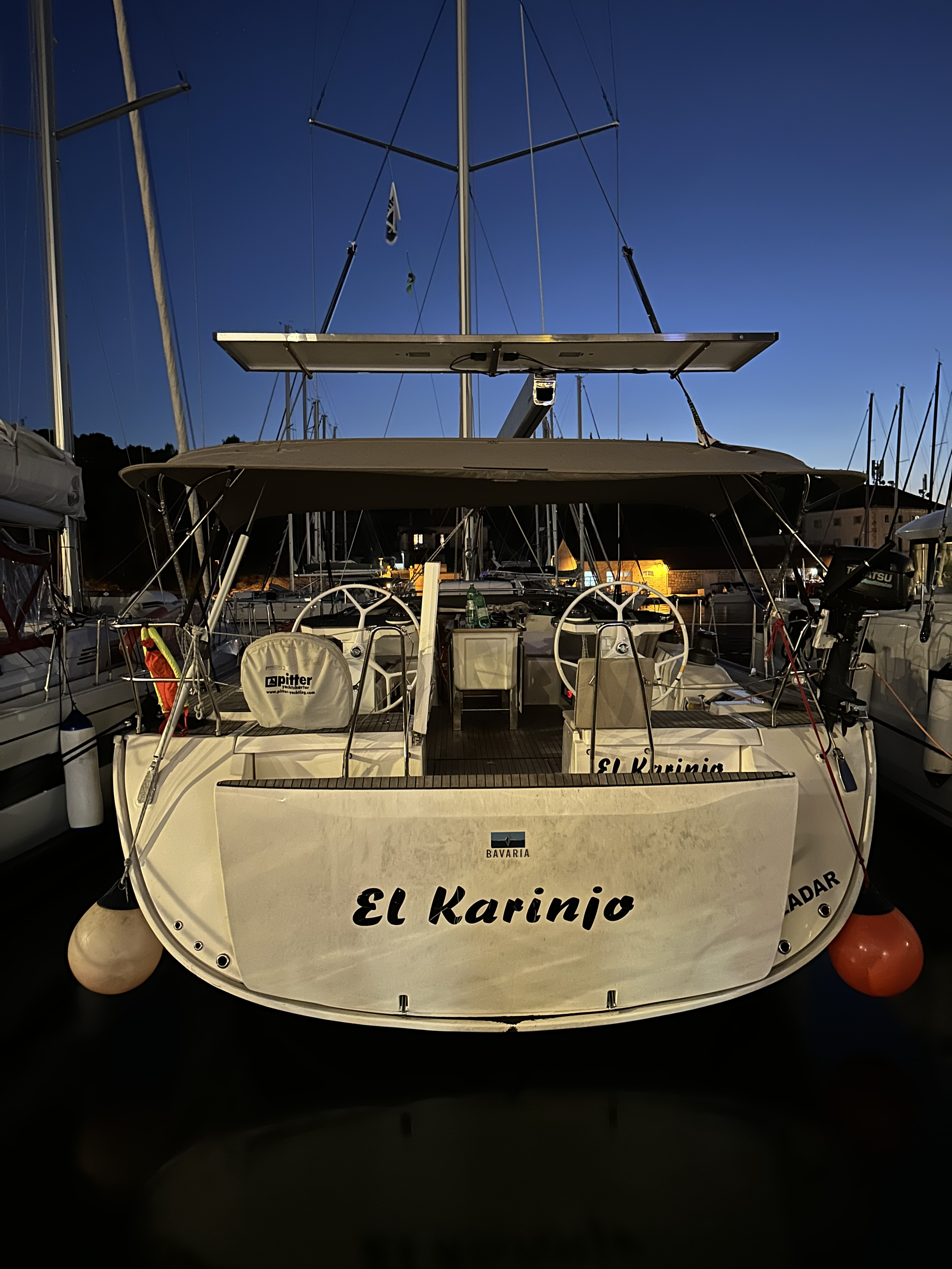 | Outside | 220 V-Landanschluss, Anker mit Kette, Ankerwinsch, Badeplattform, Biminitop, Bootshaken, Cockpitdusche, Cockpitlautsprecher, Cockpitpolster, Cockpittisch, Dieselkanister , elektr. Ankerwinsch, Fender, Festmacherleinen, Gangway, Kugelfender, Kunststoff-Eimer (Pütz), Solaranlage, Sprayhood, Teak im Cockpit, Teakdeck, Wantenschneider, Wasserkanister , Wasserschlauch, Windex |