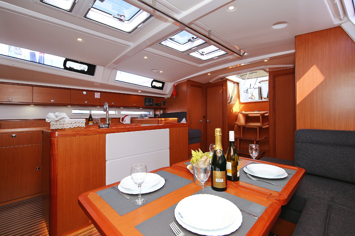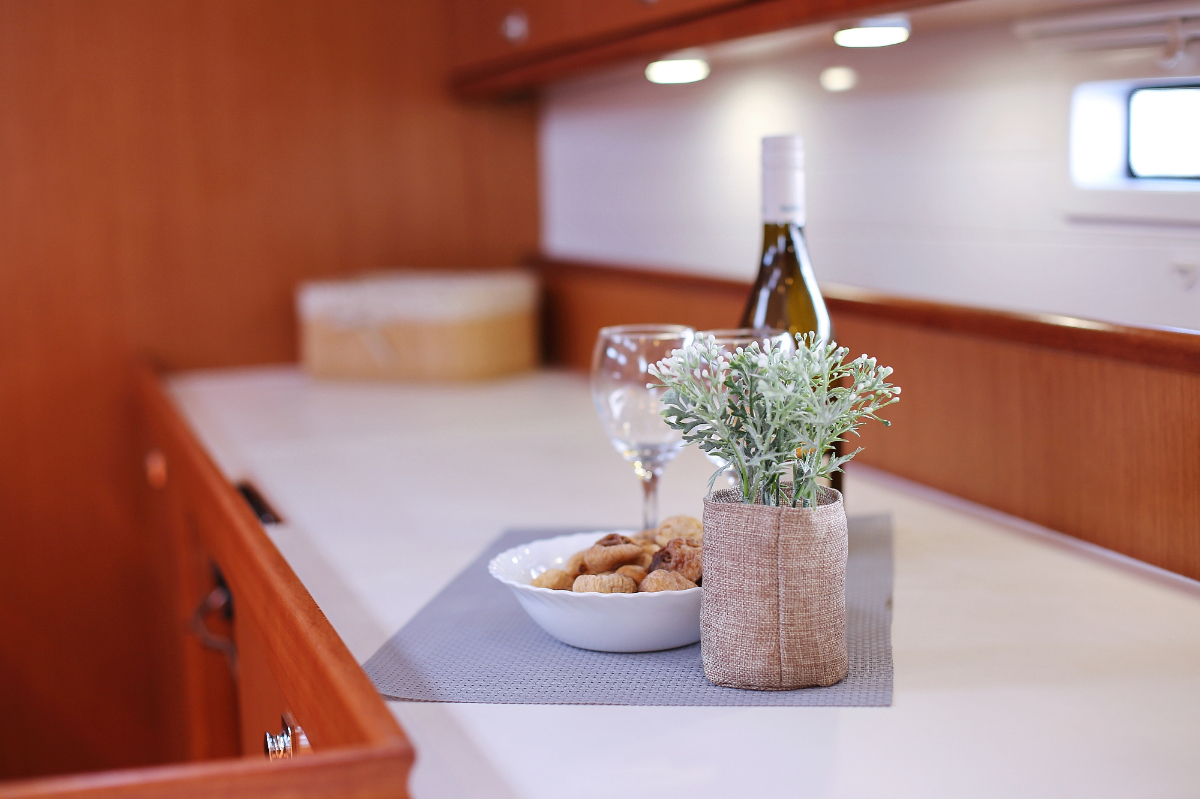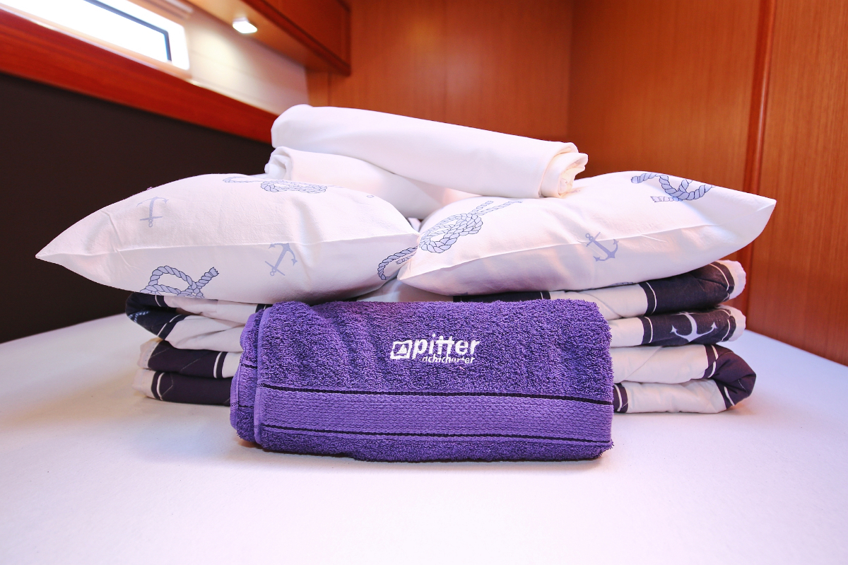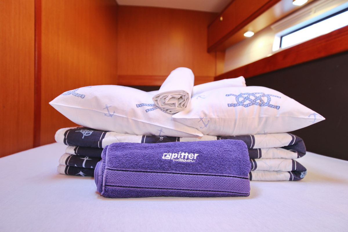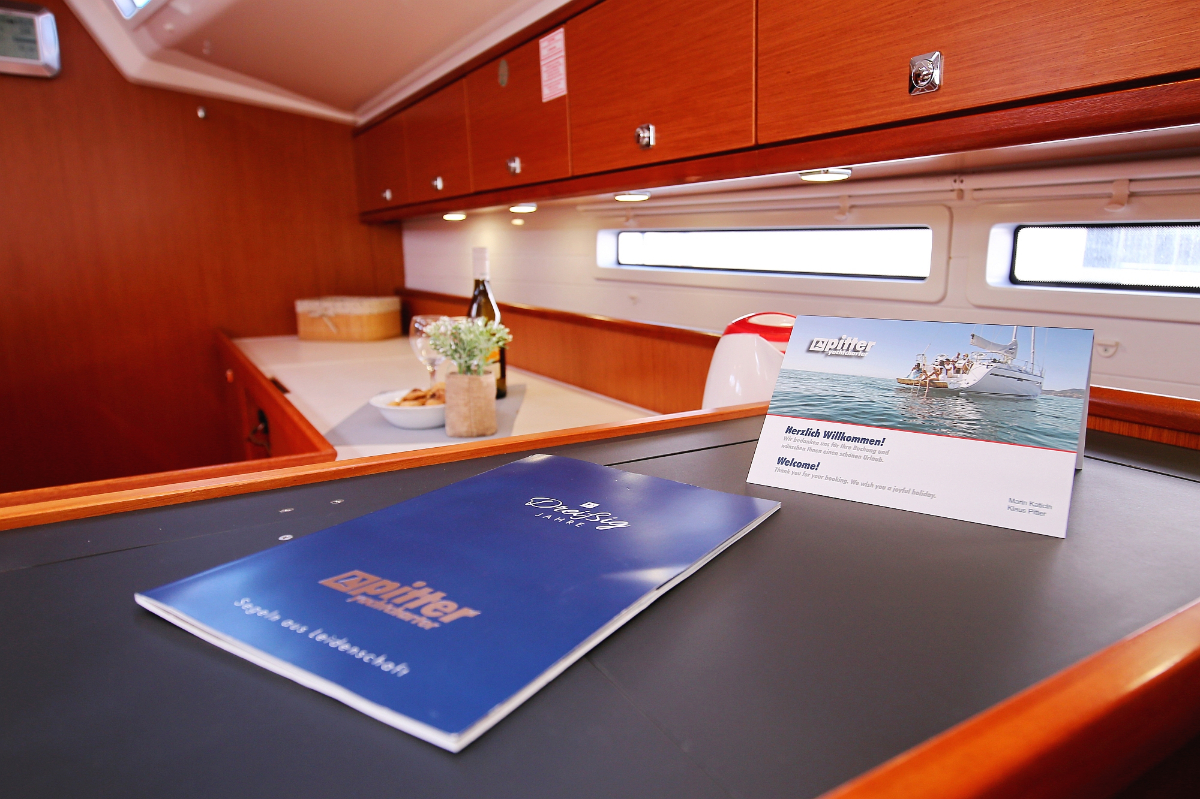 | Safety | Autopilot, Blitzboje, Bootsmannstuhl, Bordapotheke, Bordwerkzeug, Bugstrahlruder, Feuerlöscher, Lifebelts, Motor-Ersatzteile, Nebelhorn, Notsignale, Radarreflektor, Reparaturset für Beiboot, Rettungsinsel, Suchscheinwerfer, Taschenlampe, UKW-Funk, Zweitanker |