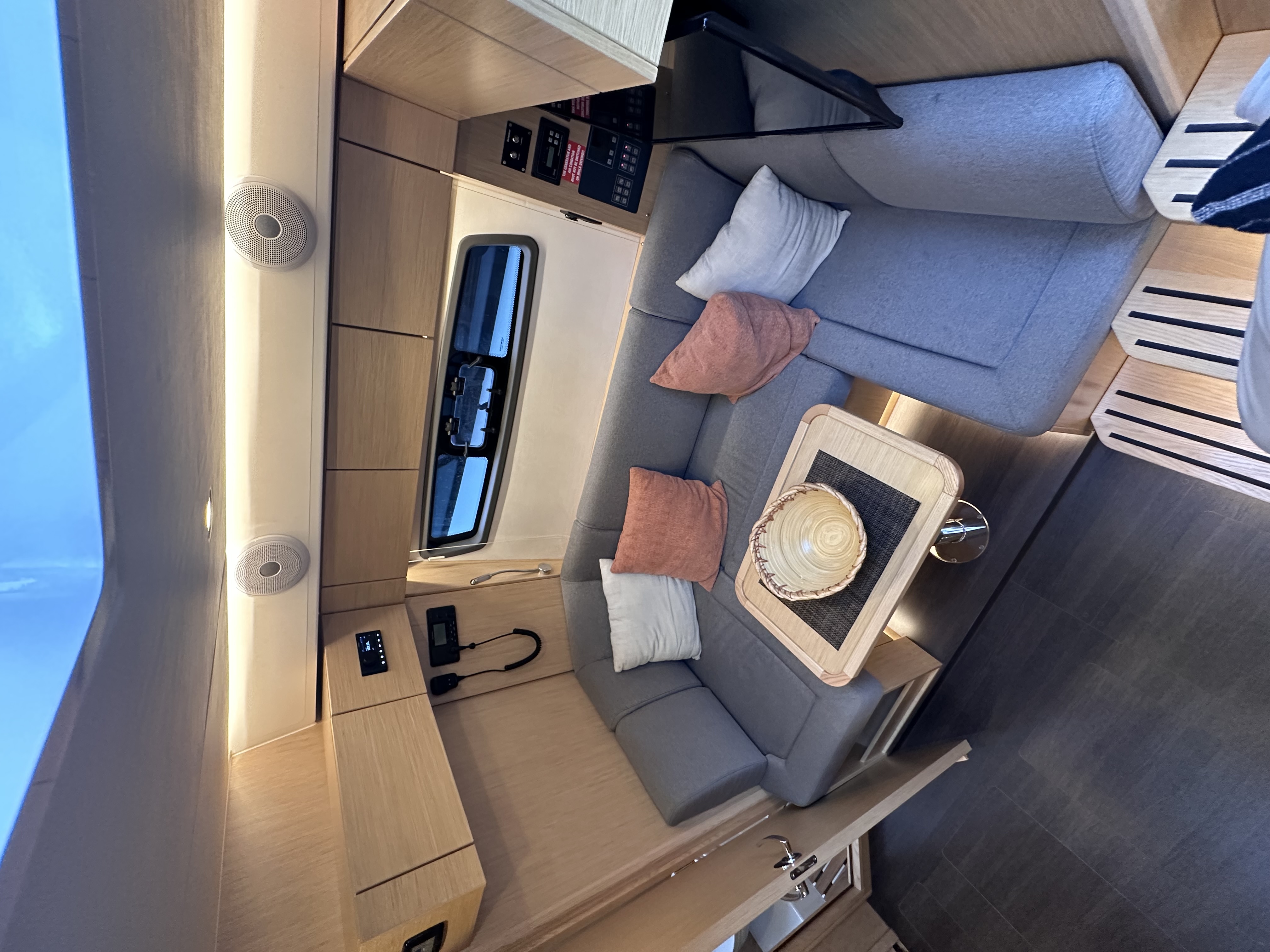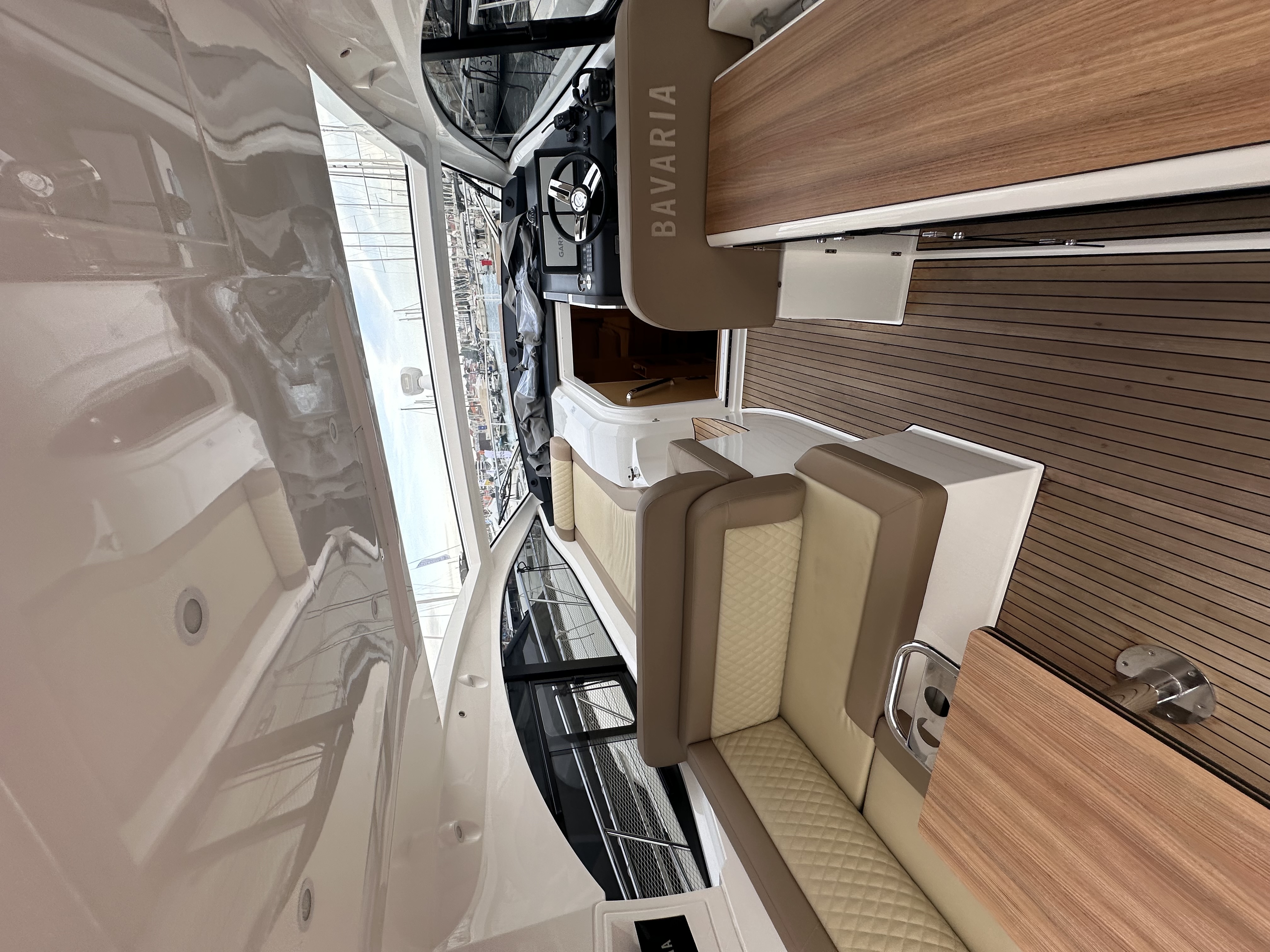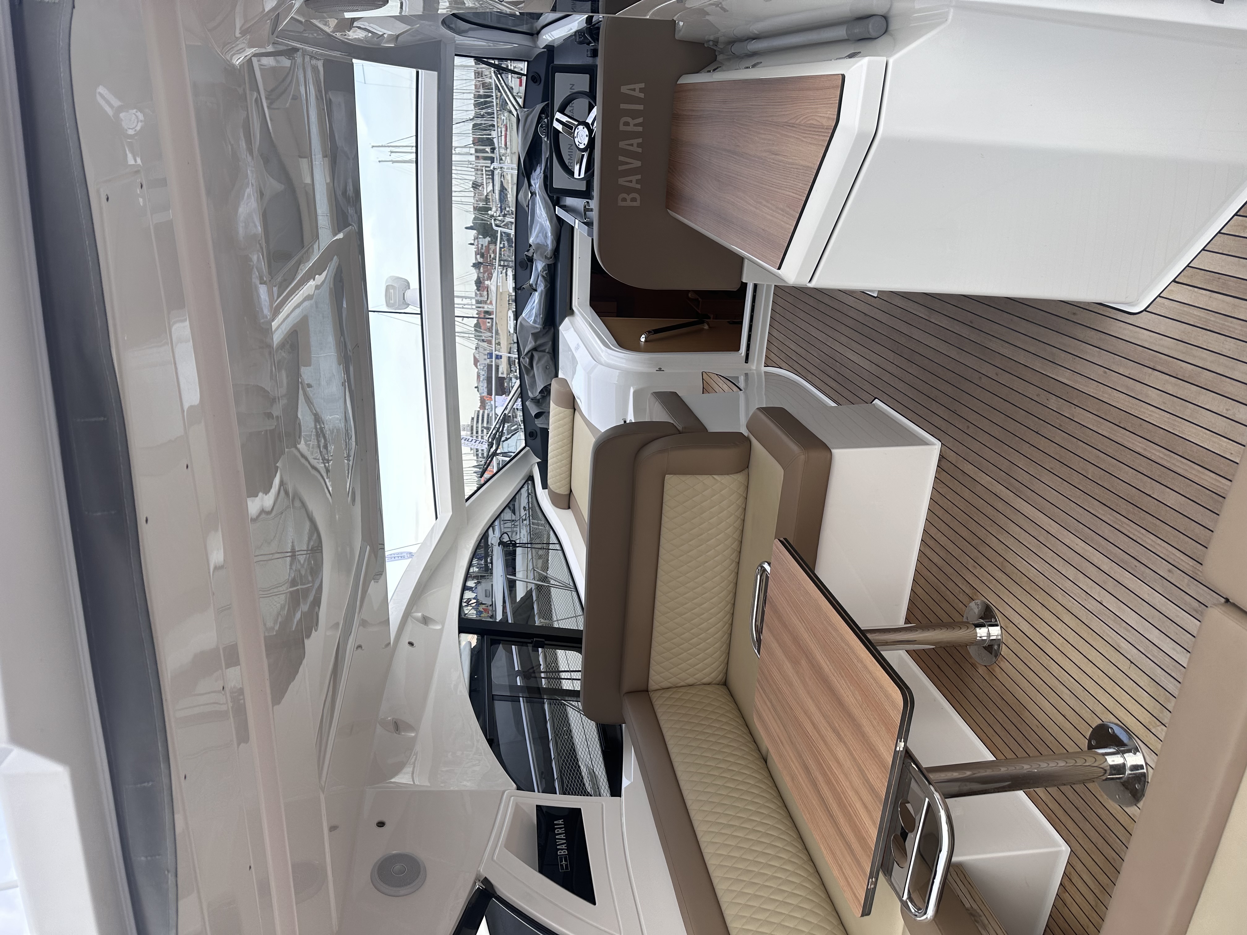 | Outside | Badeleiter, Badeplattform (hydr.), Biminitop, Cockpitdusche, Cockpittisch, Fender, Grill, hydraul. Gangway, Sonnendeck, Sprayhood, Unterwasserbeleuchtung, Wet Bar |