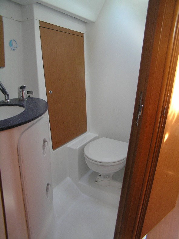 Trotz älterem Baujahr Yacht in sehr gutem Zustand. Ein großes Solar-Panel sorgt dafür, dass man auch ohne Motor oder Landstrom Kühlschrank und Beleuchtung/Kleingeräte durchgehend laufen lassen könnte. Lediglich bei stärkerer Steuerbord-Lage kam außen etwas Toiletten-Geruch, wobei der Vercharterer sich für die Rückmeldung bedankt hat und dies angehen möchte.