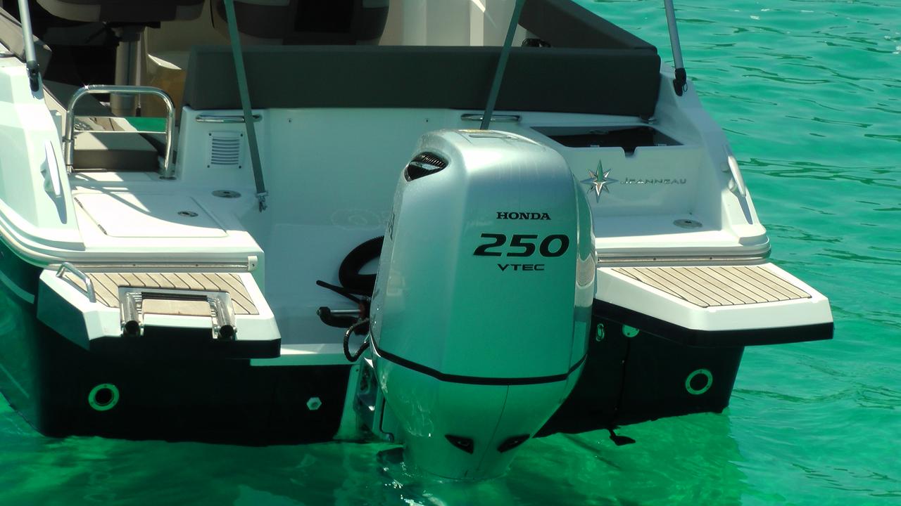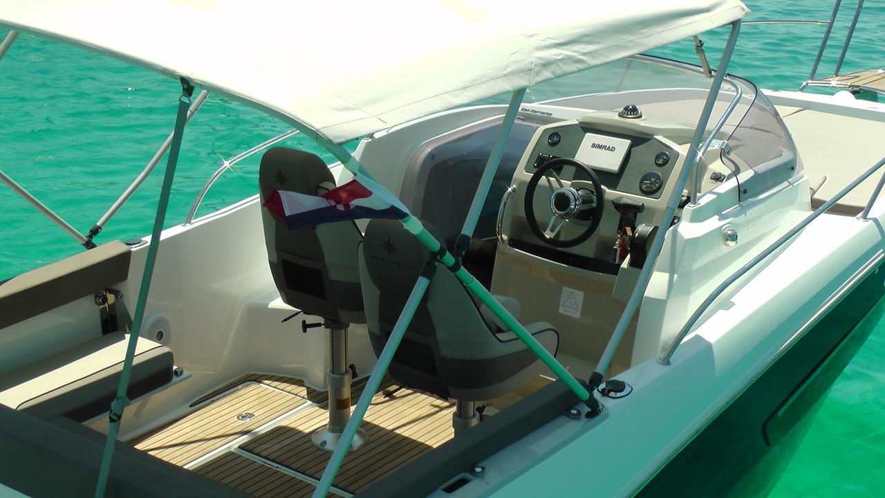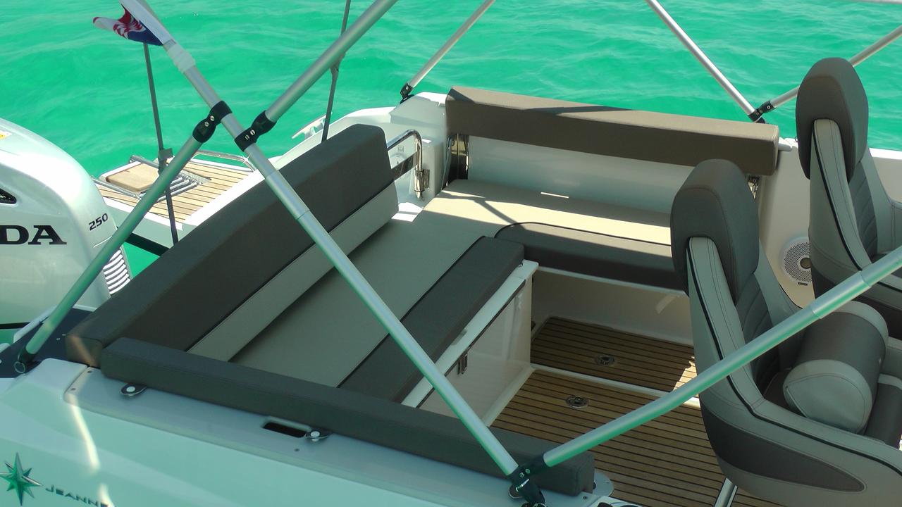 | Outside | 220 V-Landanschluss, Biminitop, Cockpitlautsprecher, Cockpitpolster, Cockpittisch, Deckpolster, Teak im Cockpit |