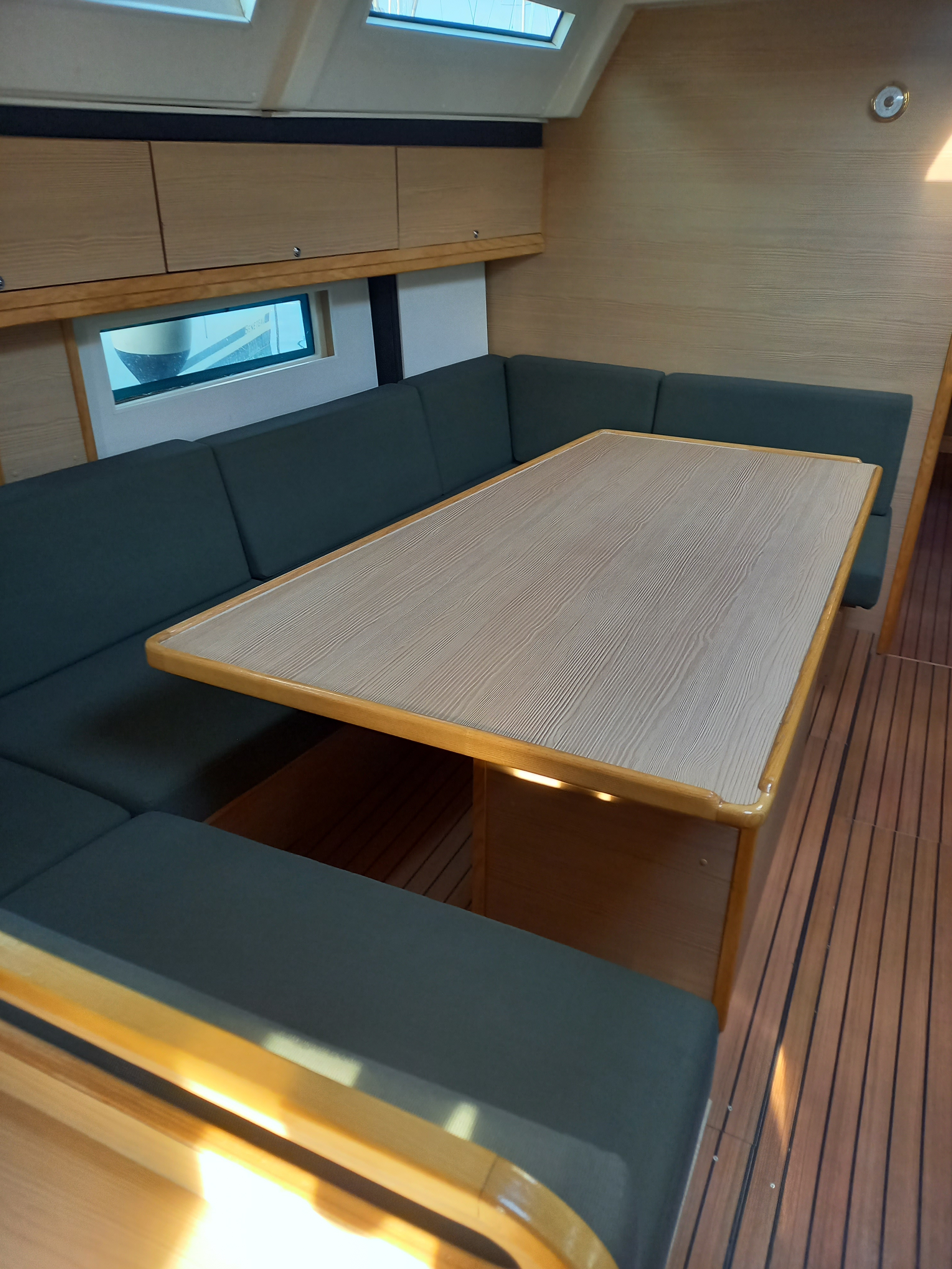Bootstyp (wie von Ihnen vorher darauf hingewiesen) segeltechnisch nicht optimal. Letztes Foto zeigt z.B. eine deutliche Mastkrümmung. Laut Vercharterer hält das Deck wegen der fehlenden Stütze unter Deck den Mast nicht richtig.