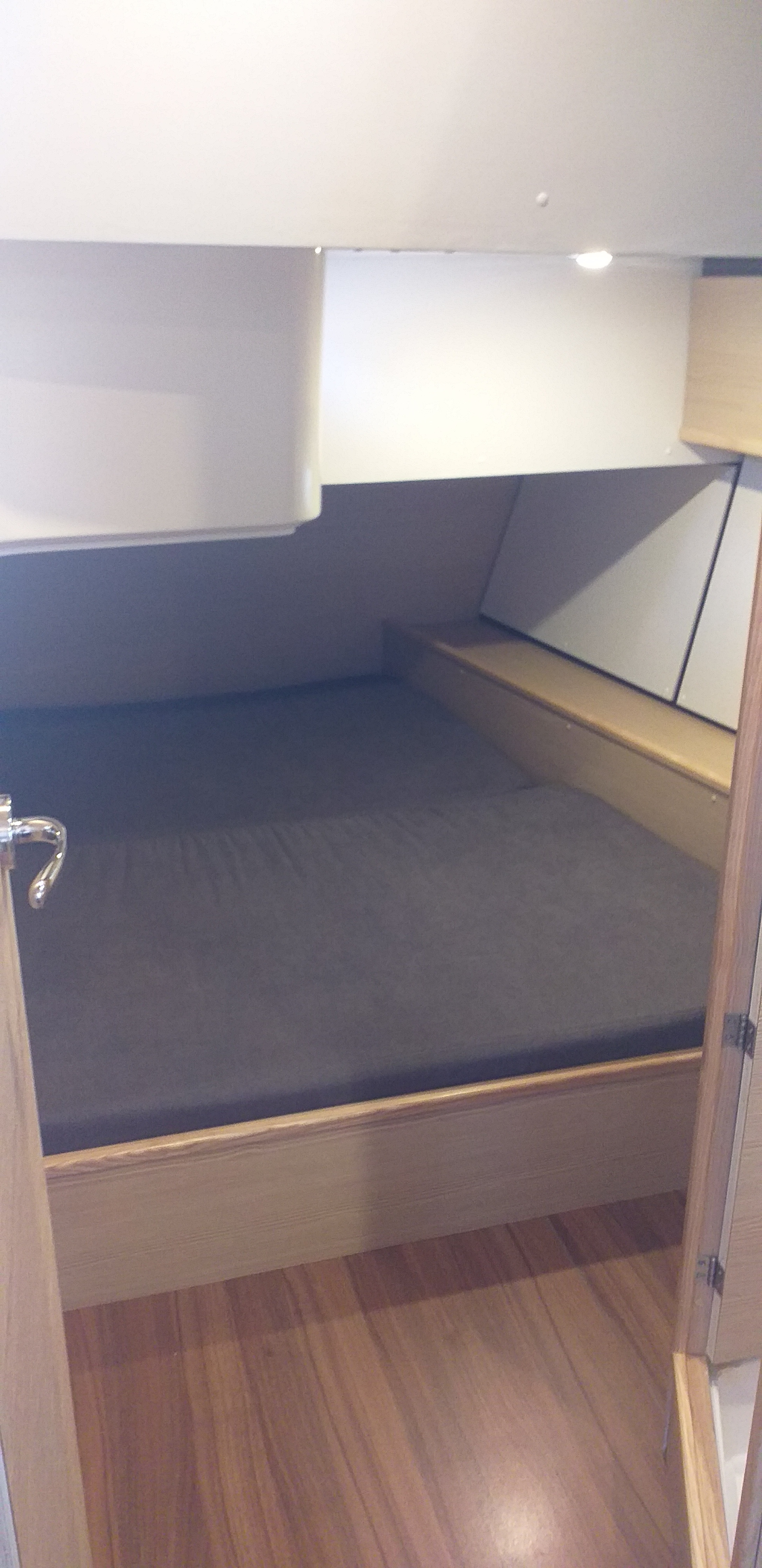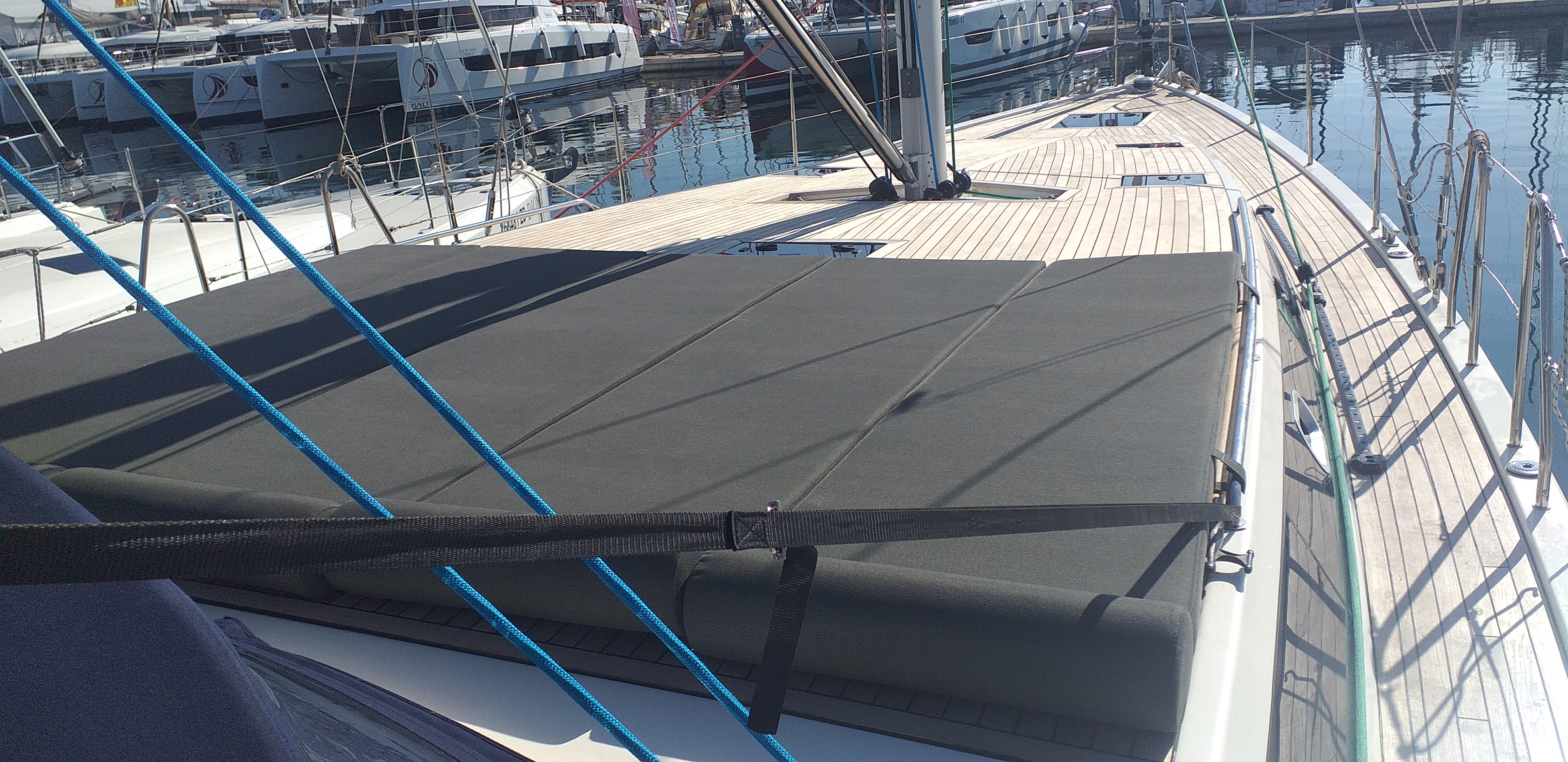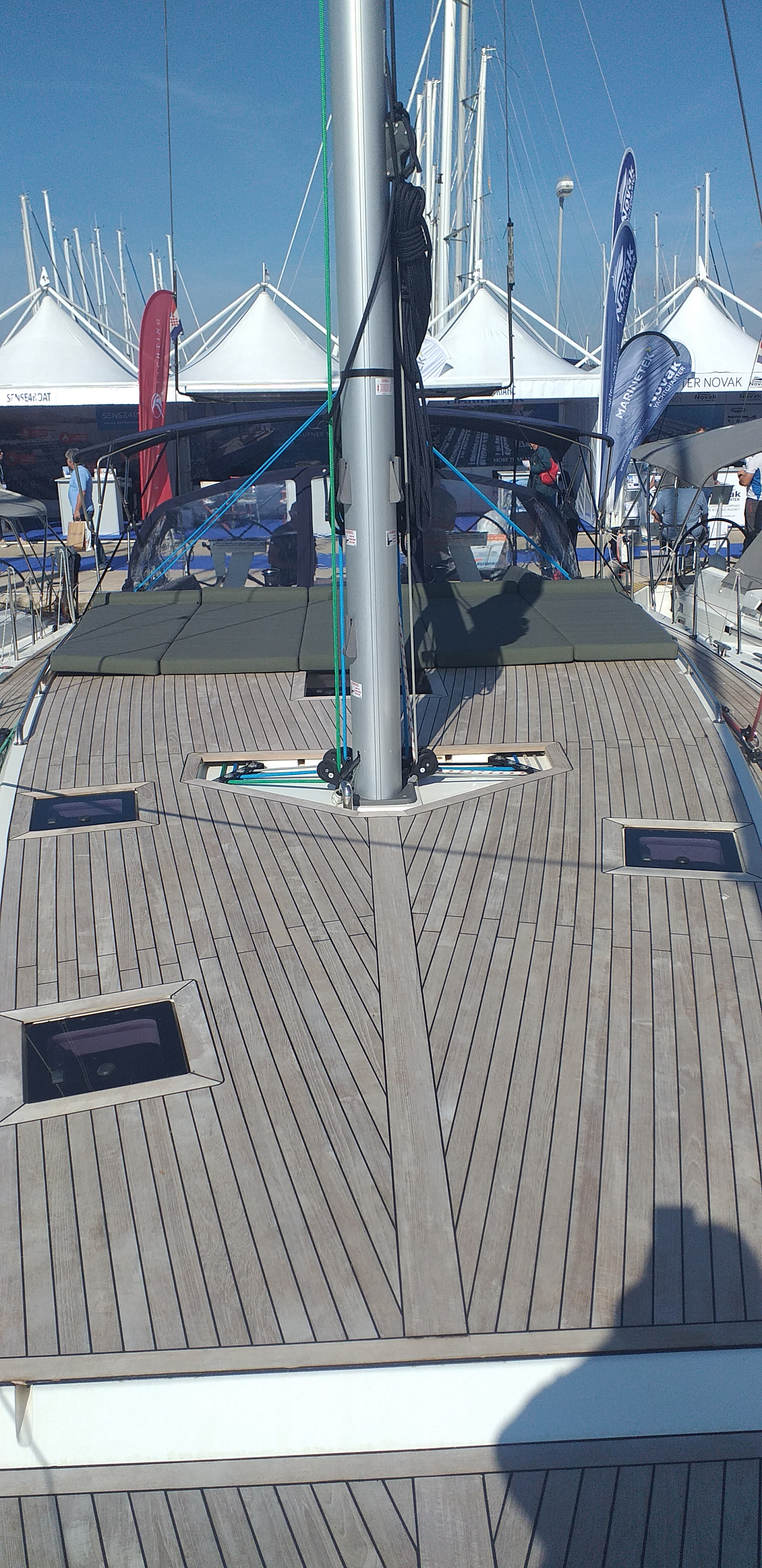 | Outside | Badeplattform, Biminitop, Cockpitdusche, Cockpitkühlschrank, Cockpitlautsprecher, Cockpitpolster, Deckpolster, elektr. Ankerwinsch, Heckdusche, Solaranlage, Sprayhood, Teak im Cockpit, Teakdeck |