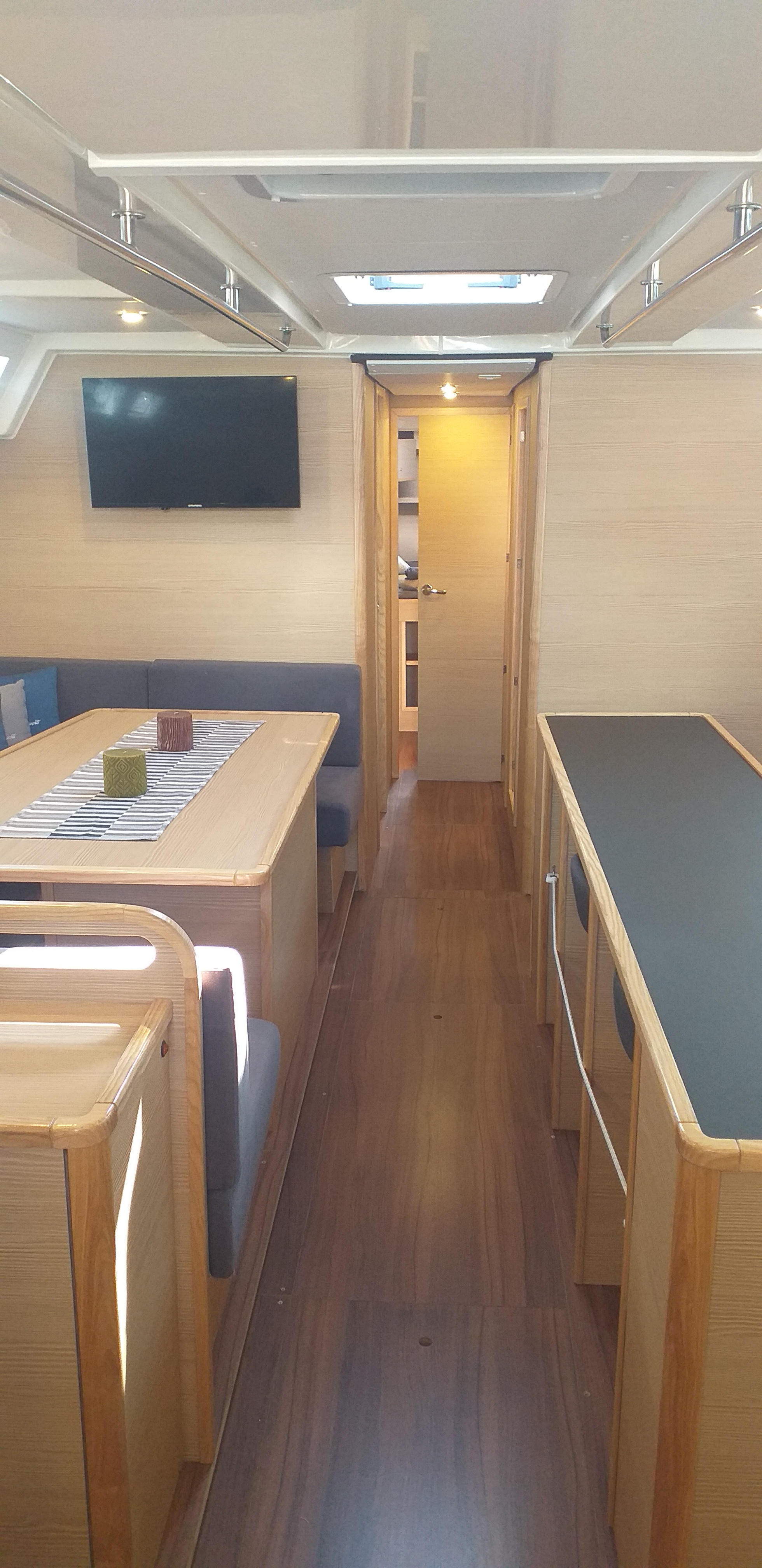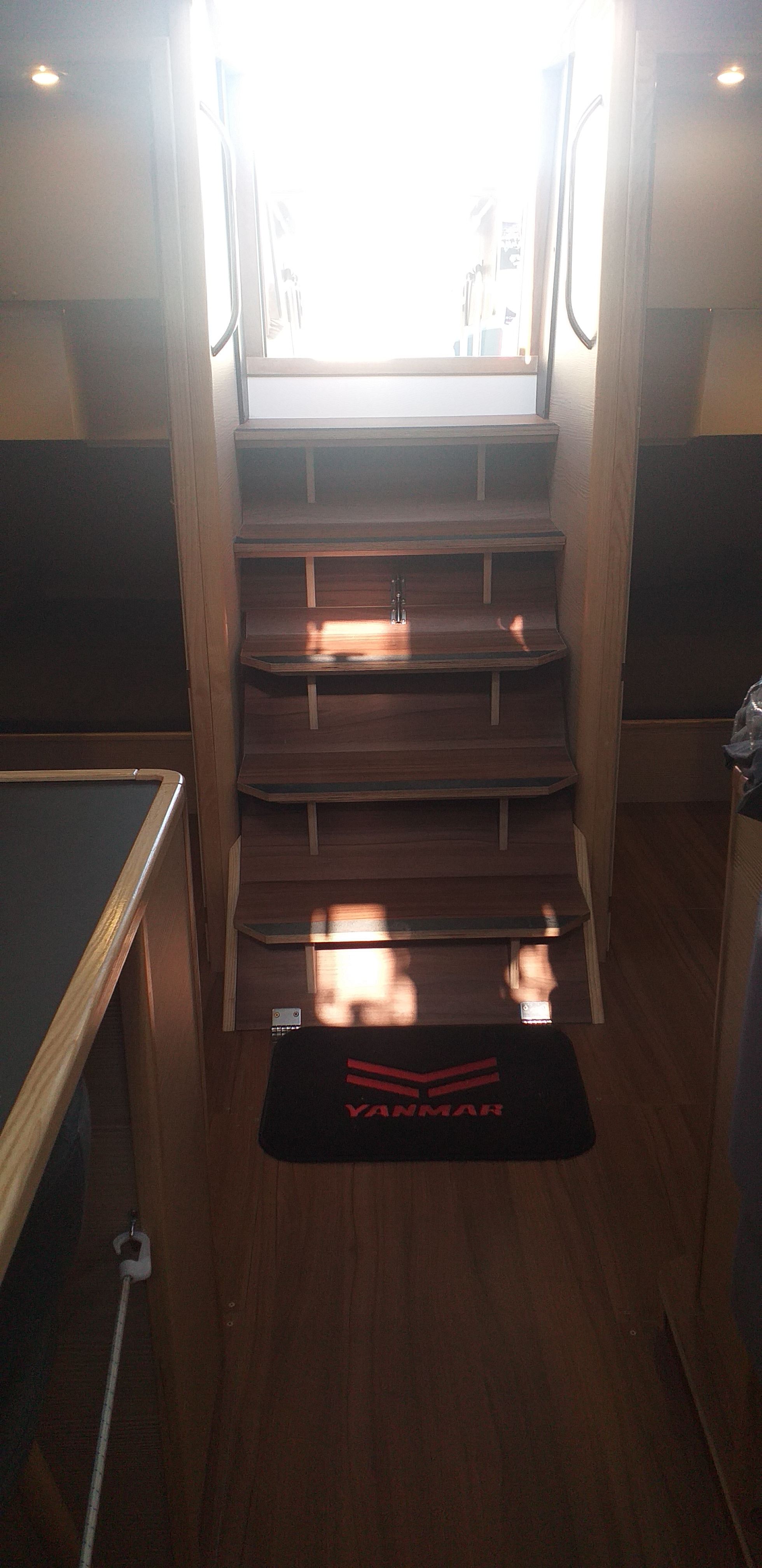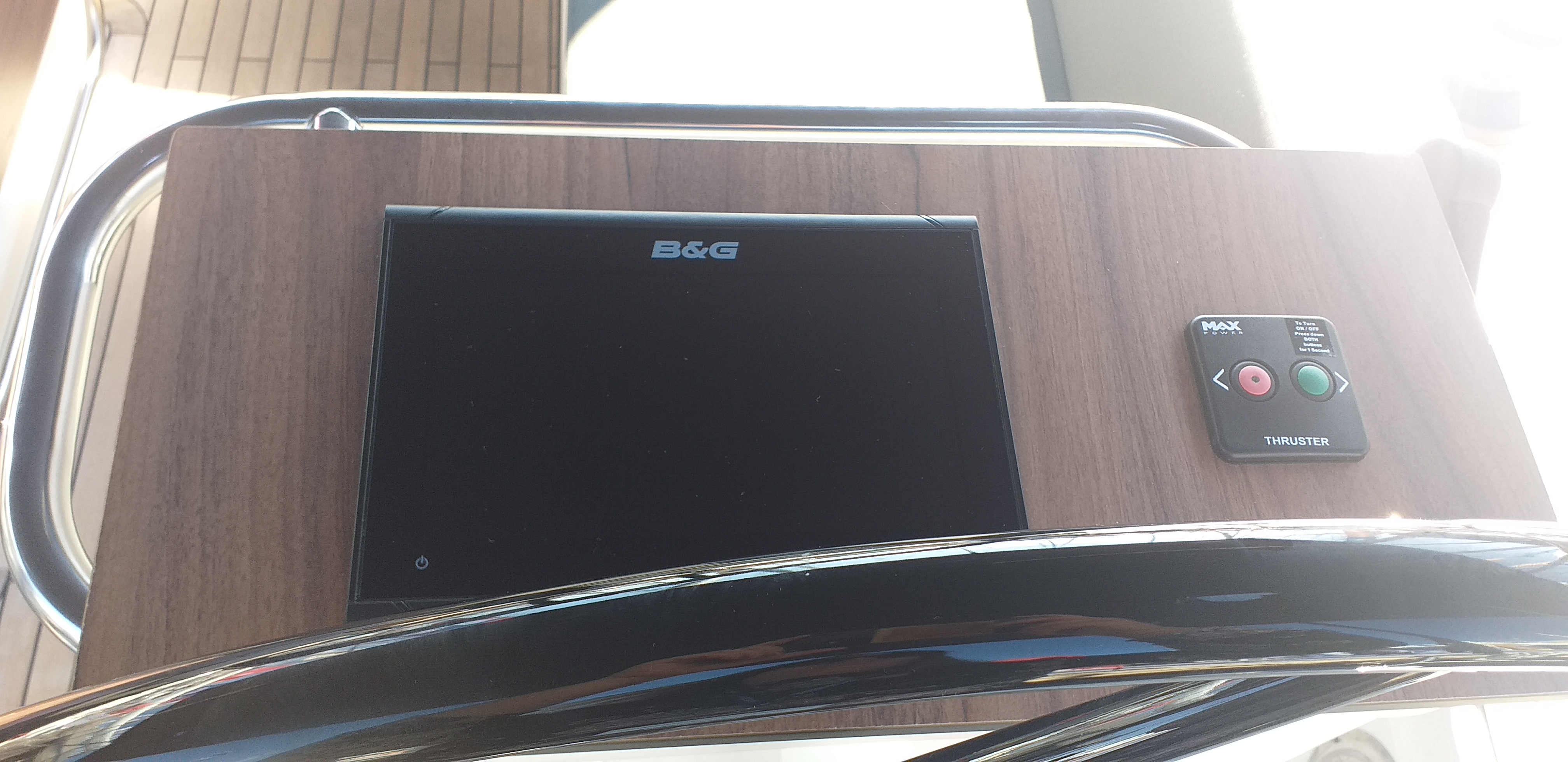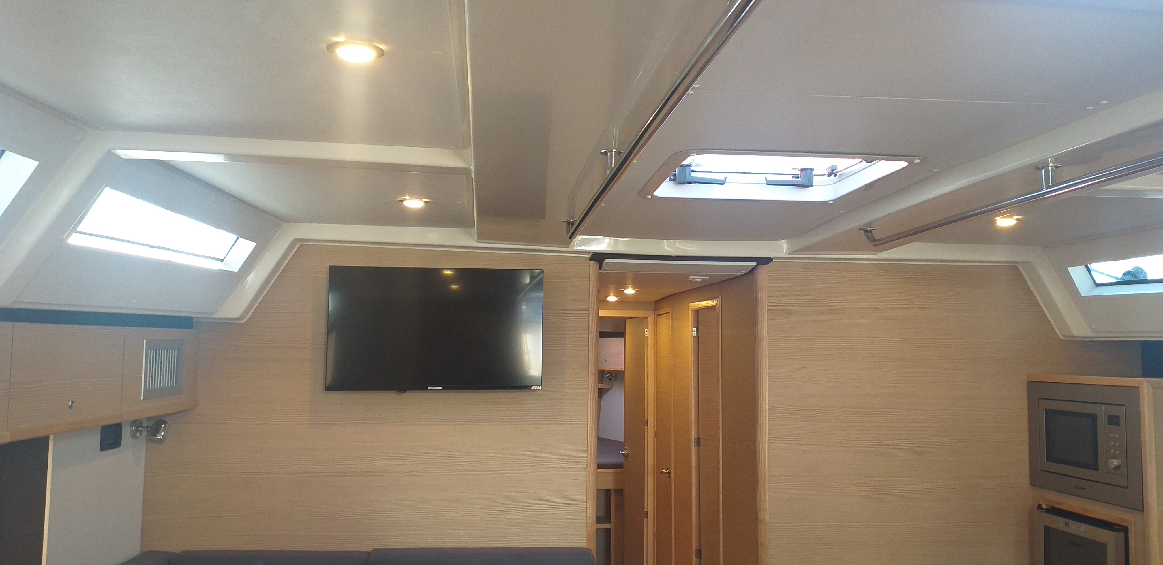 | Outside | Badeplattform, Biminitop, Cockpitdusche, Cockpitkühlschrank, Cockpitlautsprecher, Cockpitpolster, Deckpolster, elektr. Ankerwinsch, Heckdusche, Solaranlage, Sprayhood, Teak im Cockpit, Teakdeck |