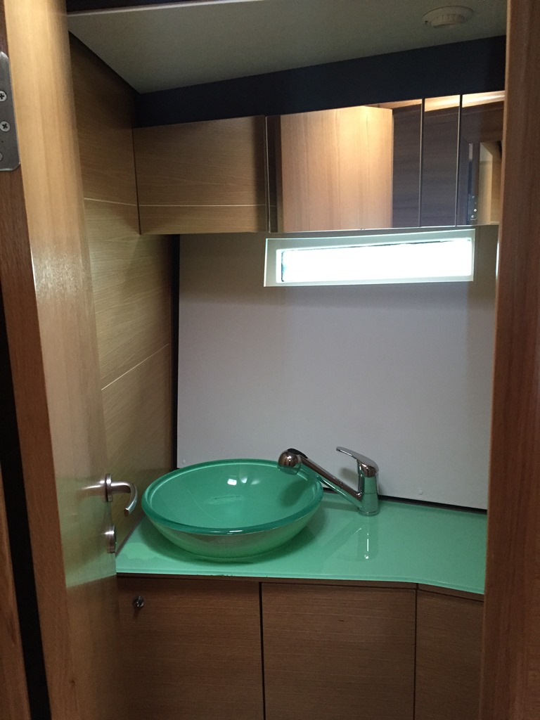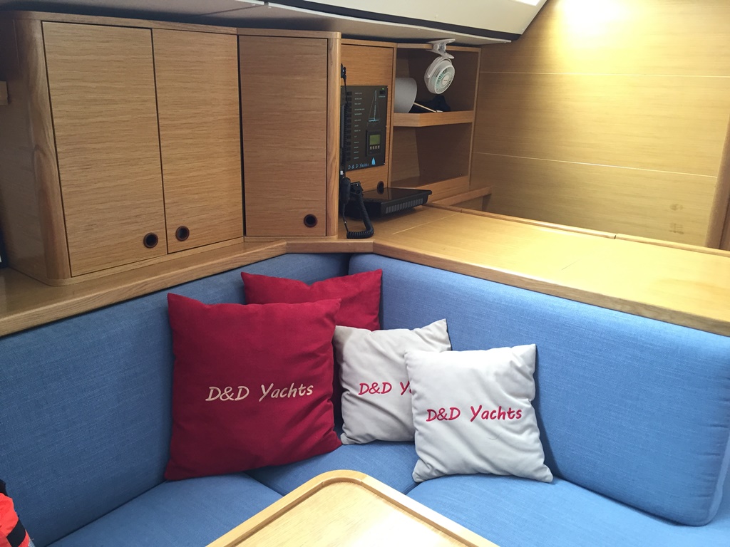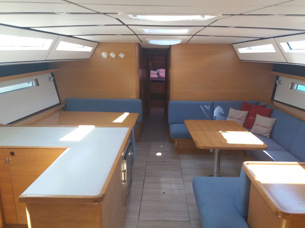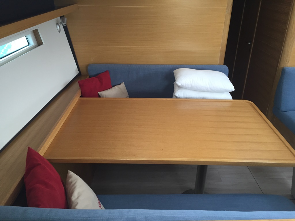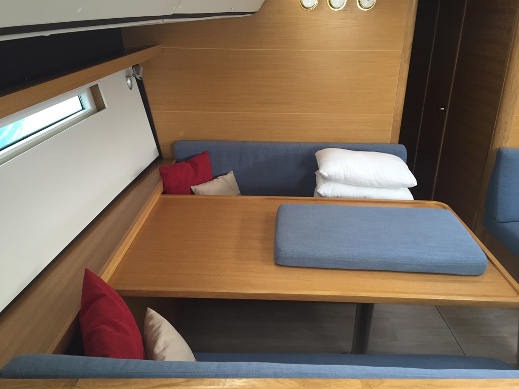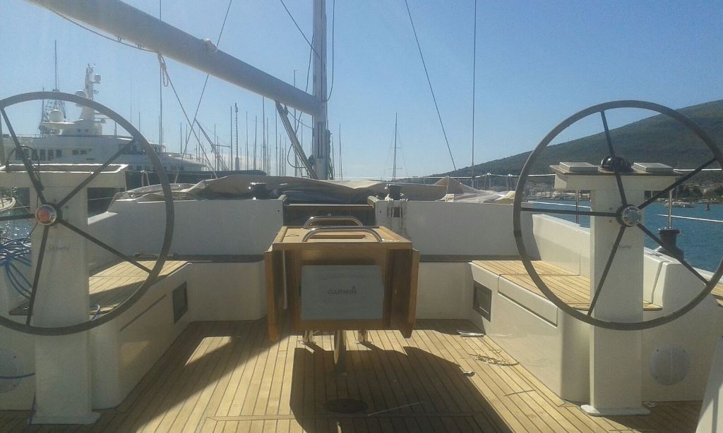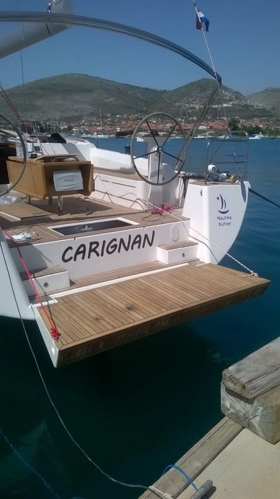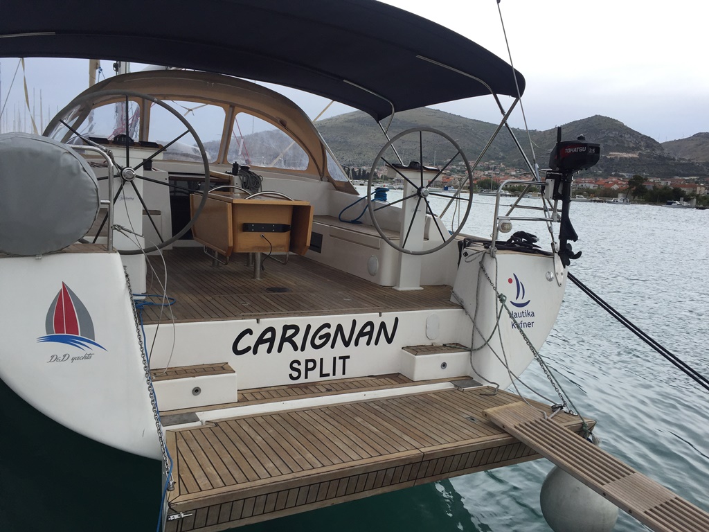 | Outside | 220 V-Landanschluss, Biminitop, Cockpitlautsprecher, Cockpitpolster, Cockpittisch, elektr. Ankerwinsch, Heckdusche, Teak im Cockpit, Teakdeck |