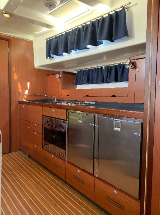 | Safety | Autopilot, Bordapotheke, Bordwerkzeug, Bugstrahlruder, elektr. Bilgepumpe, Feststoffschwimmwesten, Feuerlöscher, Flaggen, Handbilgepumpe, Heckstrahlruder, Navigationslichter, Nebelhorn, Notsignale, Radarreflektor, Rettungsinsel, Rettungsring, Suchscheinwerfer, UKW-Funk, Zweitanker |