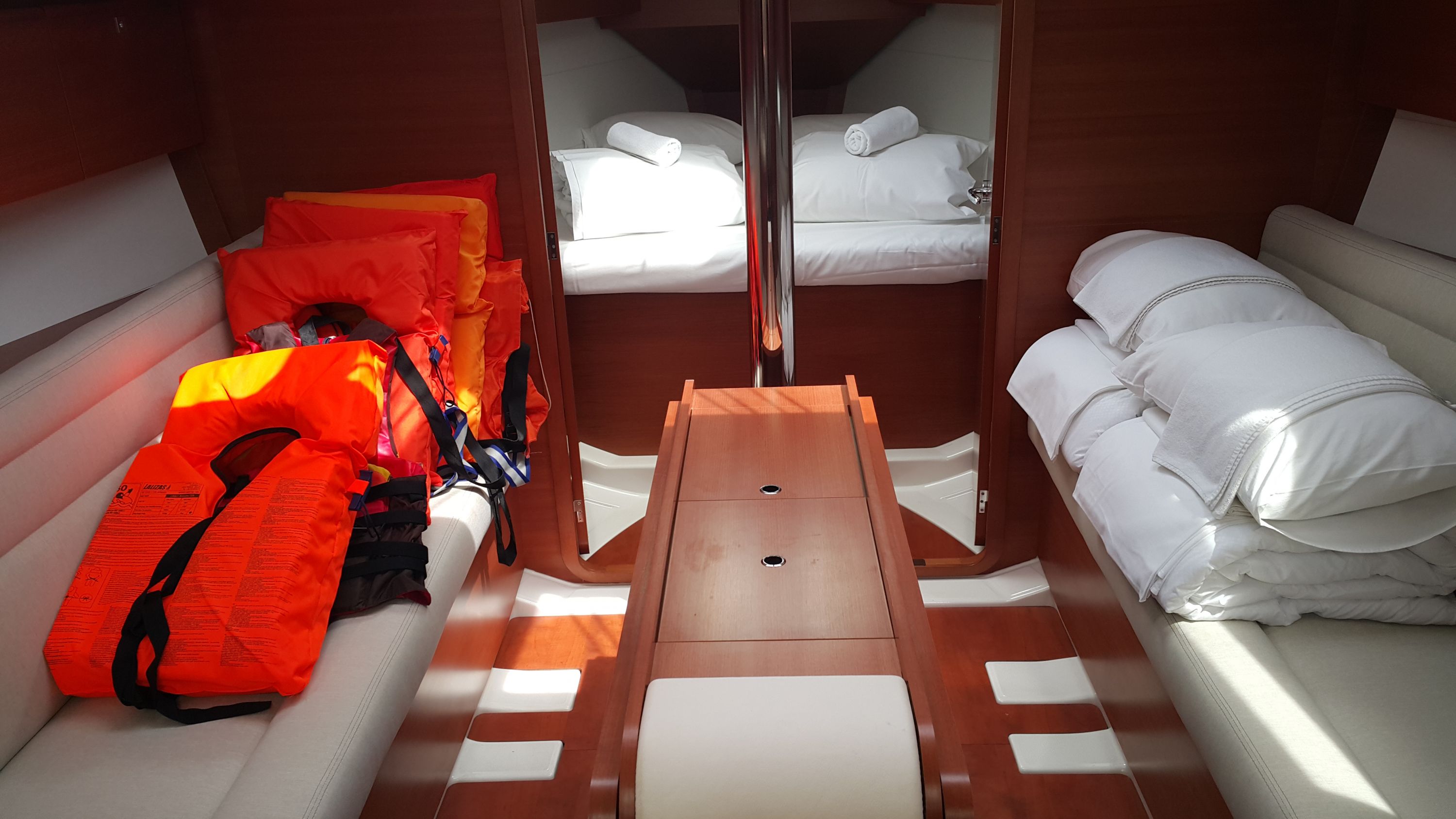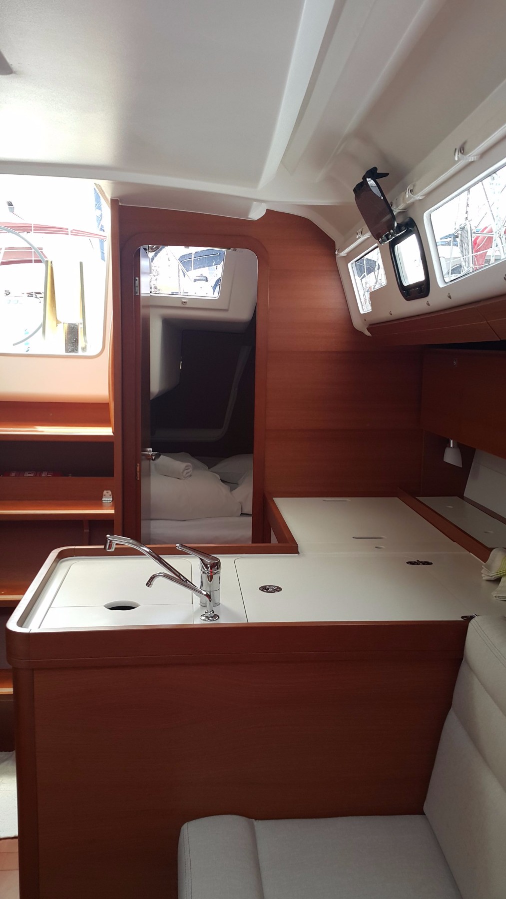 Schiff wirkte sehr vorgealtert. Baujahr 2016 erschien uns zunächst unglaubwürdig. Die Yacht war bei der Übernahme so schlecht gereinigt, daß noch eine erneute intensive Grundreinigung durchgeführt werden mußte. Danach ging es. Technisch keine Probleme und gute Segeleigenschaften.