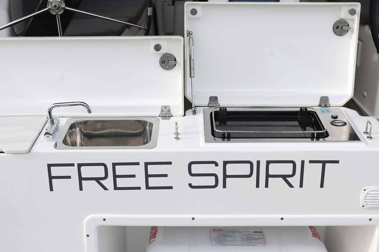 | Outside | 220 V-Landanschluss, Anker mit Kette, Ankerwinsch, Biminitop, Bootshaken, Cockpitdusche, Cockpitlautsprecher, Cockpitpolster, Cockpittisch, Dieselkanister , elektr. Ankerwinsch, Fender, Festmacherleinen, Gangway, Grill, Kugelfender, Kunststoff-Eimer (Pütz), Solaranlage, Sprayhood, Teak im Cockpit, Wantenschneider, Wasserkanister , Wasserschlauch |