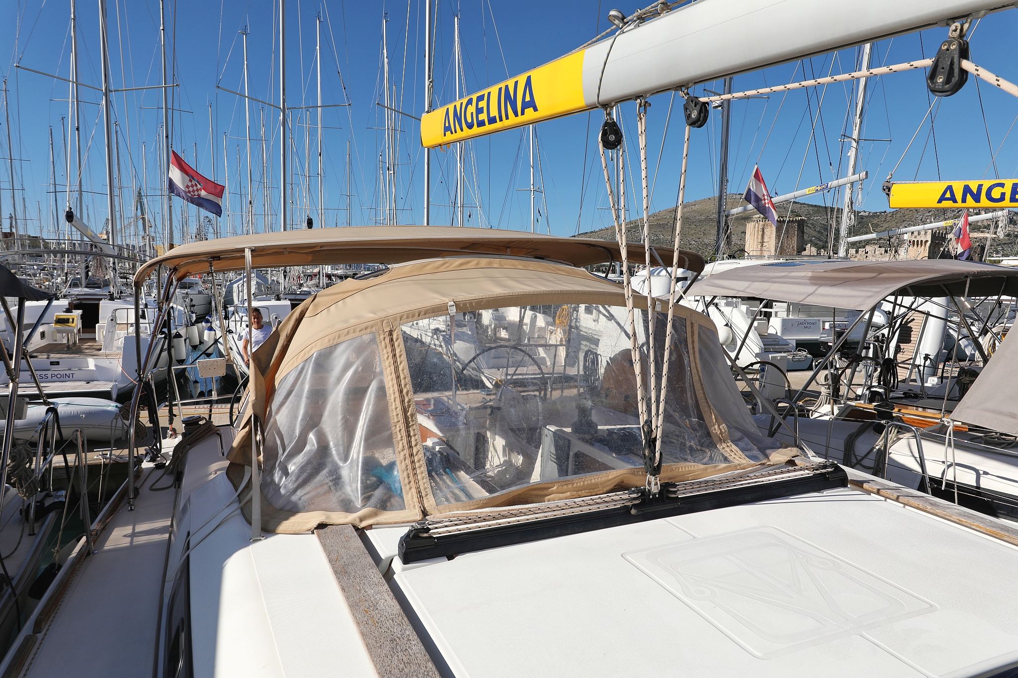 | Outside | Badeplattform, Biminitop, Bootshaken, Cockpitdusche, Cockpitlautsprecher, Cockpitpolster, Cockpittisch, Delta-Anker, elektr. Ankerwinsch, Fender, Festmacherleinen, Gangway, Grill, Solaranlage, Sprayhood, Spülbecken im Cockpit, Teak im Cockpit, Wasserschlauch, Winschen |