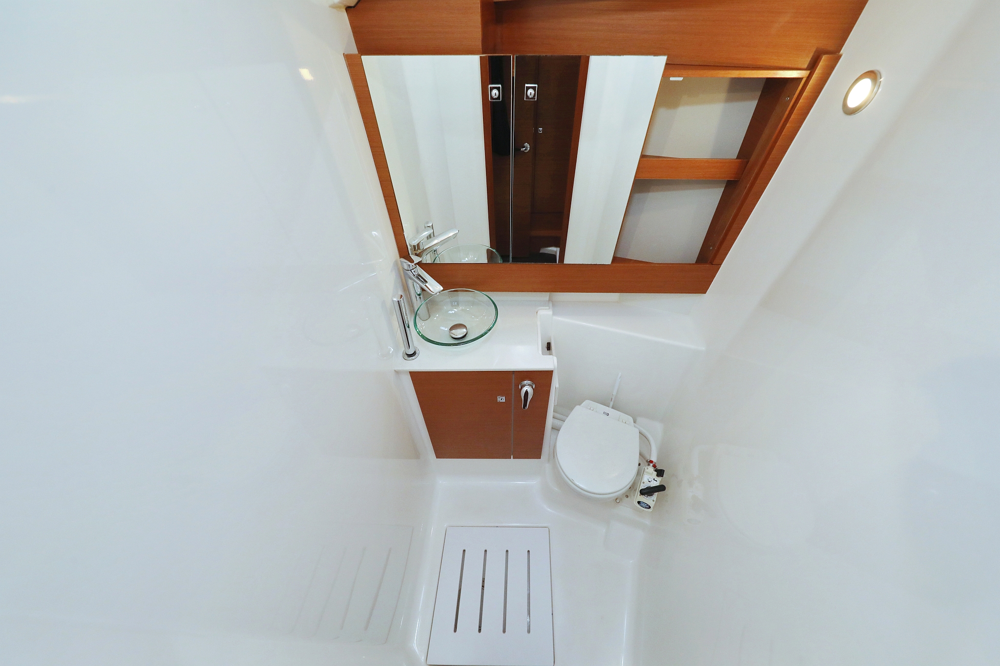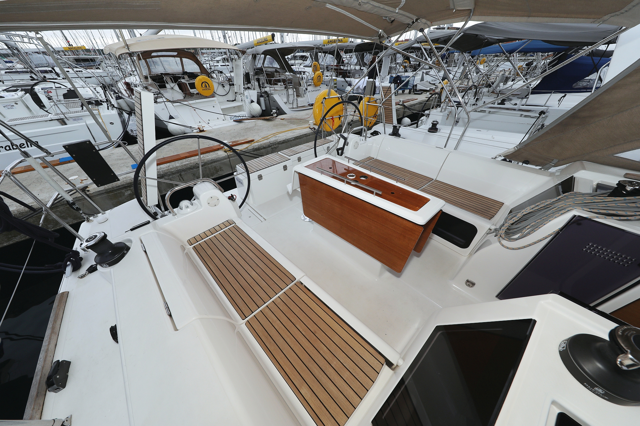 | Outside | Badeplattform, Biminitop, Bootshaken, Cockpitdusche, Cockpitlautsprecher, Cockpitpolster, Cockpittisch, Delta-Anker, elektr. Ankerwinsch, Fender, Festmacherleinen, Gangway, Grill, Solaranlage, Sprayhood, Spülbecken im Cockpit, Teak im Cockpit, Wasserschlauch, Winschen |