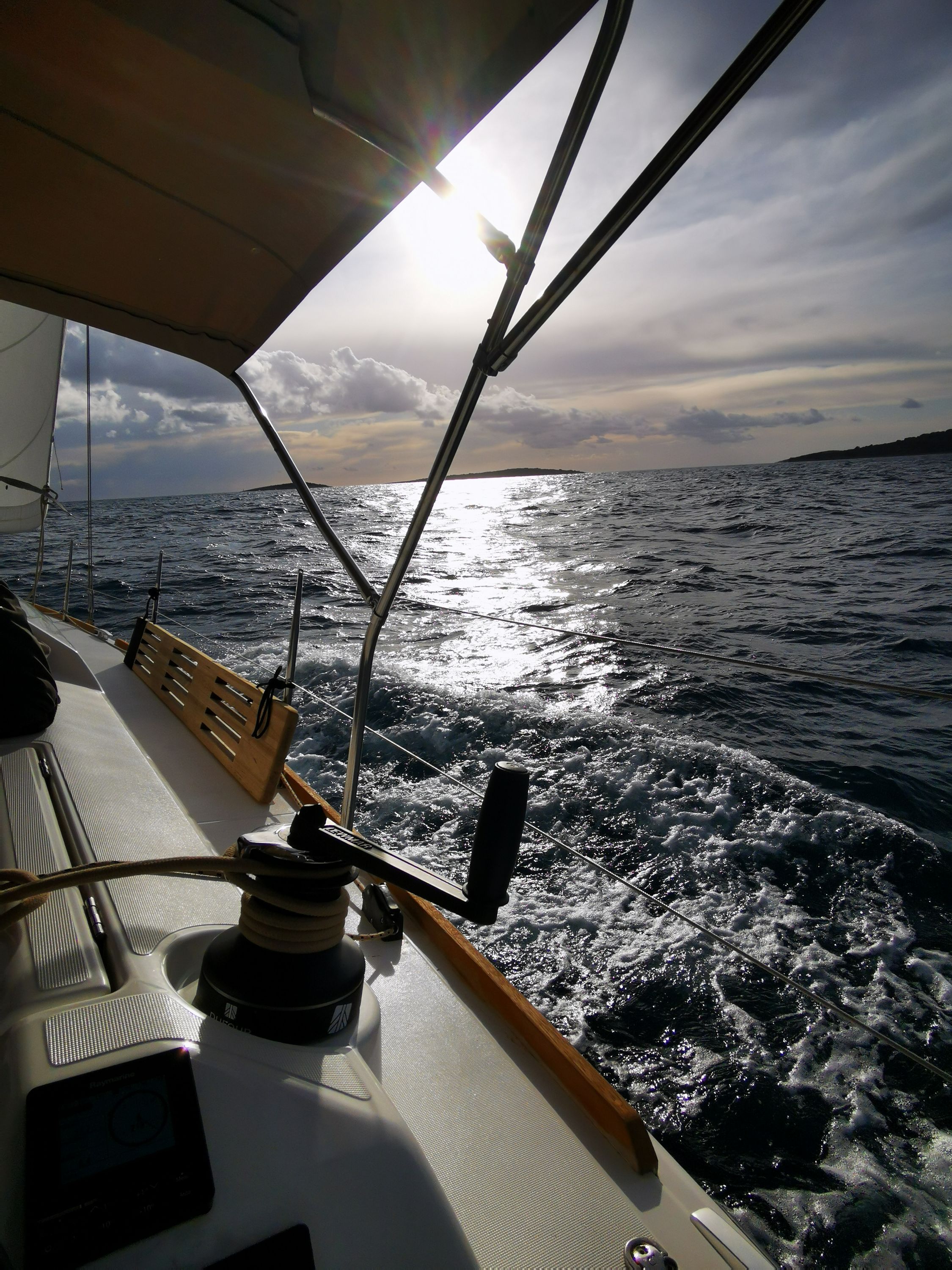 | Navigation | Fernglas, GPS mit Kartenplotter im Cockpit, Handpeilkompass, Kompass, Navigationsbesteck, Seekarten, Tridata (Log, Echolot, Windm.), Windmesser |